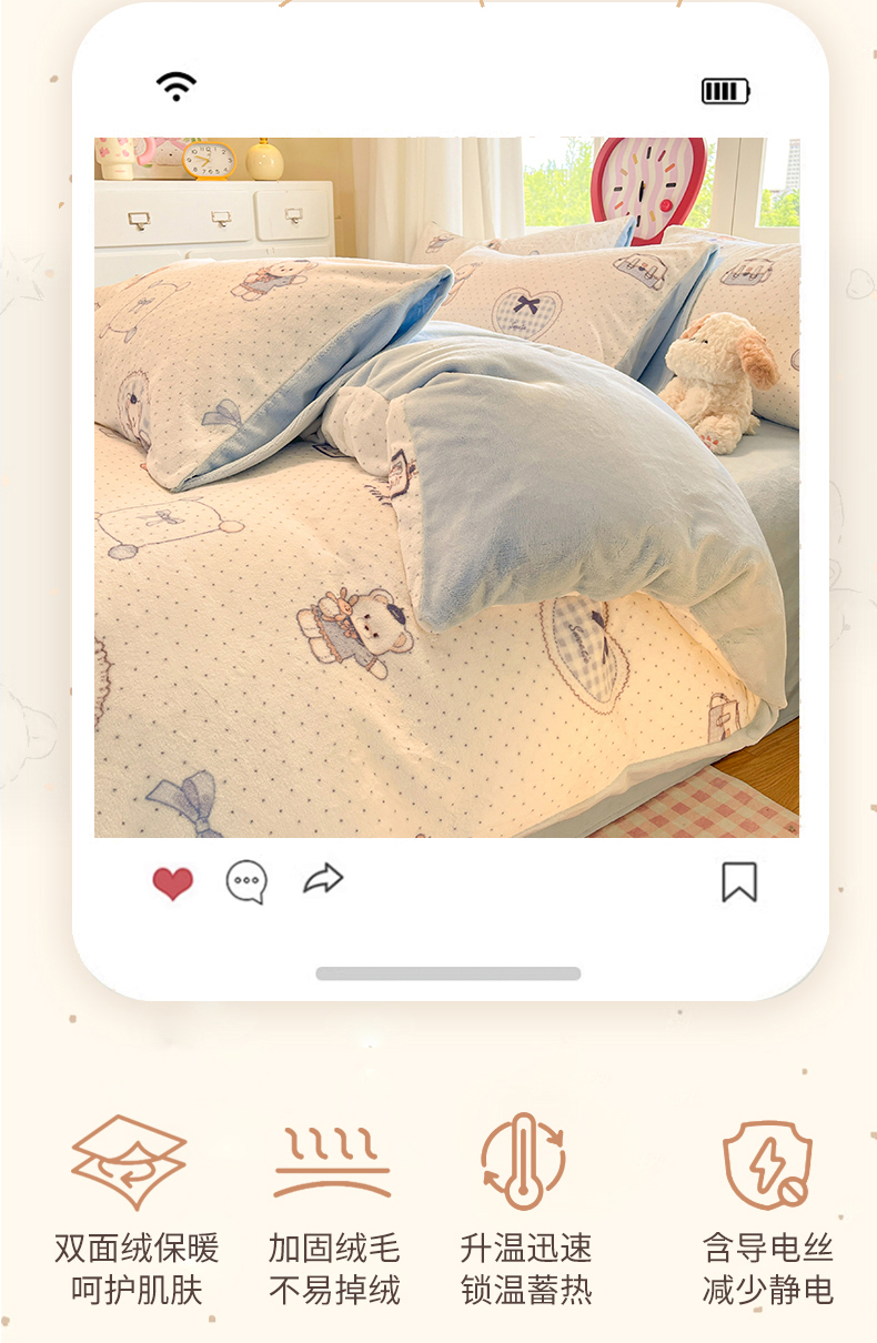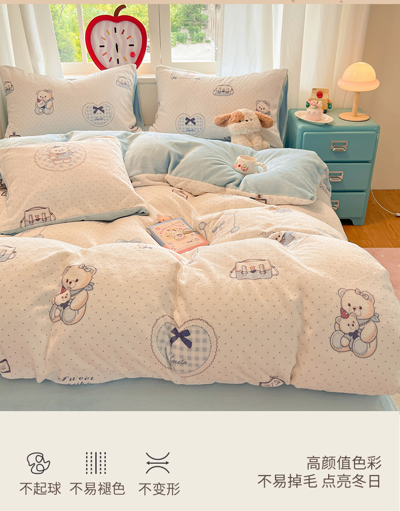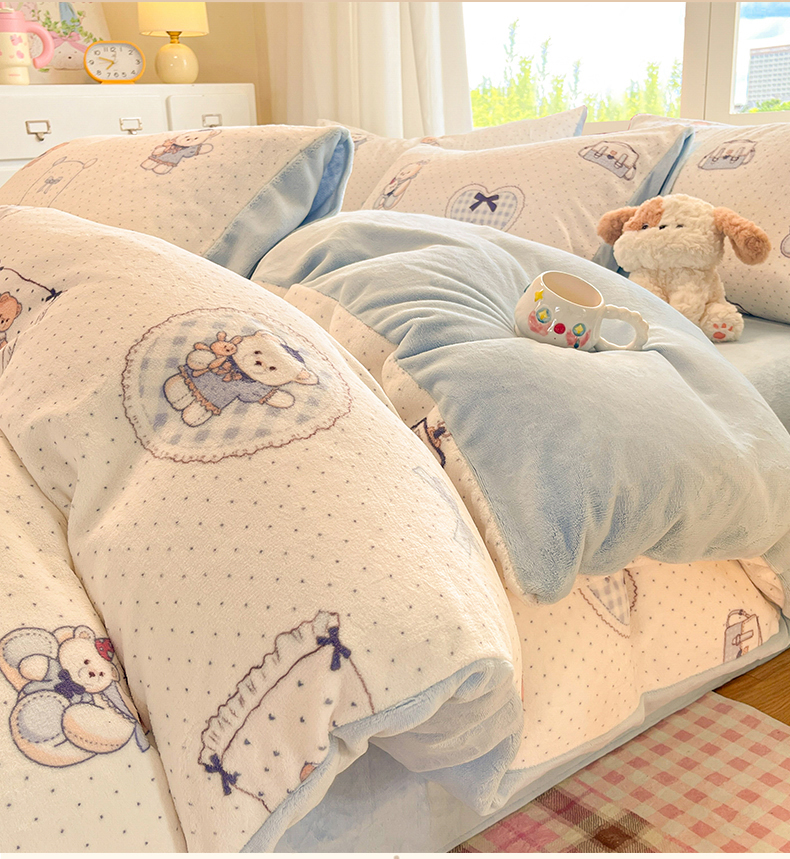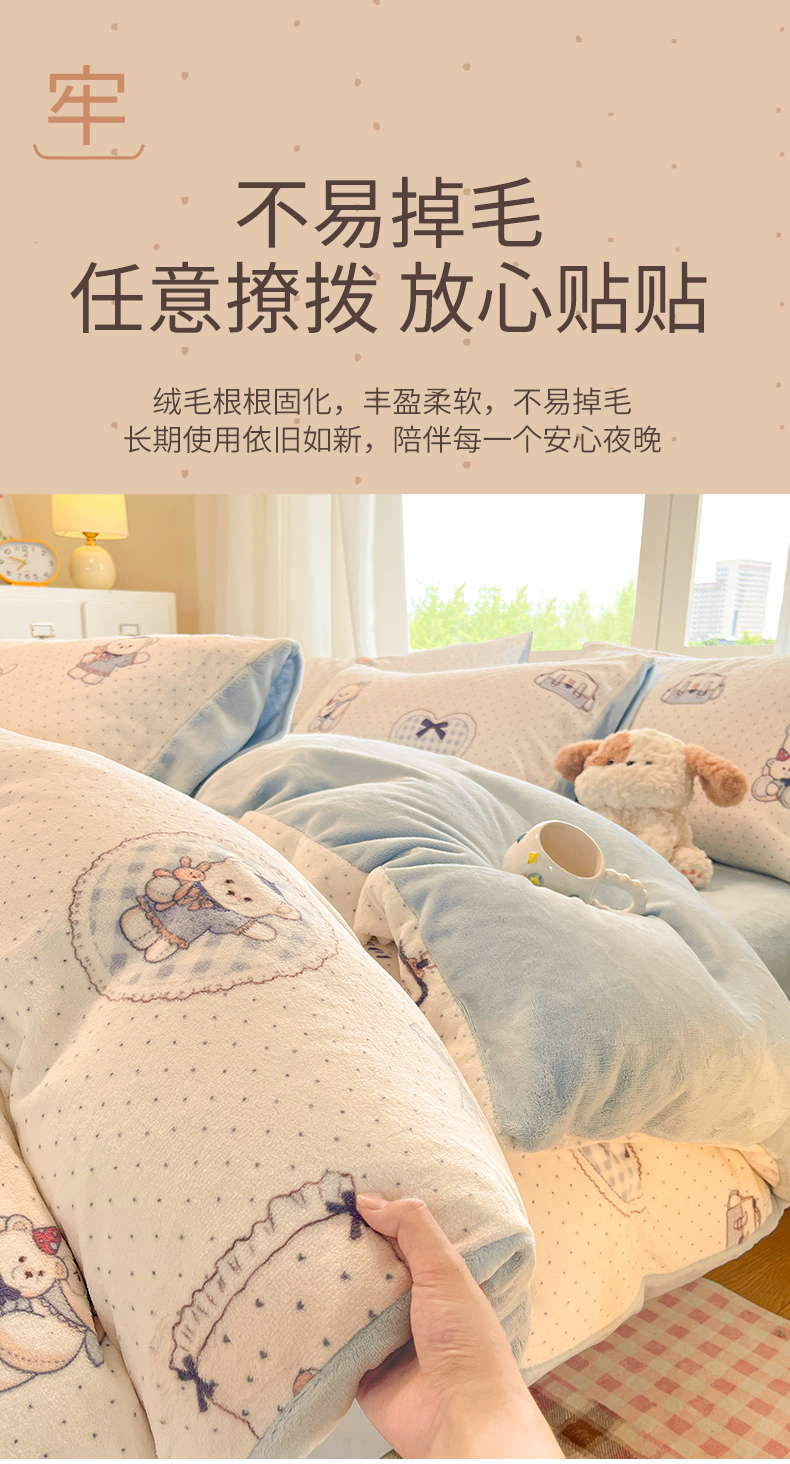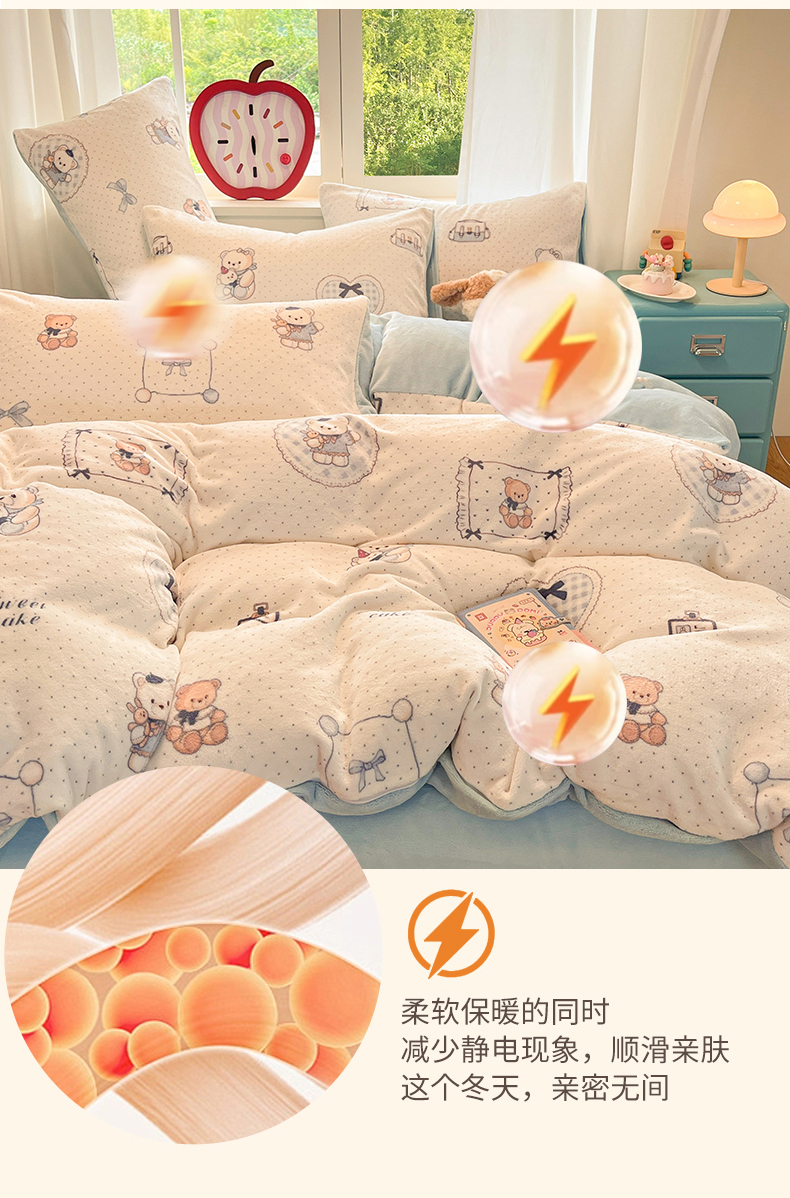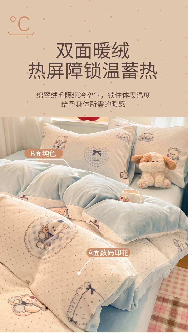 云棉坊 2025新款高克重卡通牛奶绒四件套-印花系列 波点熊