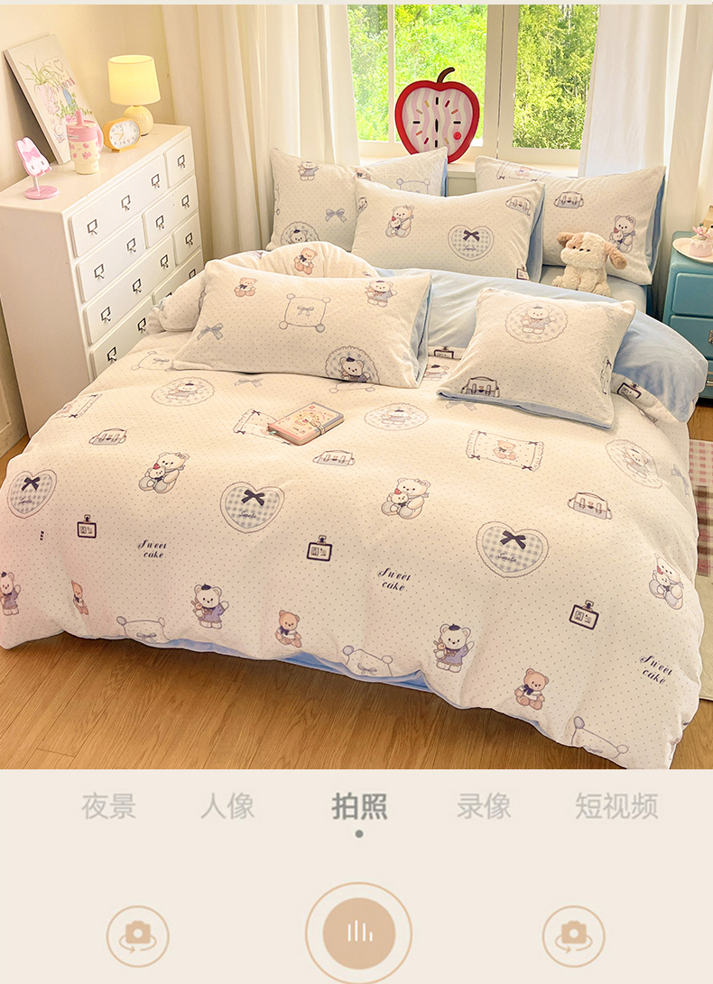 商品名称:云棉坊 2025新款高克重卡通牛奶绒四件套-印花系列 波点熊