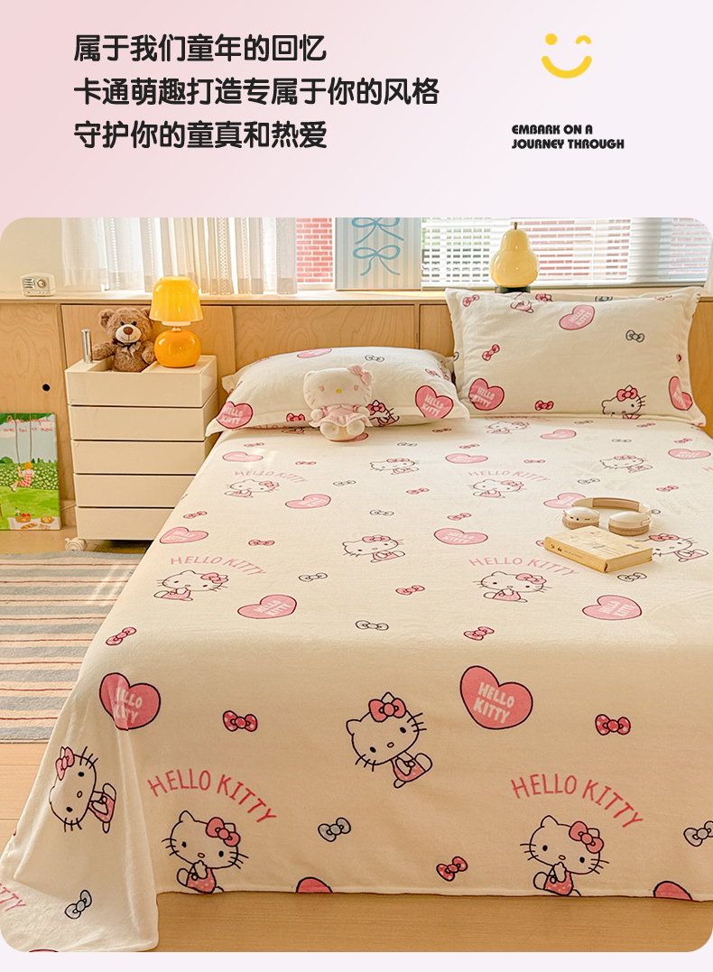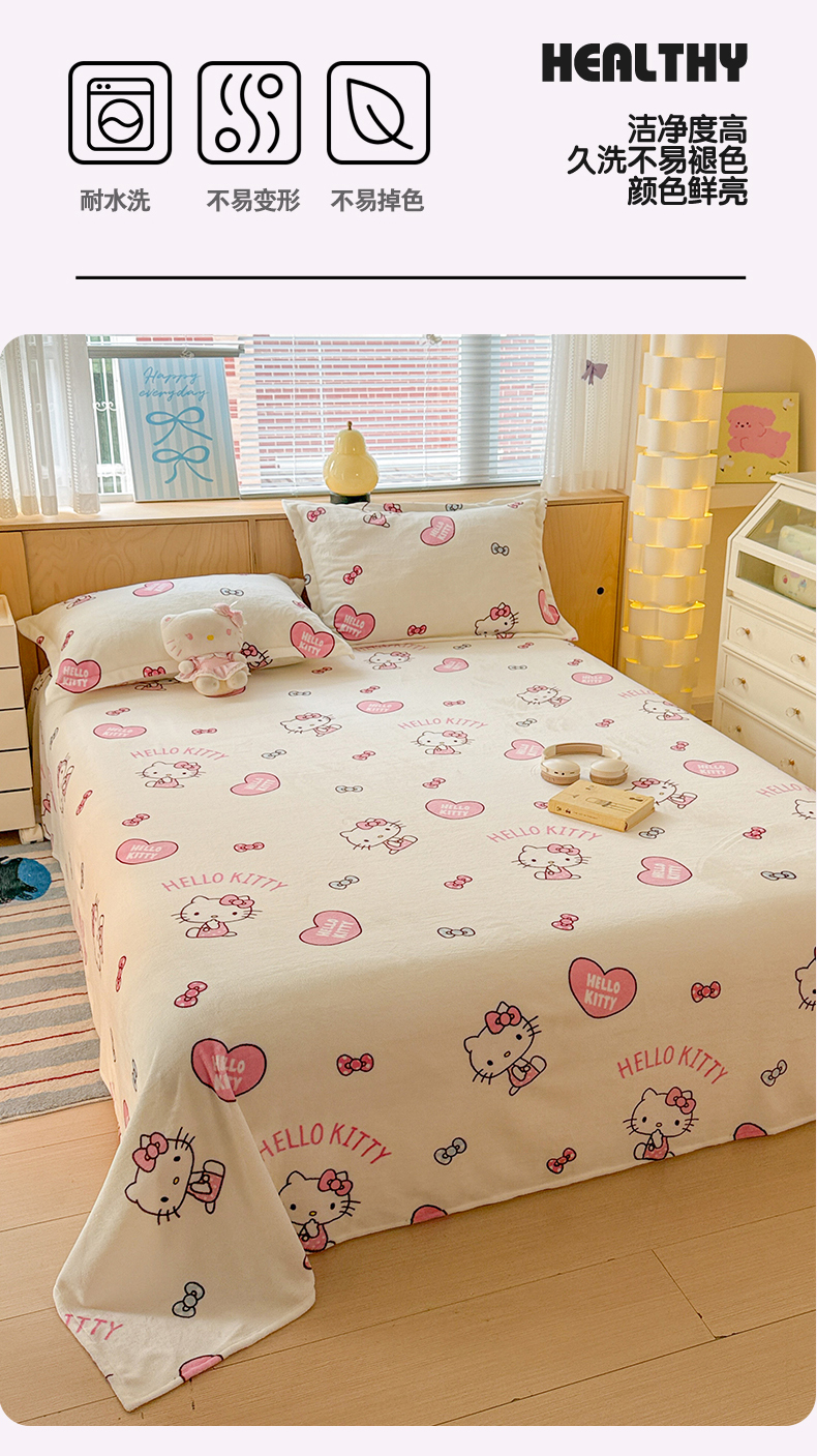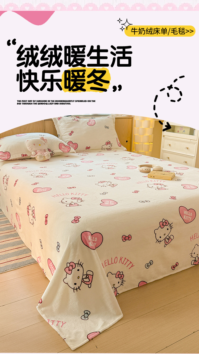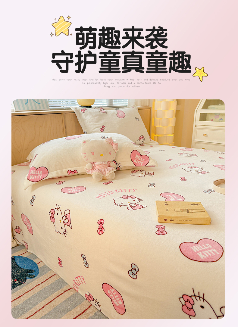 名兮家居 2025新款经典奥特曼-三丽鸥高克重牛奶绒床单 甜心kt