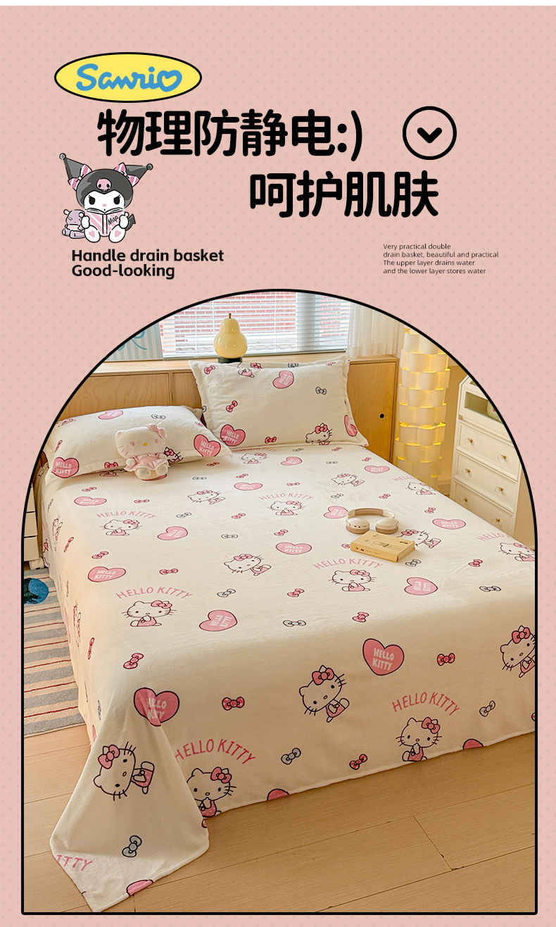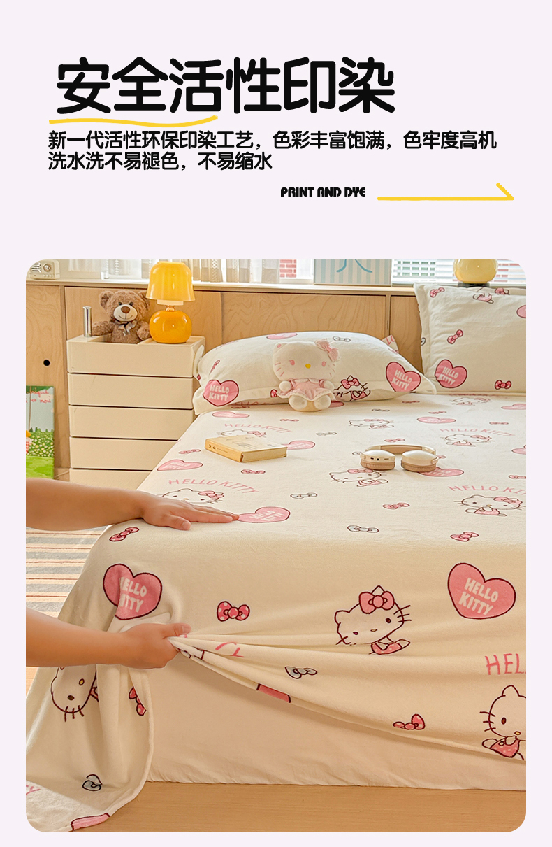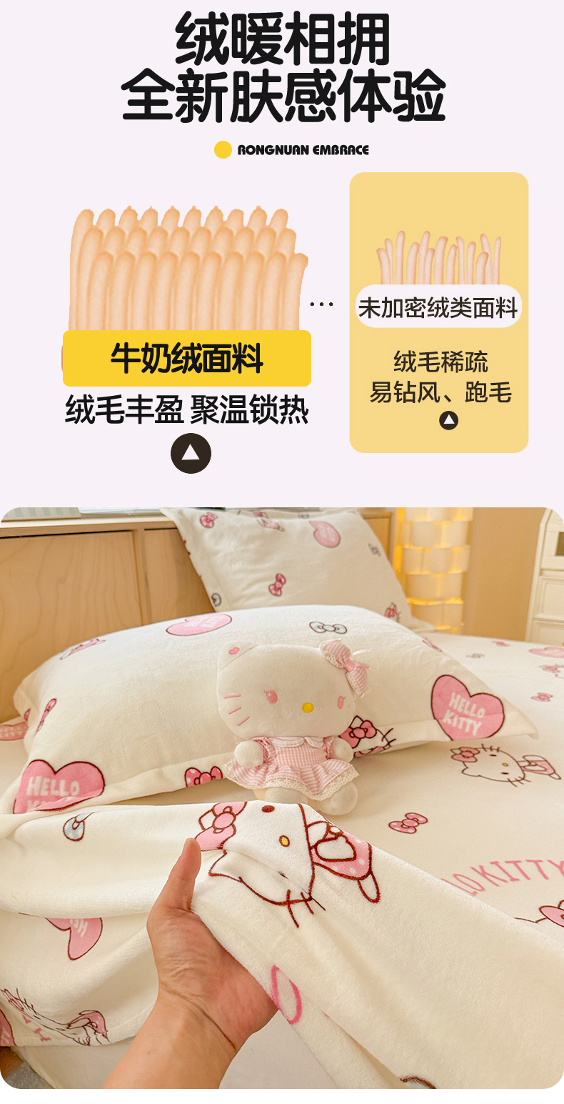 • 91家纺网 家纺一手货源 找家纺 名兮家居 2025新款经典奥特曼-三丽鸥高克重牛奶绒床单 甜心kt