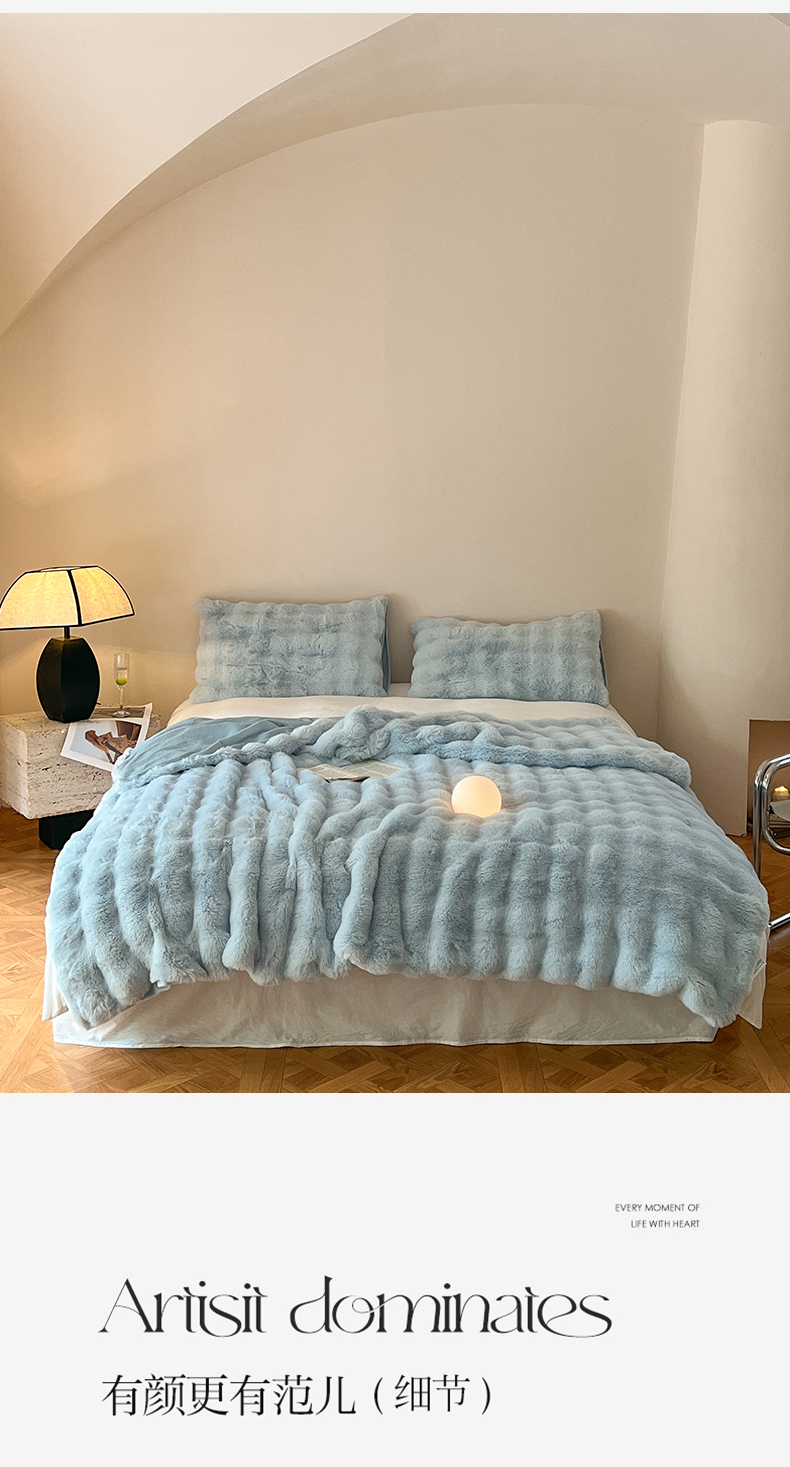 (总)(买家秀 爆款不断货)A类母婴级高克重獭兔绒四件套牛奶绒四件套牛奶绒四件套纯色韩版荷叶边兔毛绒四件套,泡泡粉玉,泡泡-滨海绿,泡泡-摩登卡,泡泡高级灰,泡泡卡其,泡泡奶白