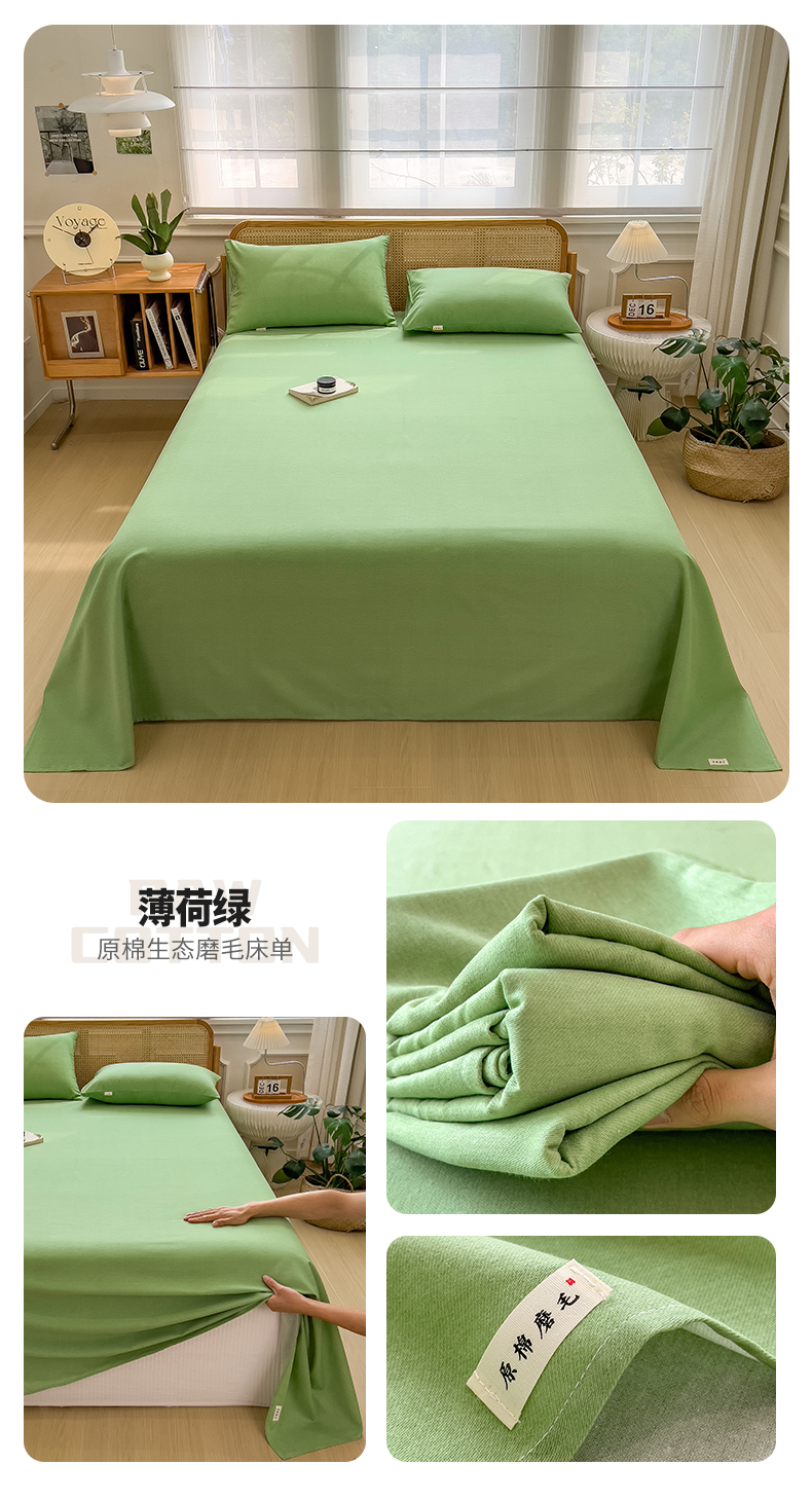 (总)芃成家纺 2025新款原棉生态磨毛单床单,薄荷绿,冰川蓝,高级灰,罗兰紫,墨染绿,奶茶咖,浅灰,浅橘色,珊瑚粉,松针绿,天青绿,香槟金,香芋紫,烟粉色