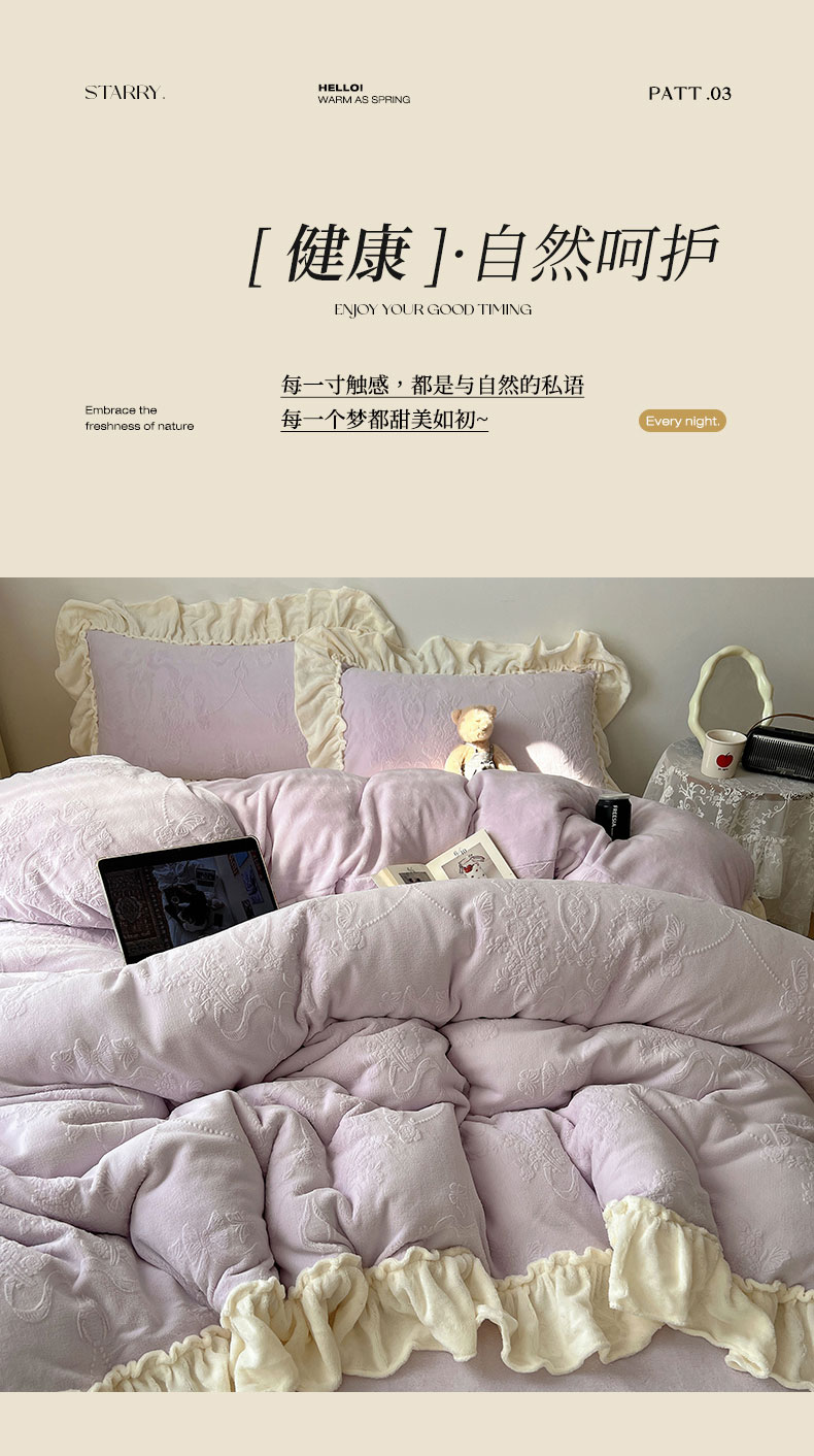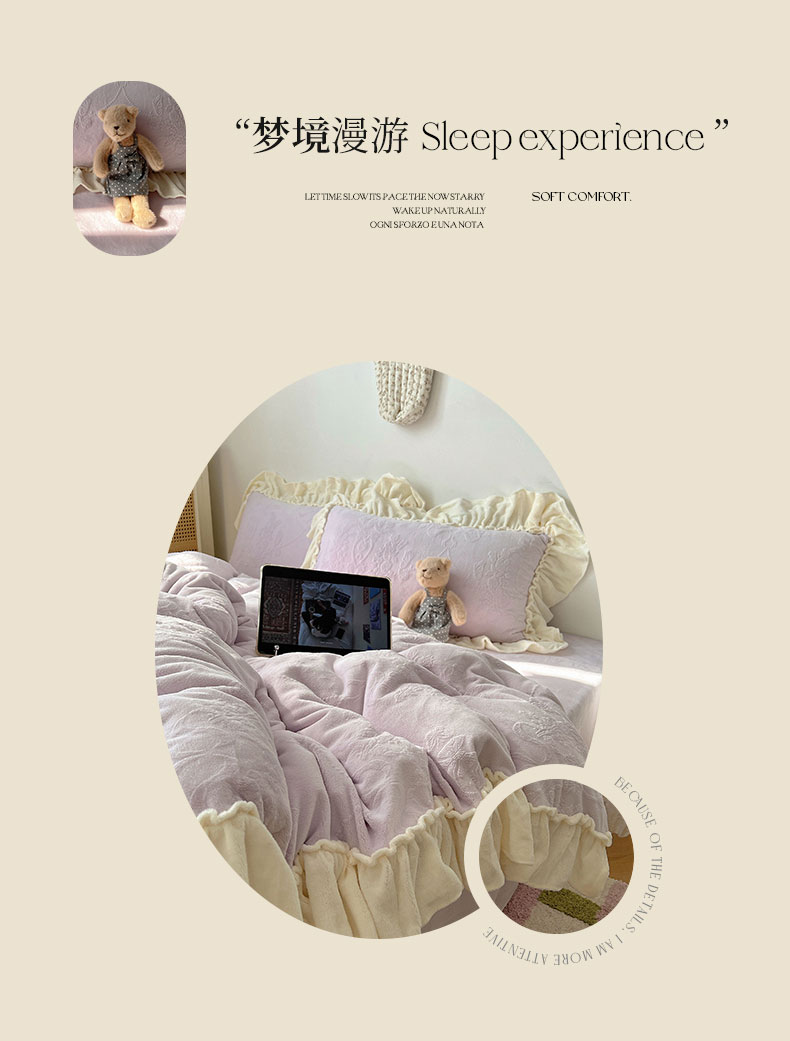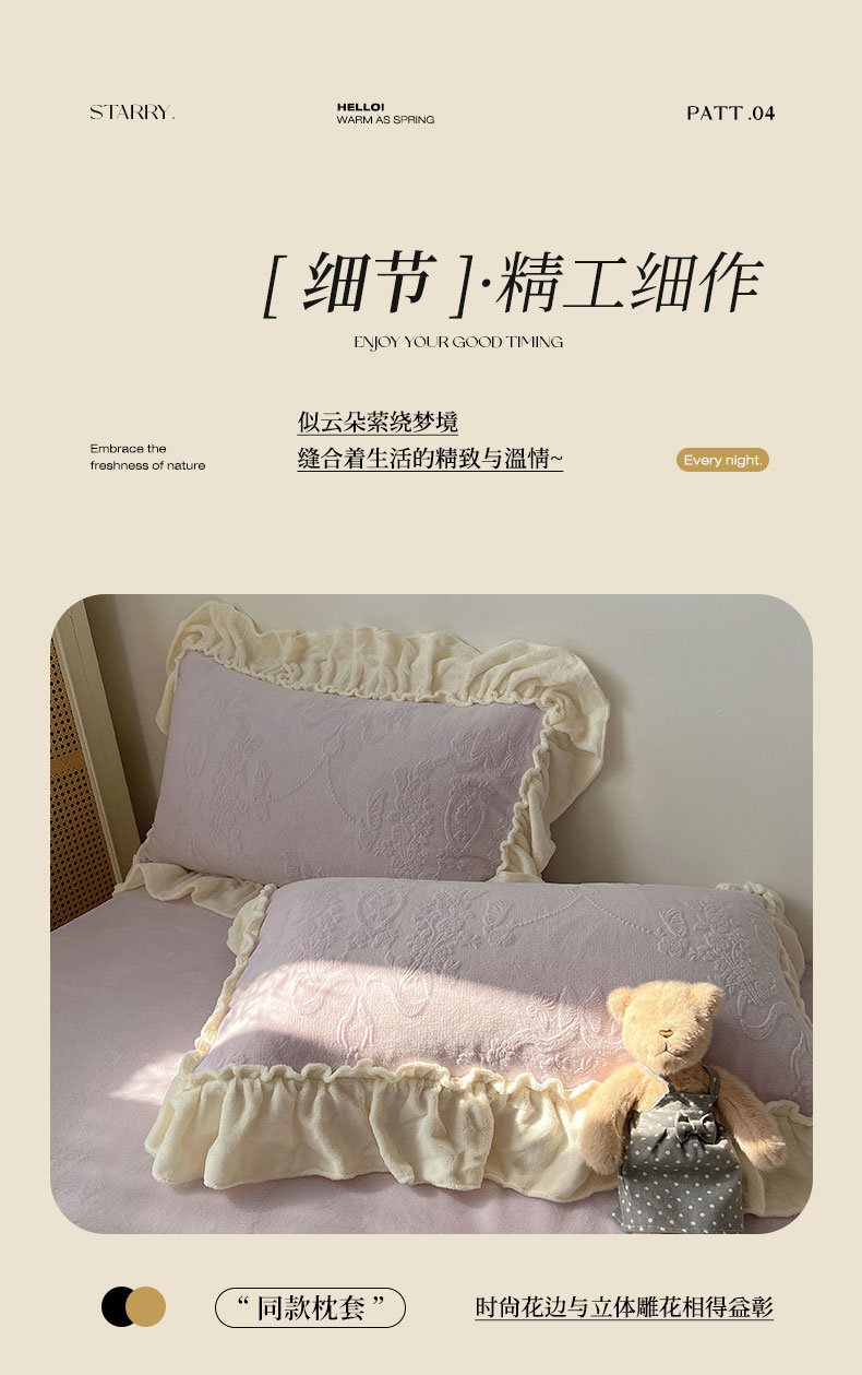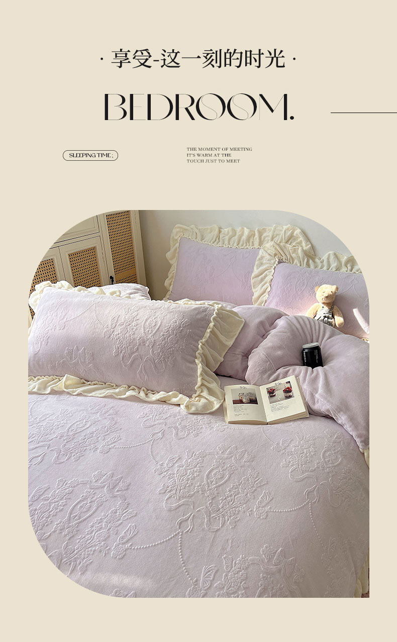 当前位置: 91家纺网 > 商品网购 > 床品套件 > 四件套 > 牛奶绒四件套 > 六巷胡同 2025新款法式立体雕花南法庄园A类210g全消光牛奶绒四件套 南法庄园-紫