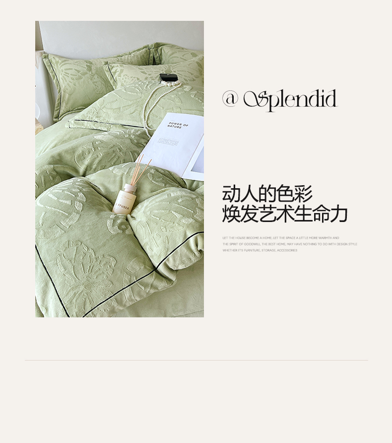 商品名称:慕希家纺 2025新款高克重牛奶绒雕花四件套-蝶梦 蝶梦-豆蔻绿