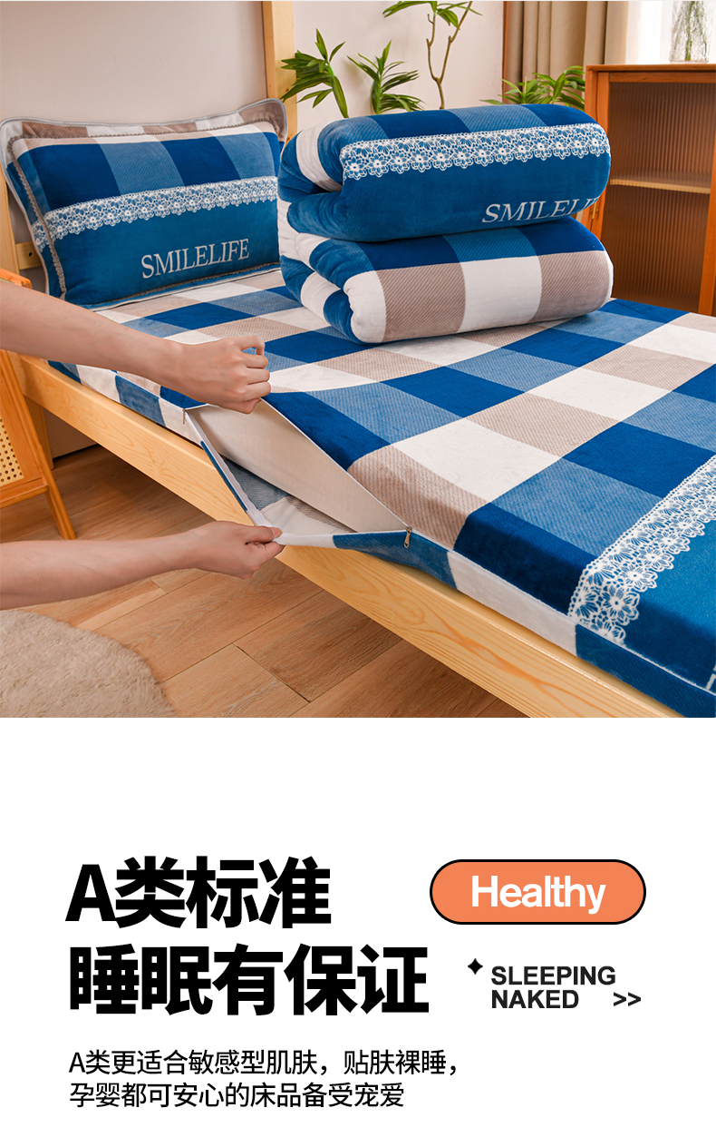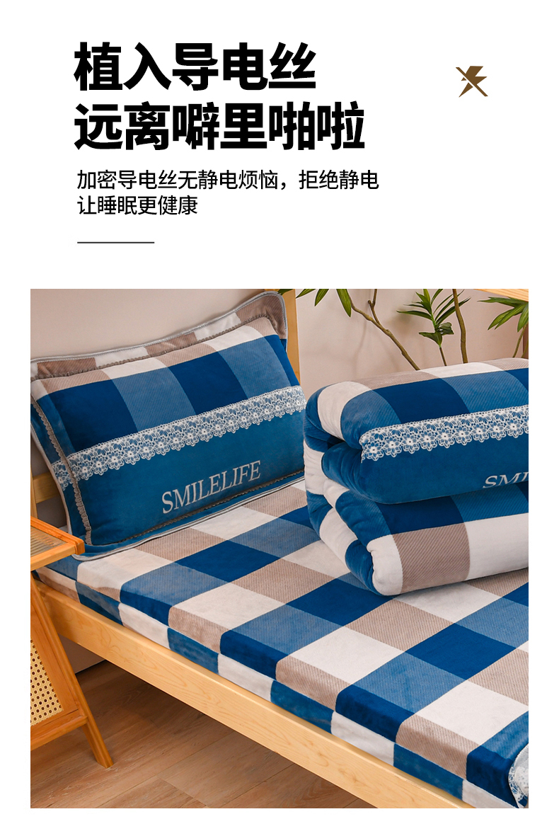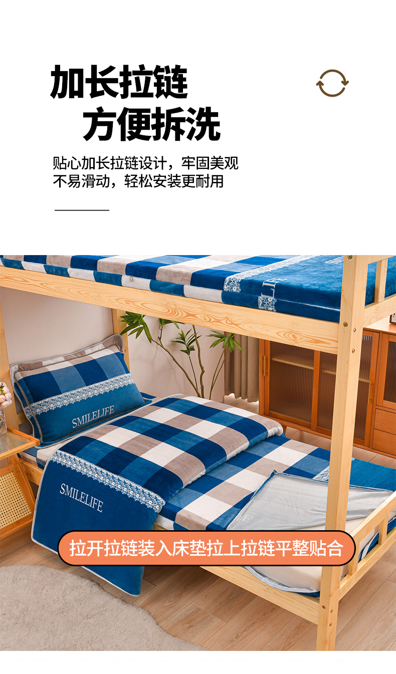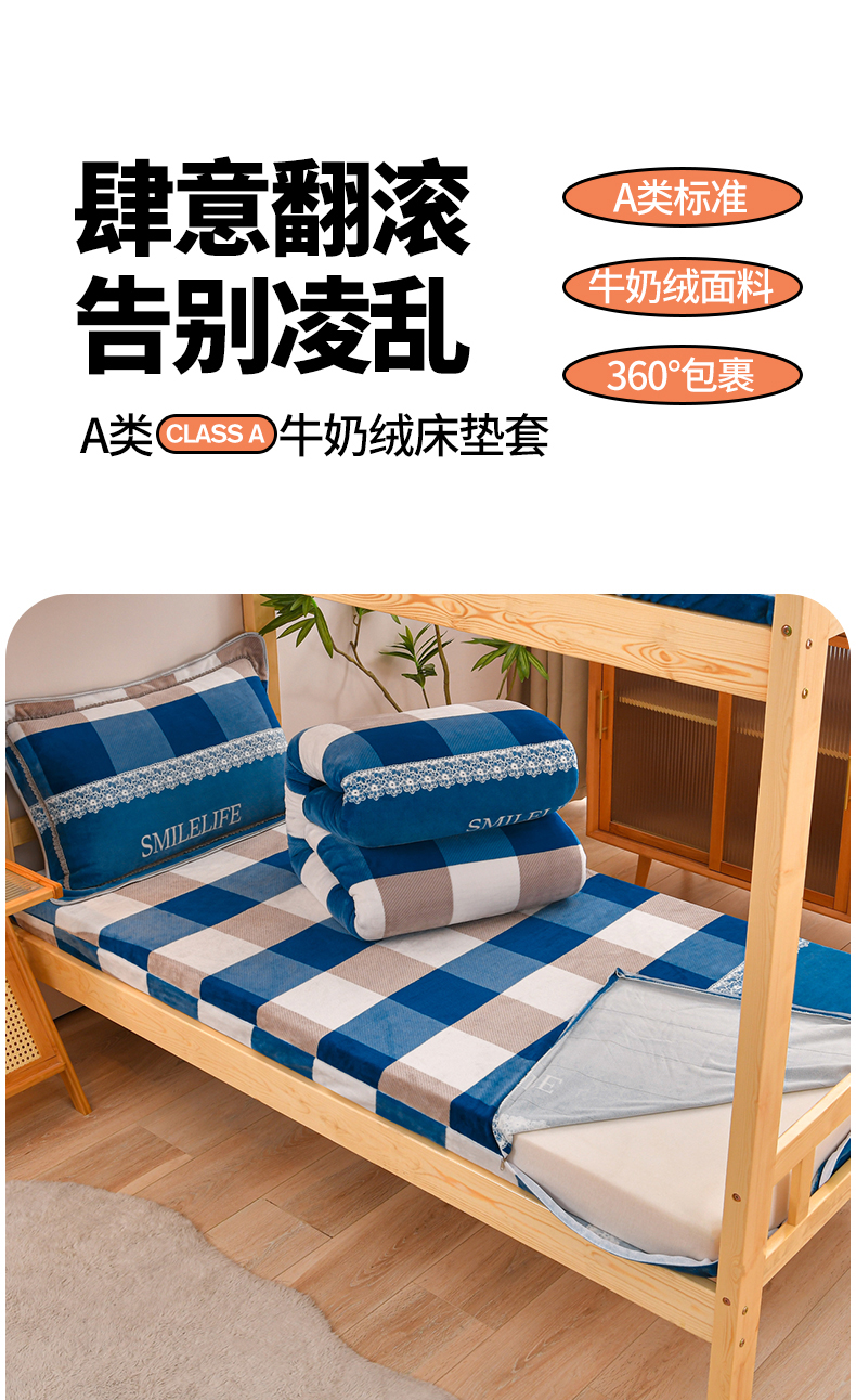 商品名称:居尚家纺 2025新款牛奶绒学生三件套床褥套床笠三件套 灰兰格