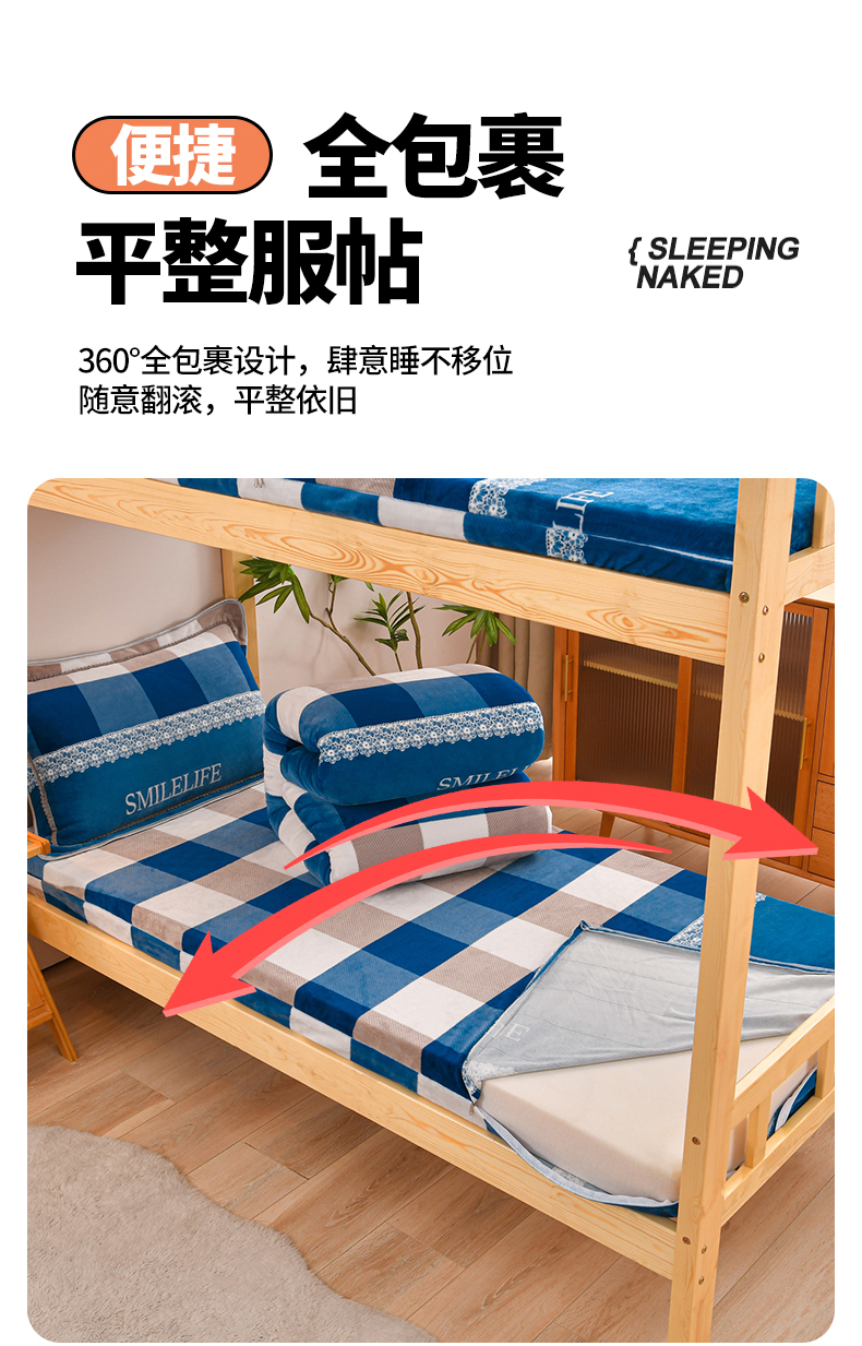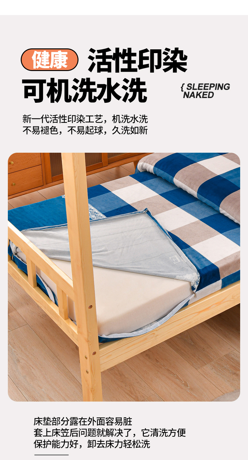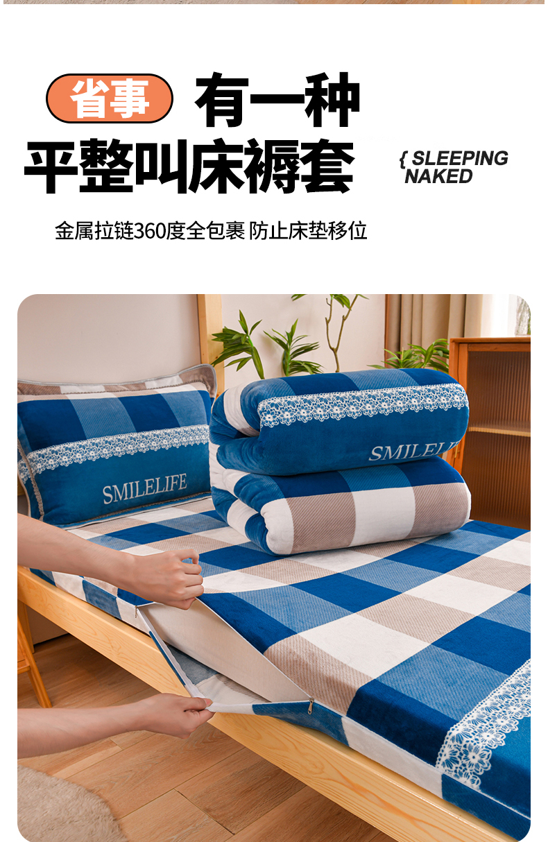 商品名称:居尚家纺 2025新款牛奶绒学生三件套床褥套床笠三件套 灰兰格