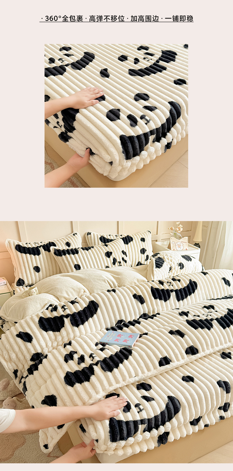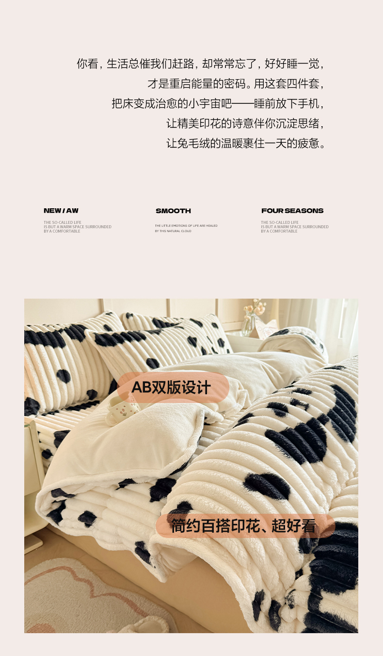 当前位置: 91家纺网 > 商品网购 > 床品套件 > 四件套 > 牛奶绒四件套 > 眠势力 2025新款兔兔绒抽条印花床笠款四件套冬季兔绒加绒保暖四件套 高级灰