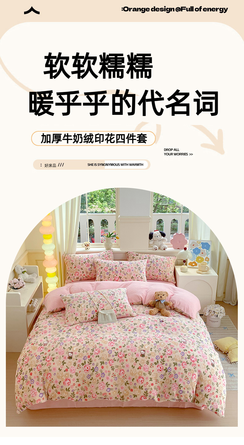 当前位置: 91家纺网 > 商品网购 > 床品套件 > 四件套 > 牛奶绒四件套 > 悦织湾家纺 2025新款高克重牛奶绒印花四件套床单床笠轻奢时尚床上用品三四件套被套 花园小猫