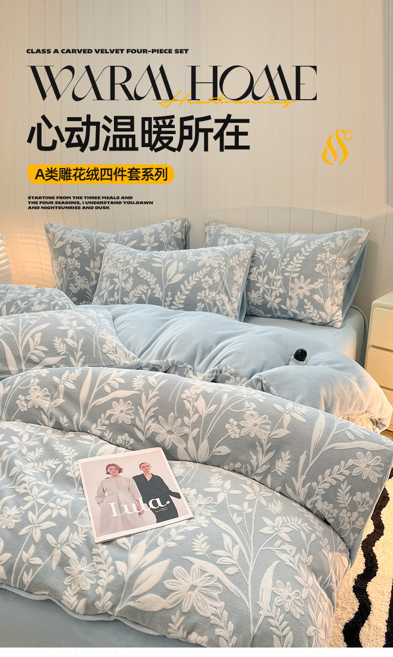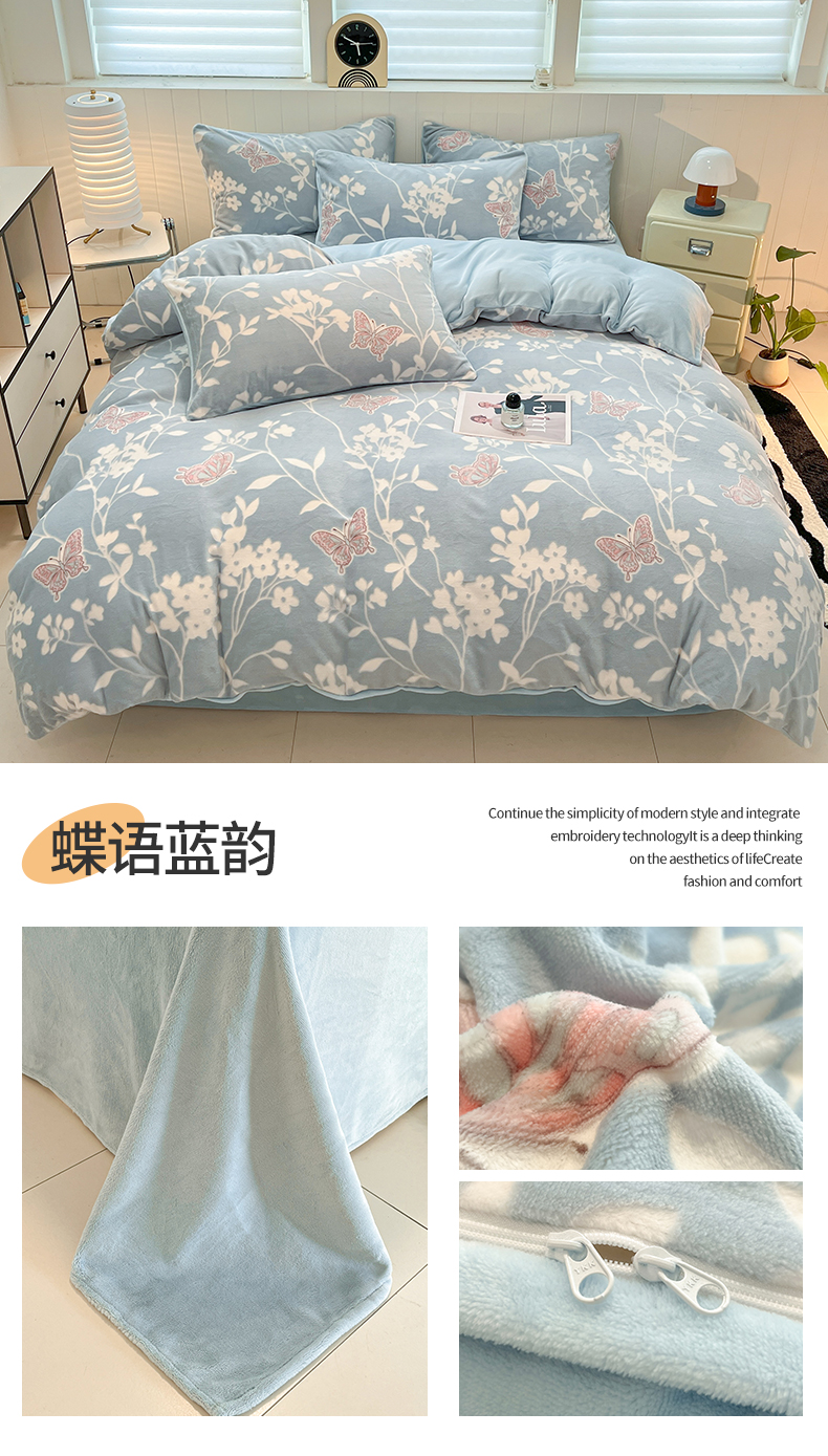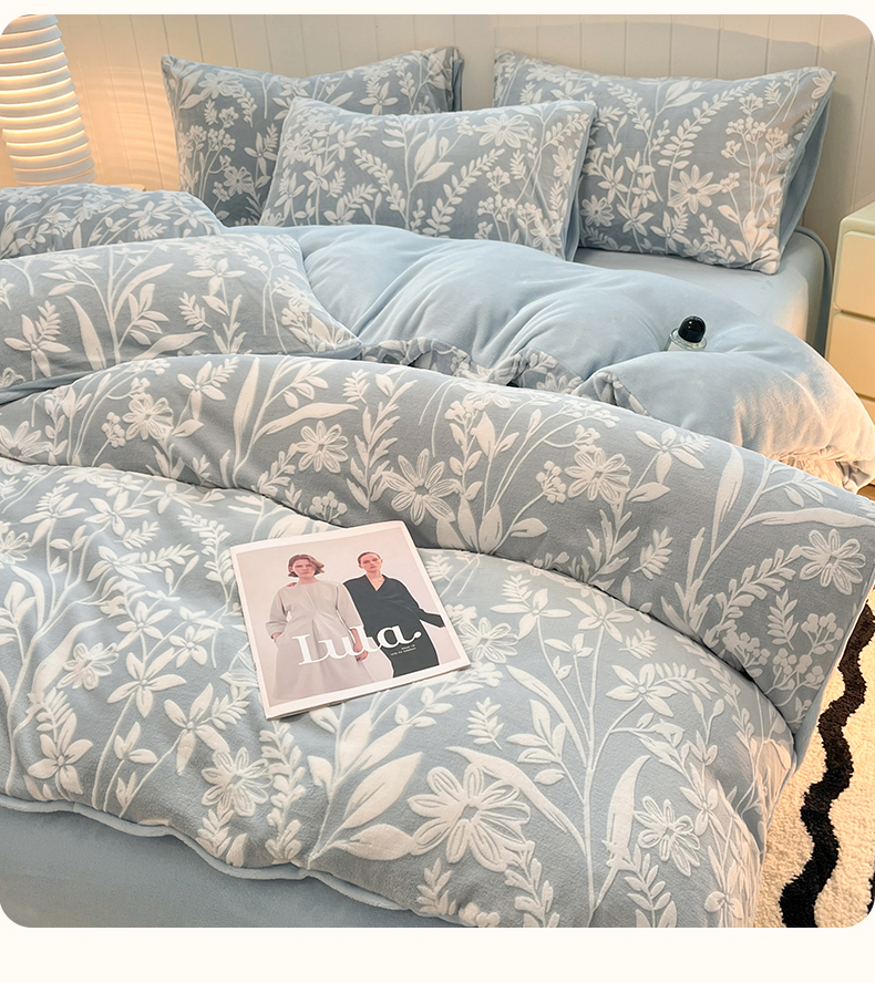 当前位置: 91家纺网 > 商品网购 > 床品套件 > 四件套 > 牛奶绒四件套 > 星座 2025新款牛奶绒雕花绒四件套 浅蓝花汀