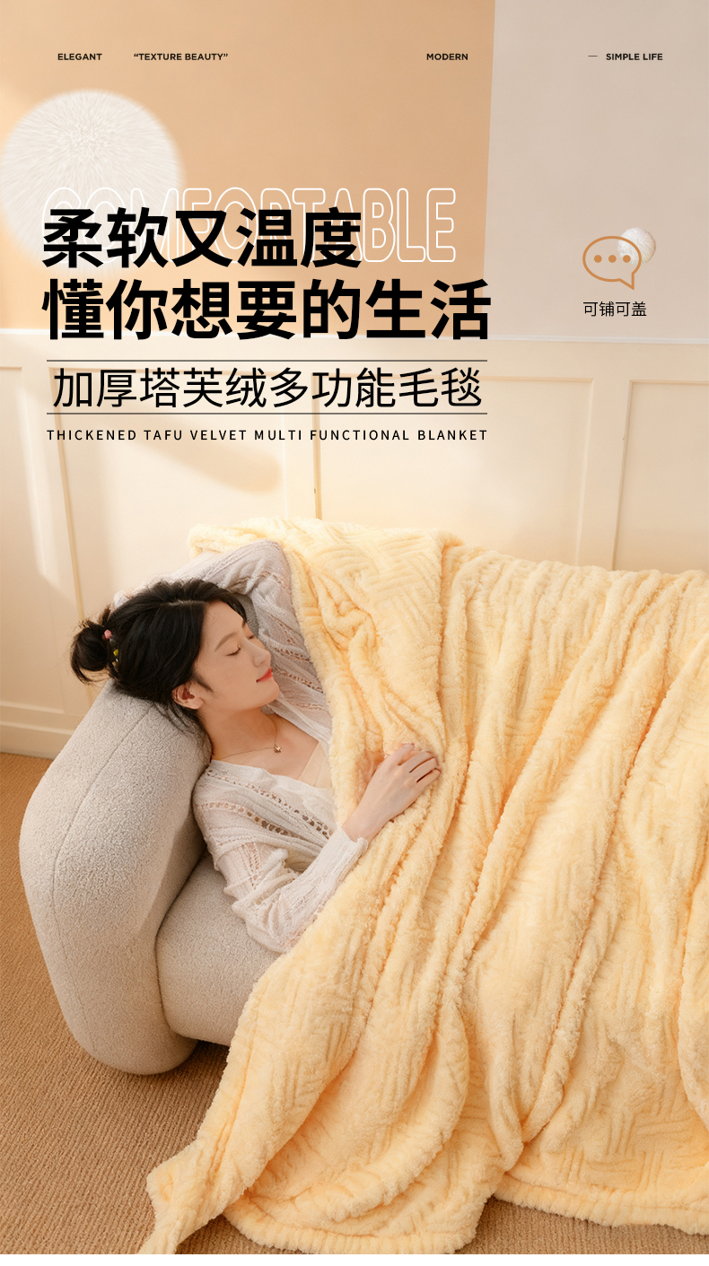 商品名称:圣楚家纺 2025新款塔芙绒毛毯盖毯毯子-恬梦 恬梦深咖