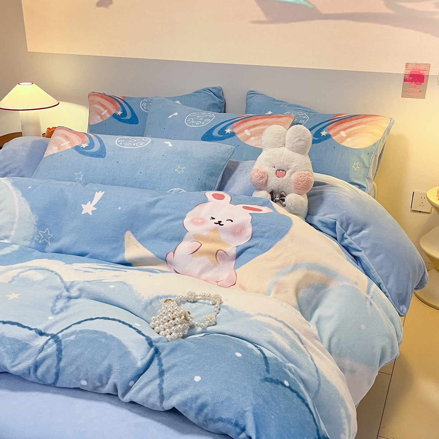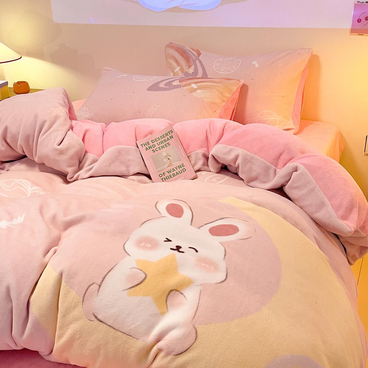 当前位置: 91家纺网 > 商品网购 > 床品套件 > 四件套 > 牛奶绒四件套 > (总)控价 2025年新款 专版花型 240克全消光A类儿童牛奶绒四件套-萌萌兔