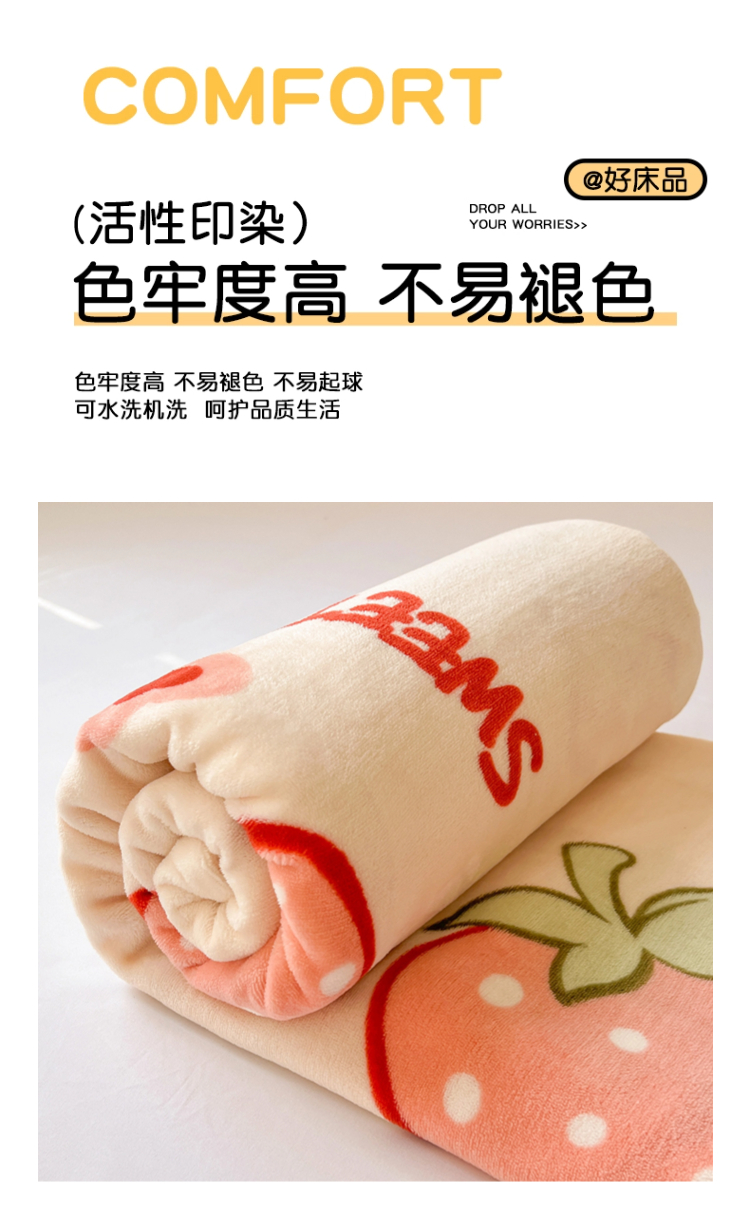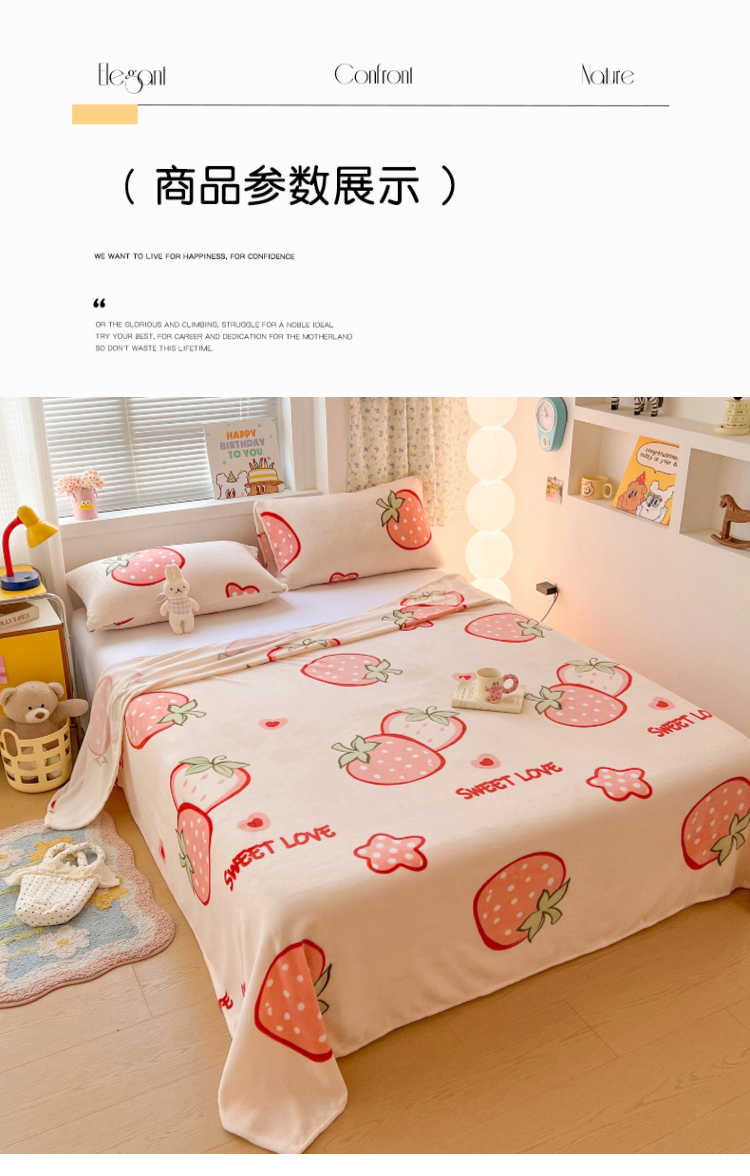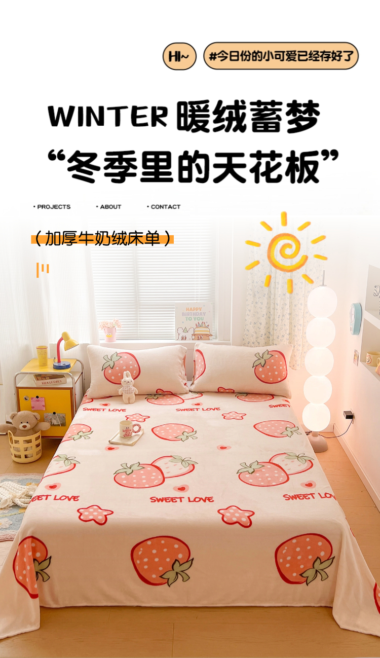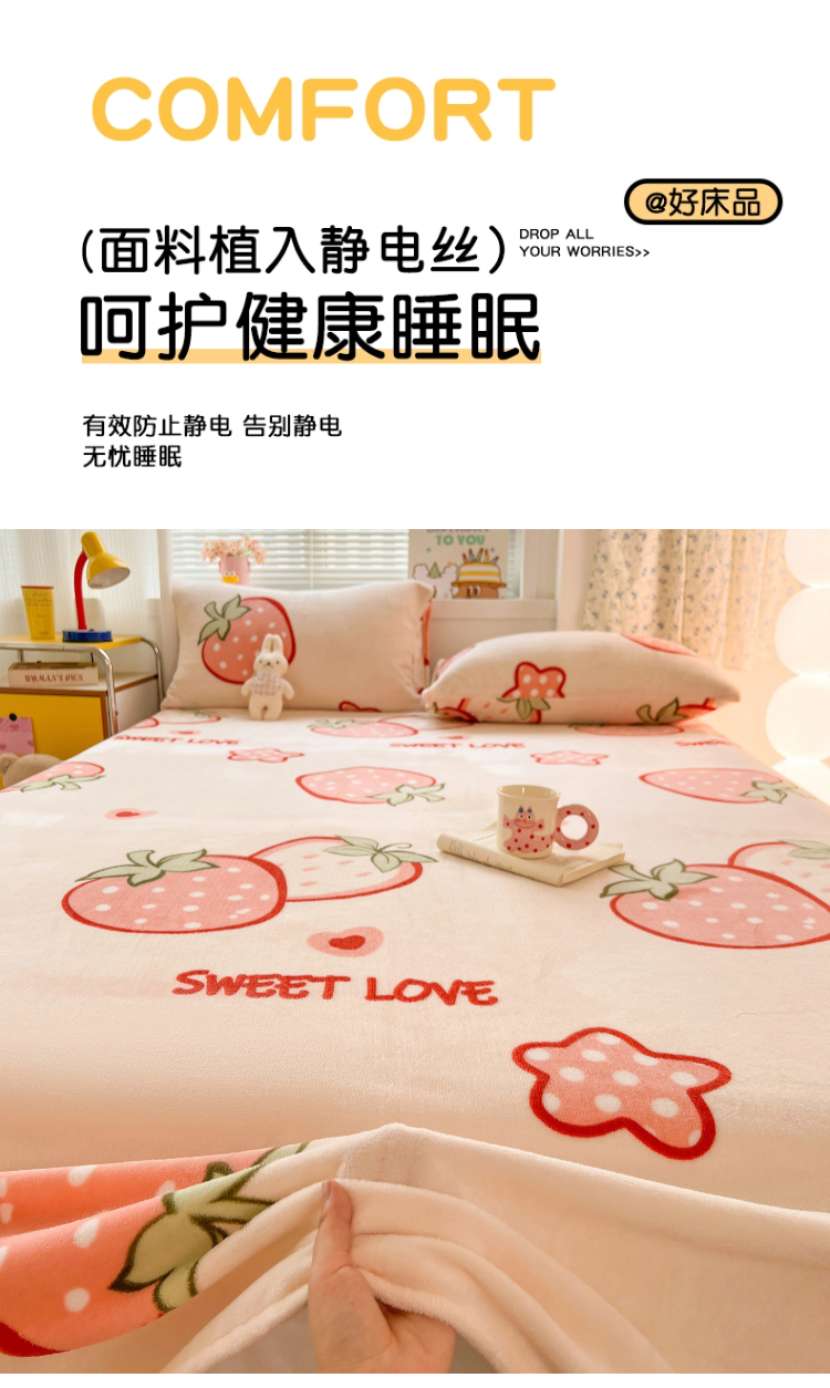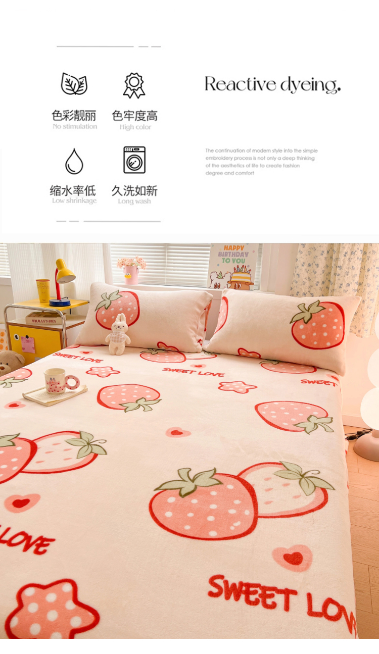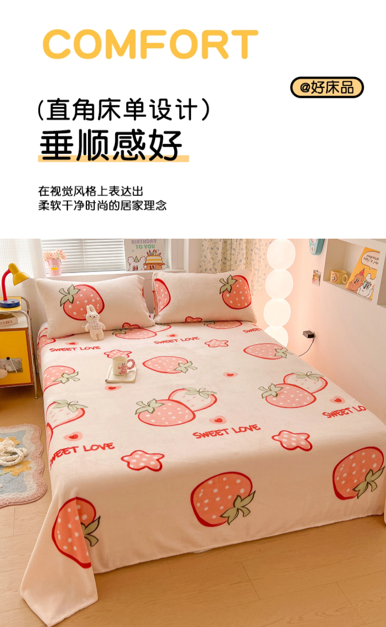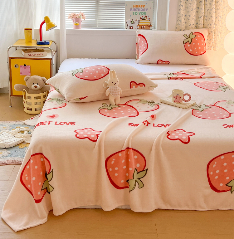 商品名称:维娜斯家纺 2025新款卡通牛奶绒印花床单单件 草莓酱