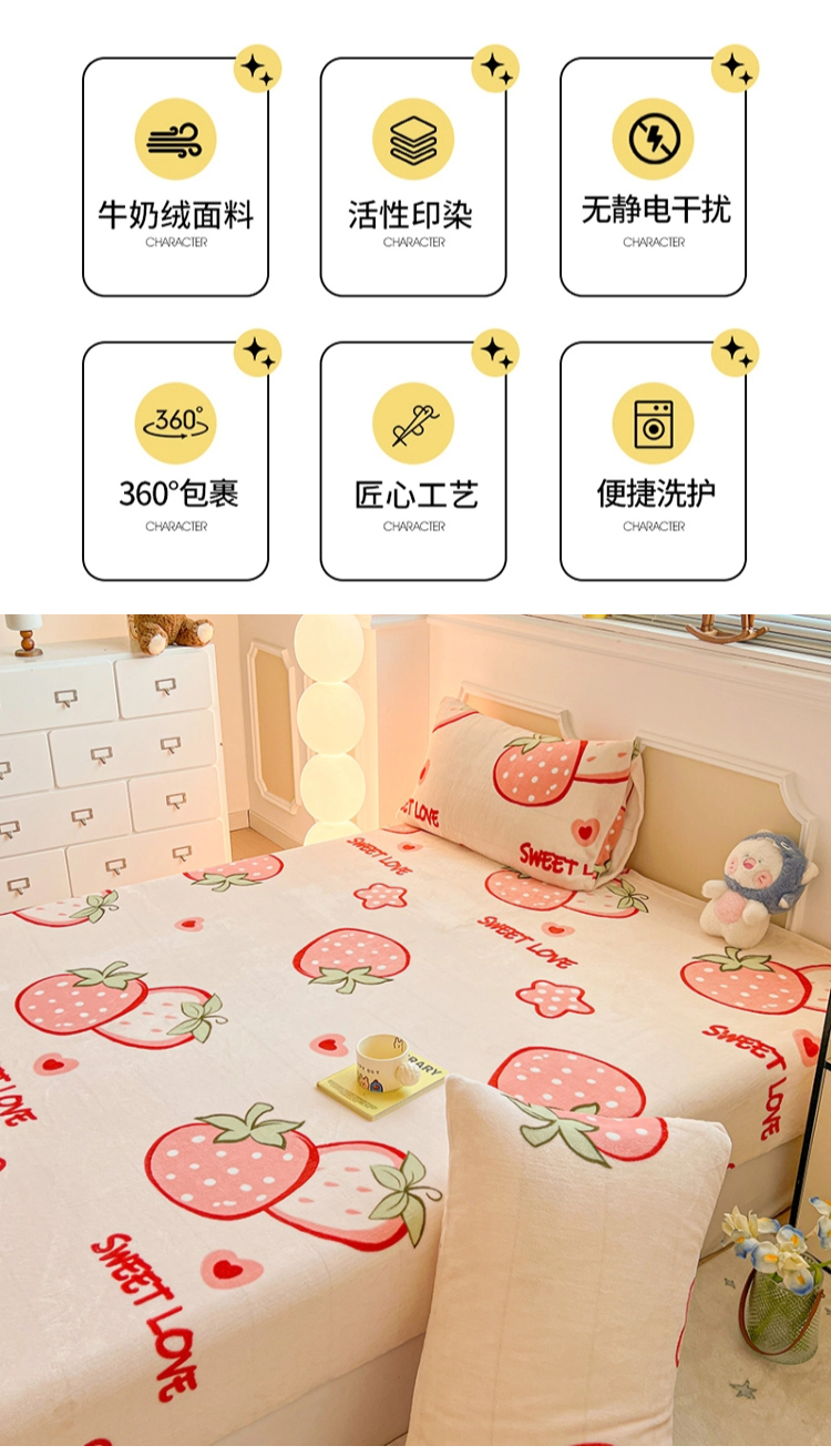 商品名称:(总)维娜斯家纺 2025新款卡通牛奶绒印花床笠单件