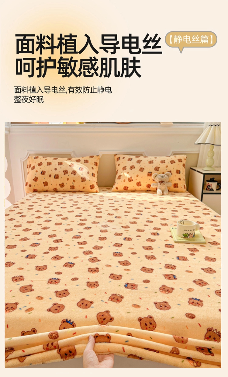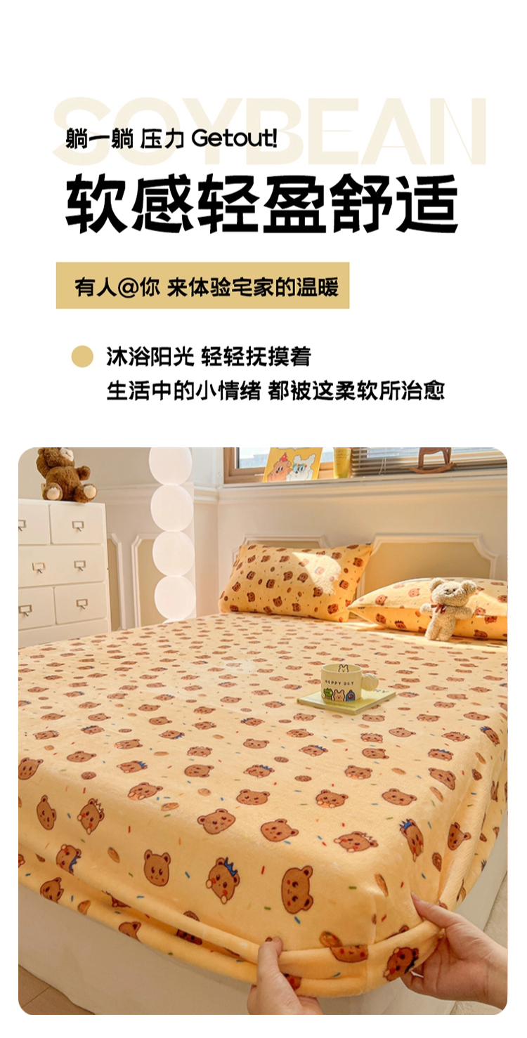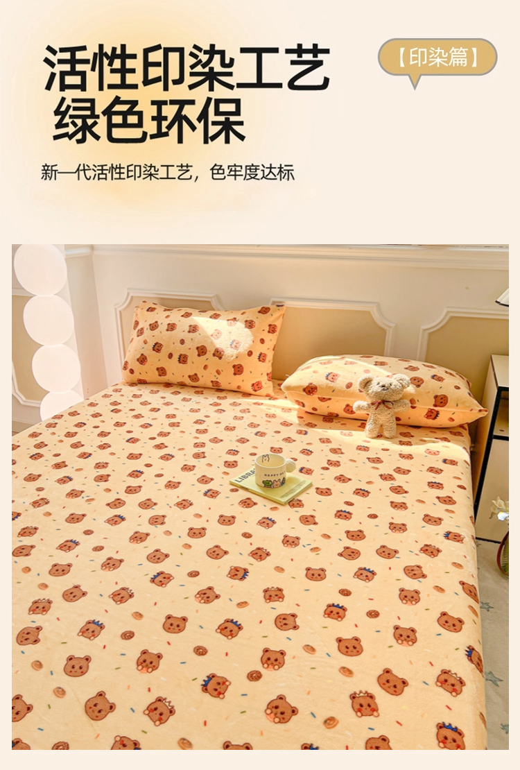 维娜斯家纺 2025新款卡通牛奶绒印花床笠单件 小熊梦梦