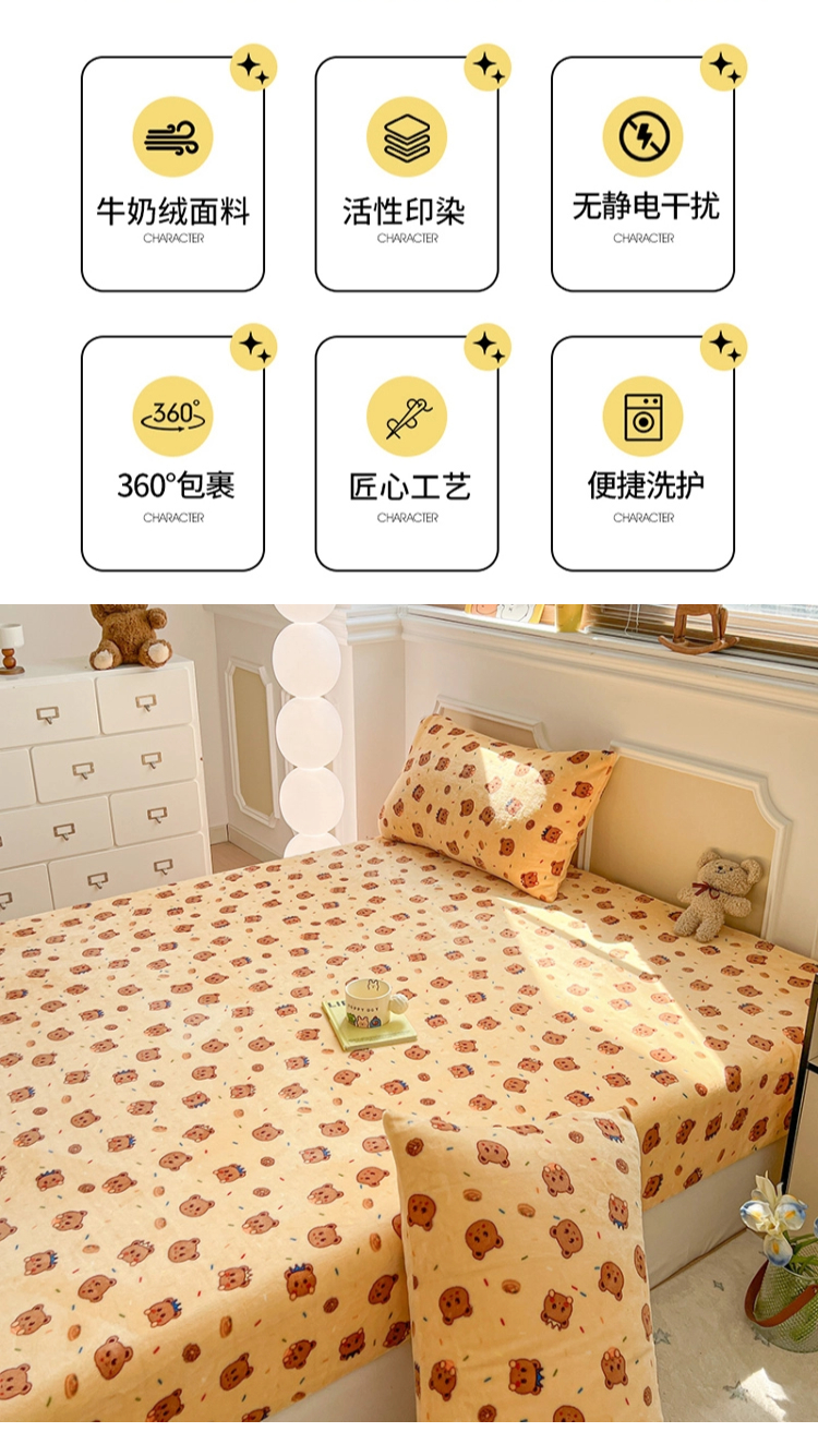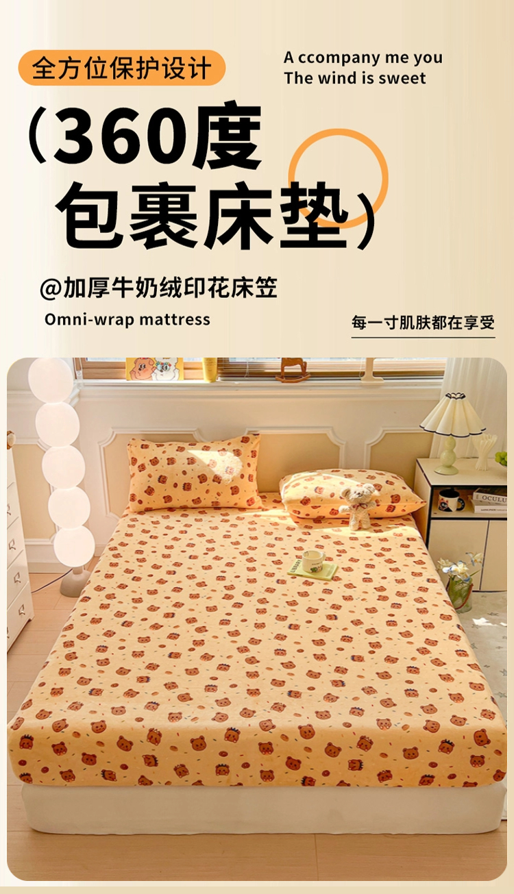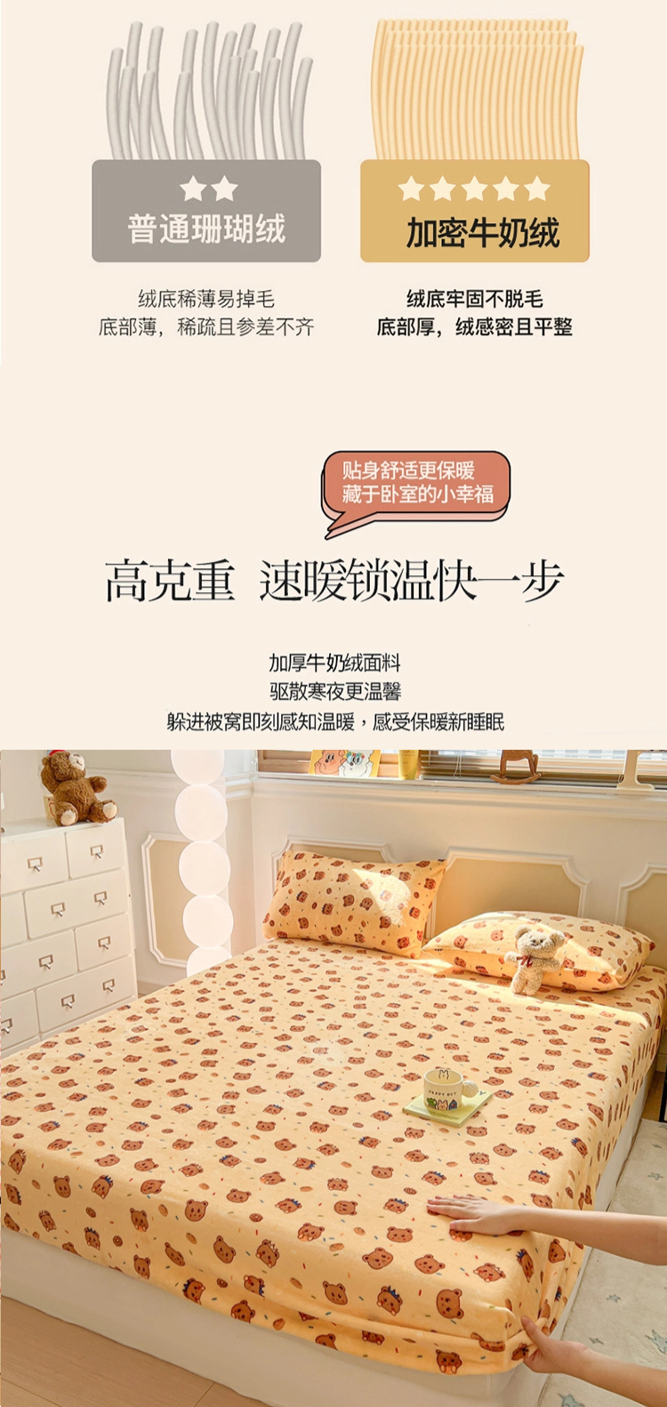 (总)维娜斯家纺 2025新款卡通牛奶绒印花床笠单件,草莓酱,花语岚山,欢度节日,欢乐猫咪,可爱猫咪,魅力小熊,萌萌哈奇,青柠薄荷,仙草,小熊梦梦