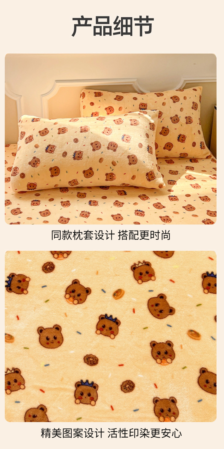 商品名称:维娜斯家纺 2025新款卡通牛奶绒印花床笠单件 小熊梦梦