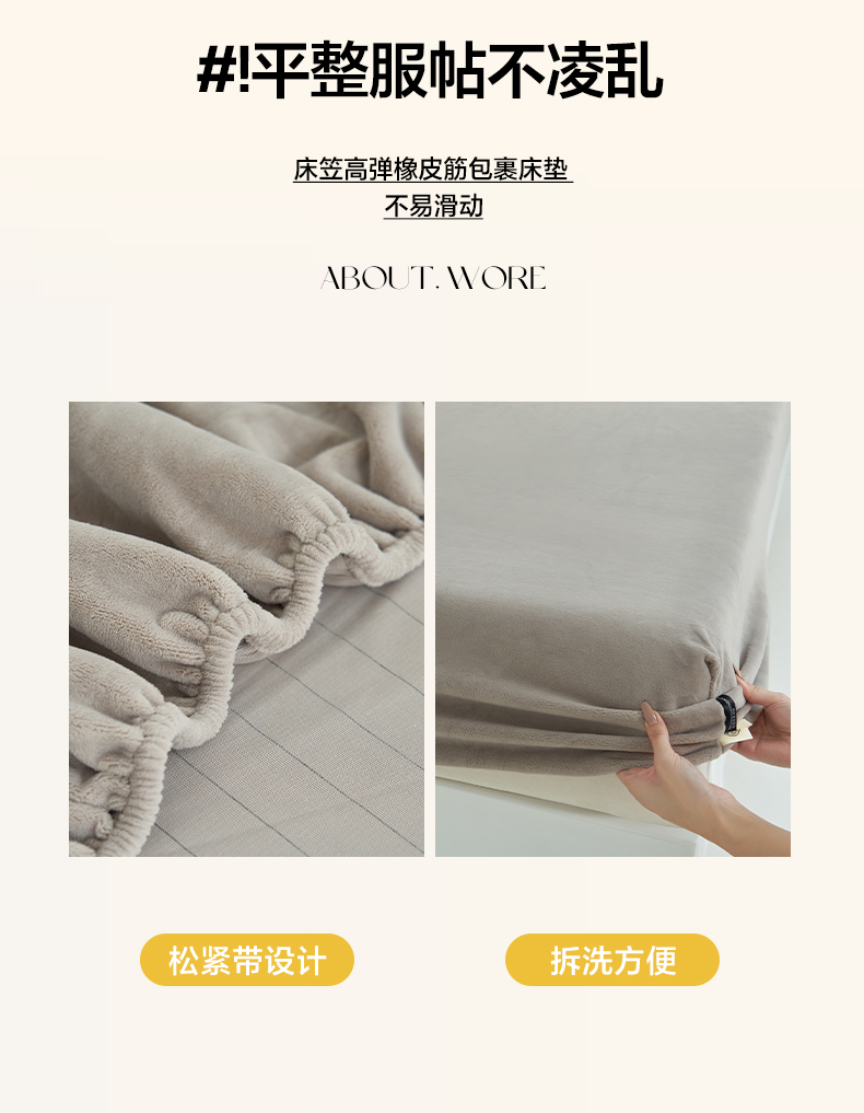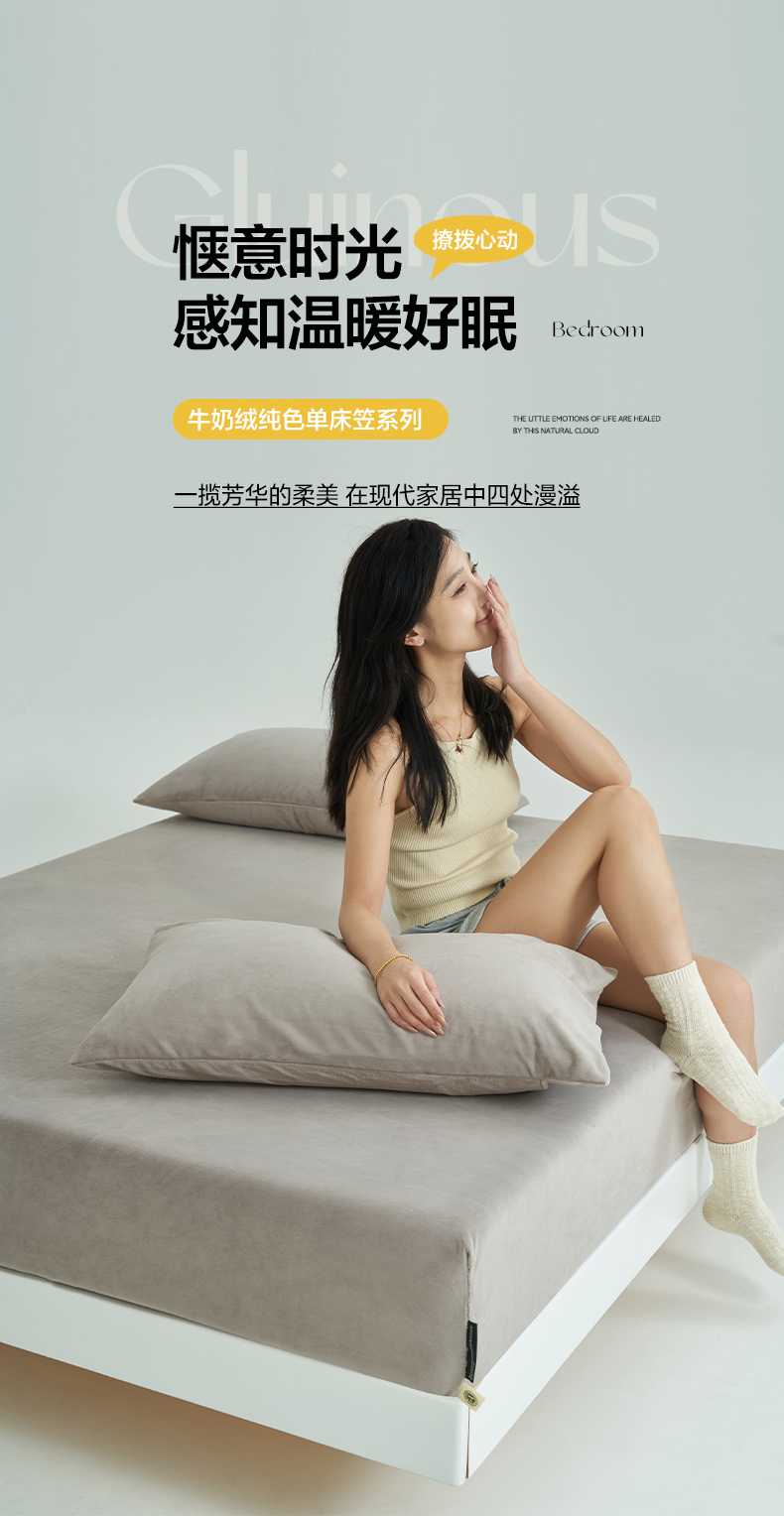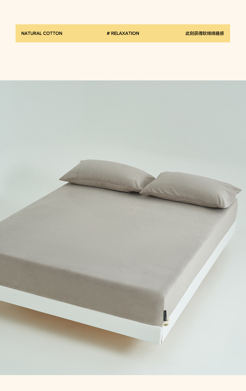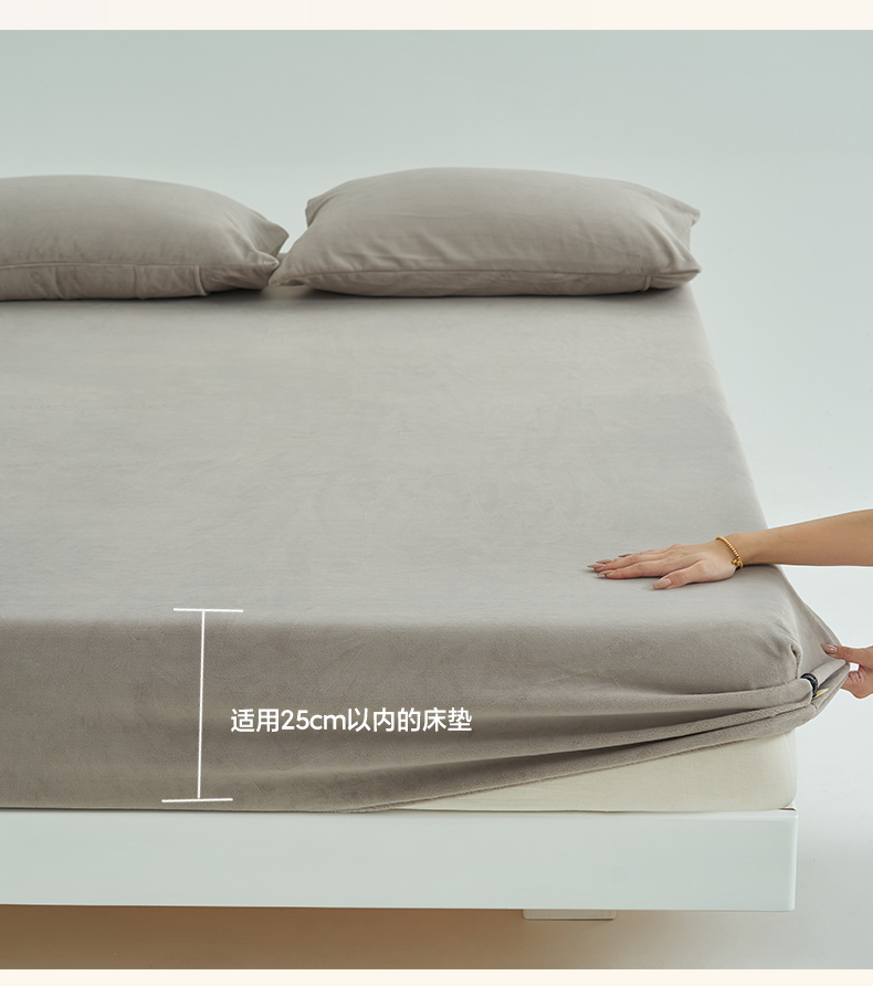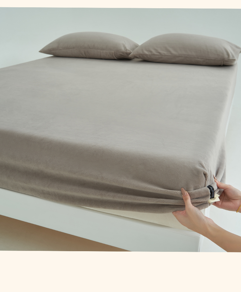 寐绸家纺 2025新款牛奶绒纯色暖绒床笠 暖绒床笠-米灰