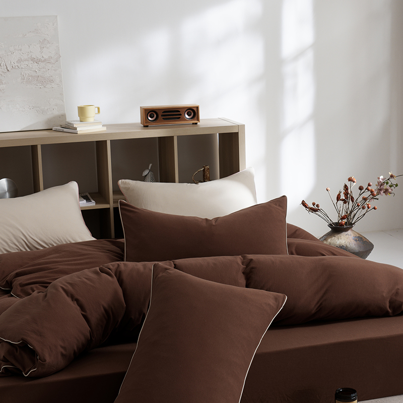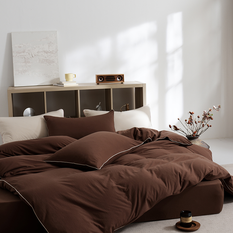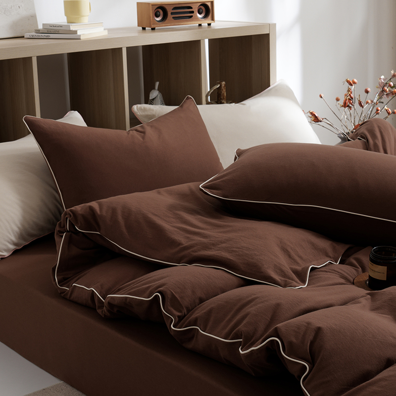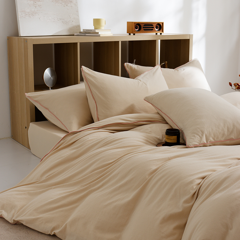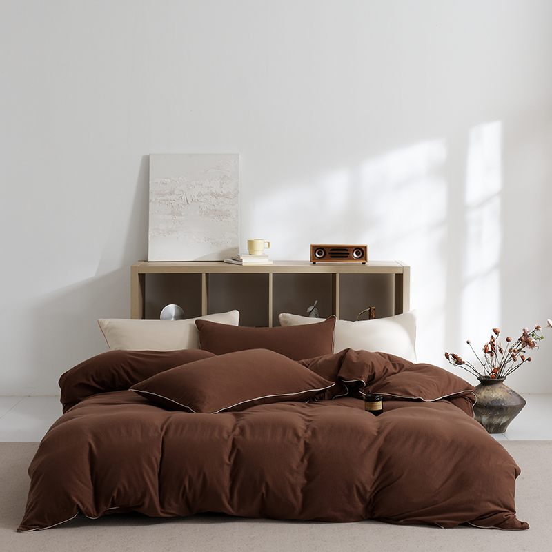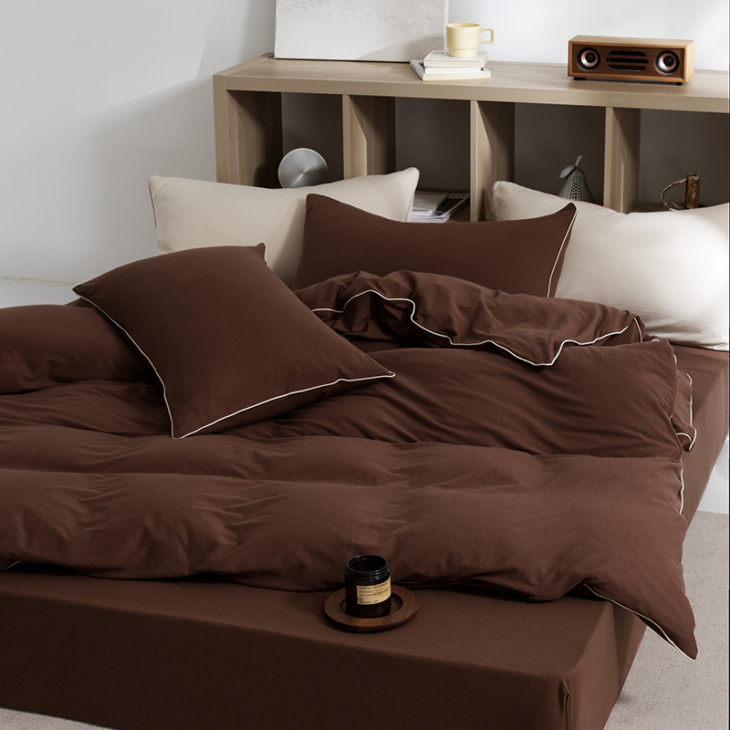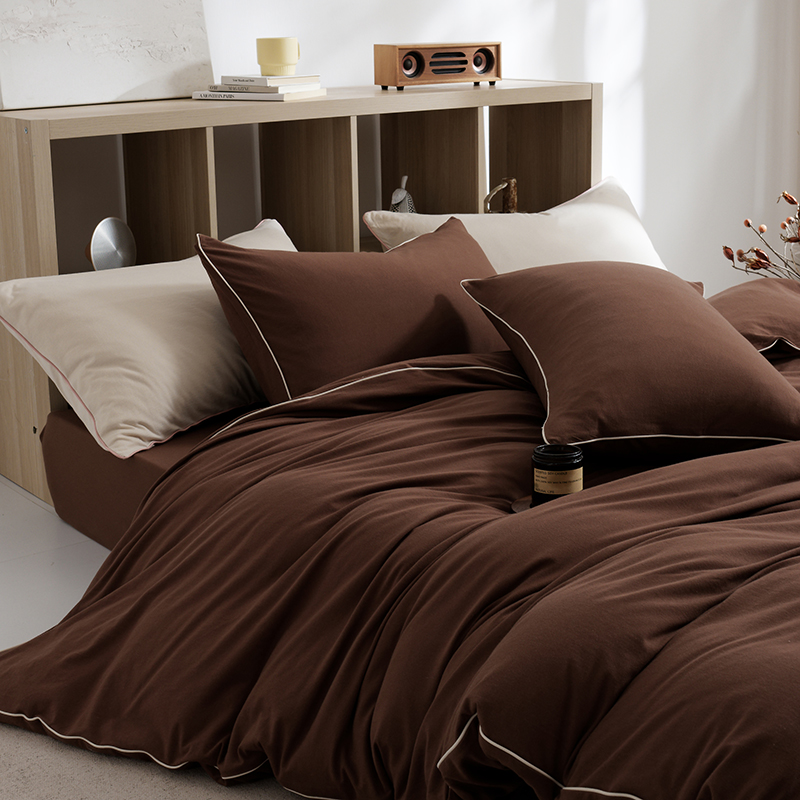 (总)LADYCOCO可可家居 2025新款纯棉针织四件套(控价不低于279元),粉色,咖色,米色