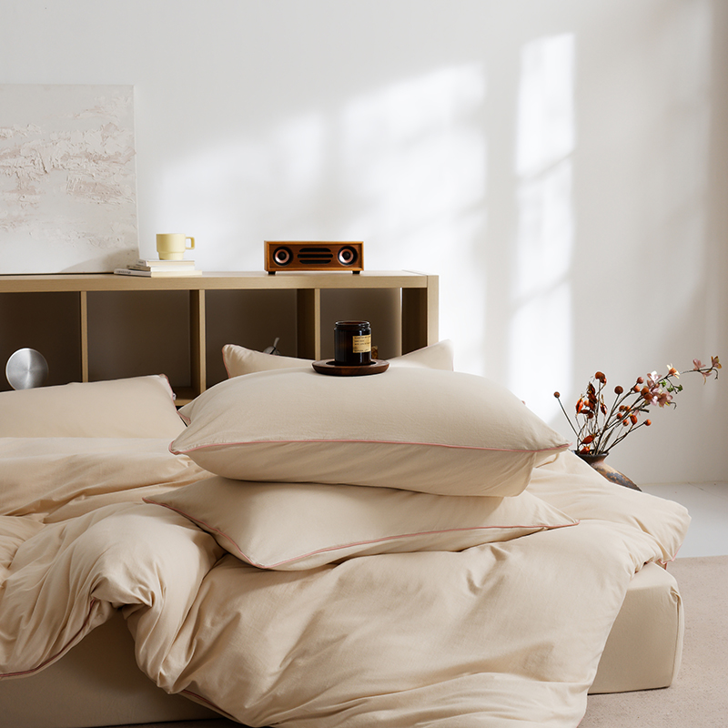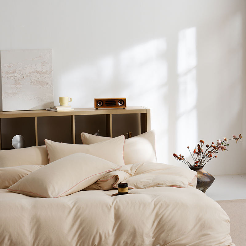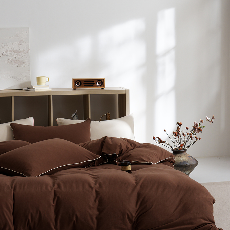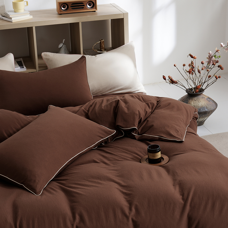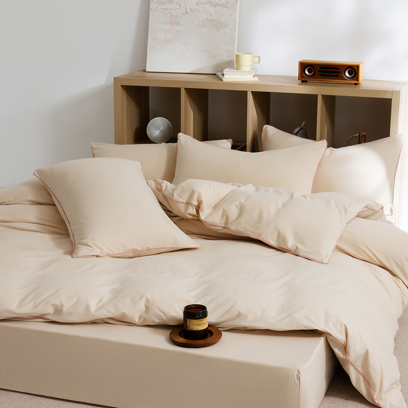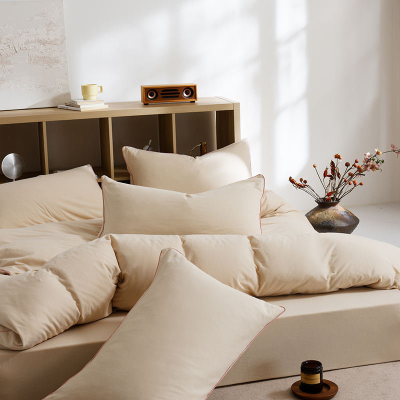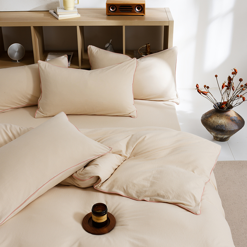 (总)LADYCOCO可可家居 2025新款纯棉针织四件套(控价不低于279元),粉色,咖色,米色