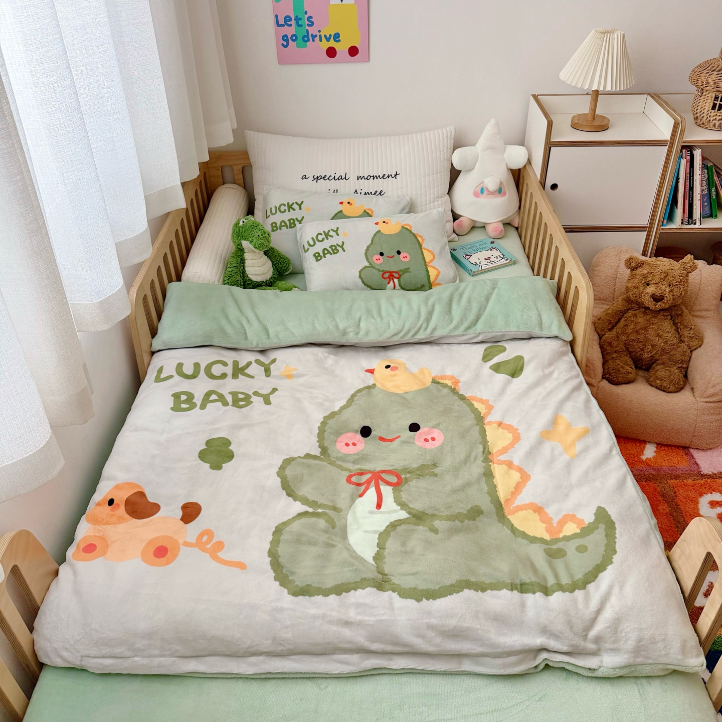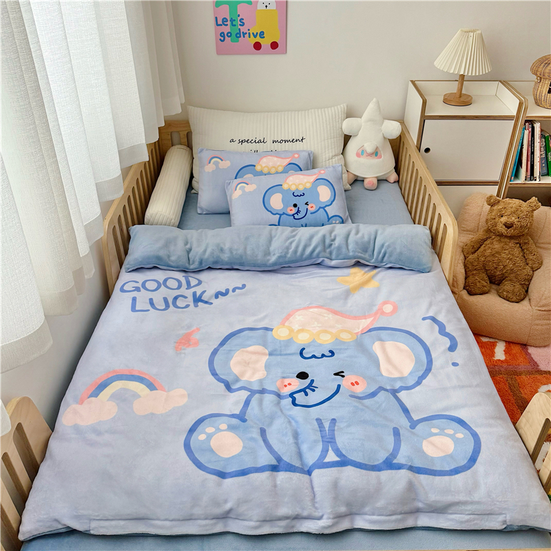 当前位置: 91家纺网 > 商品网购 > 婴童用品 > 婴童三件套 > 萌宝家纺 2025新款大版牛奶绒被套加厚保暖儿童三件套-萌宠系列 小恐龙
