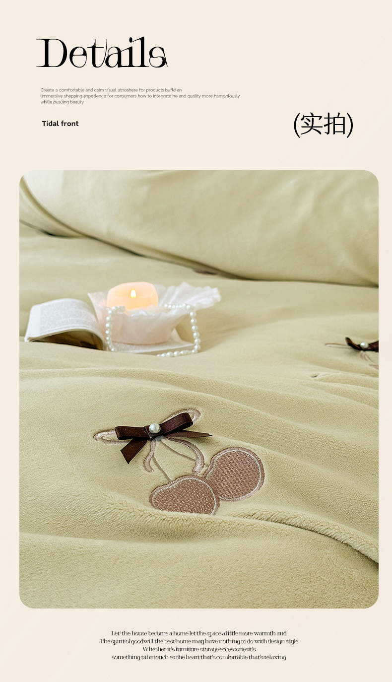 商品名称:泽西家纺+V17798841158发大图 2025新品秋冬加厚保暖220克9斤刺绣牛奶绒四件套-樱桃泡泡糖 樱桃泡泡糖-姜黄