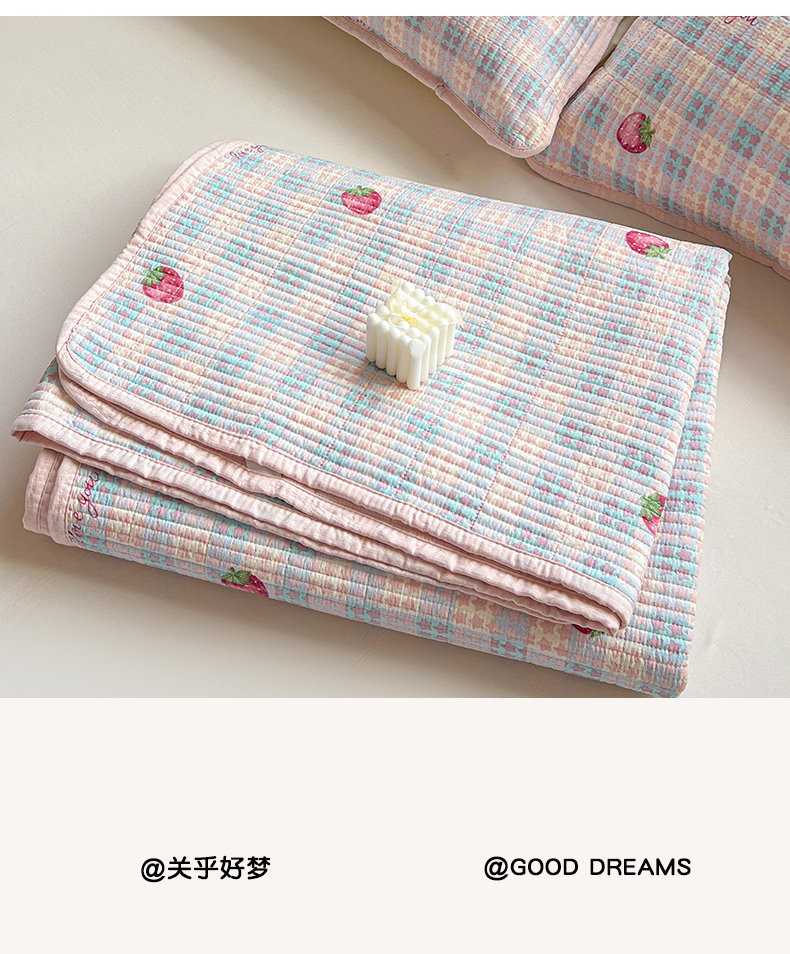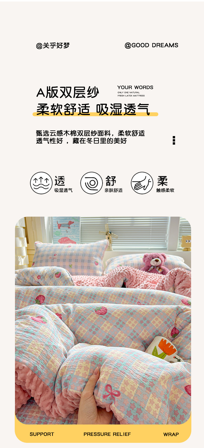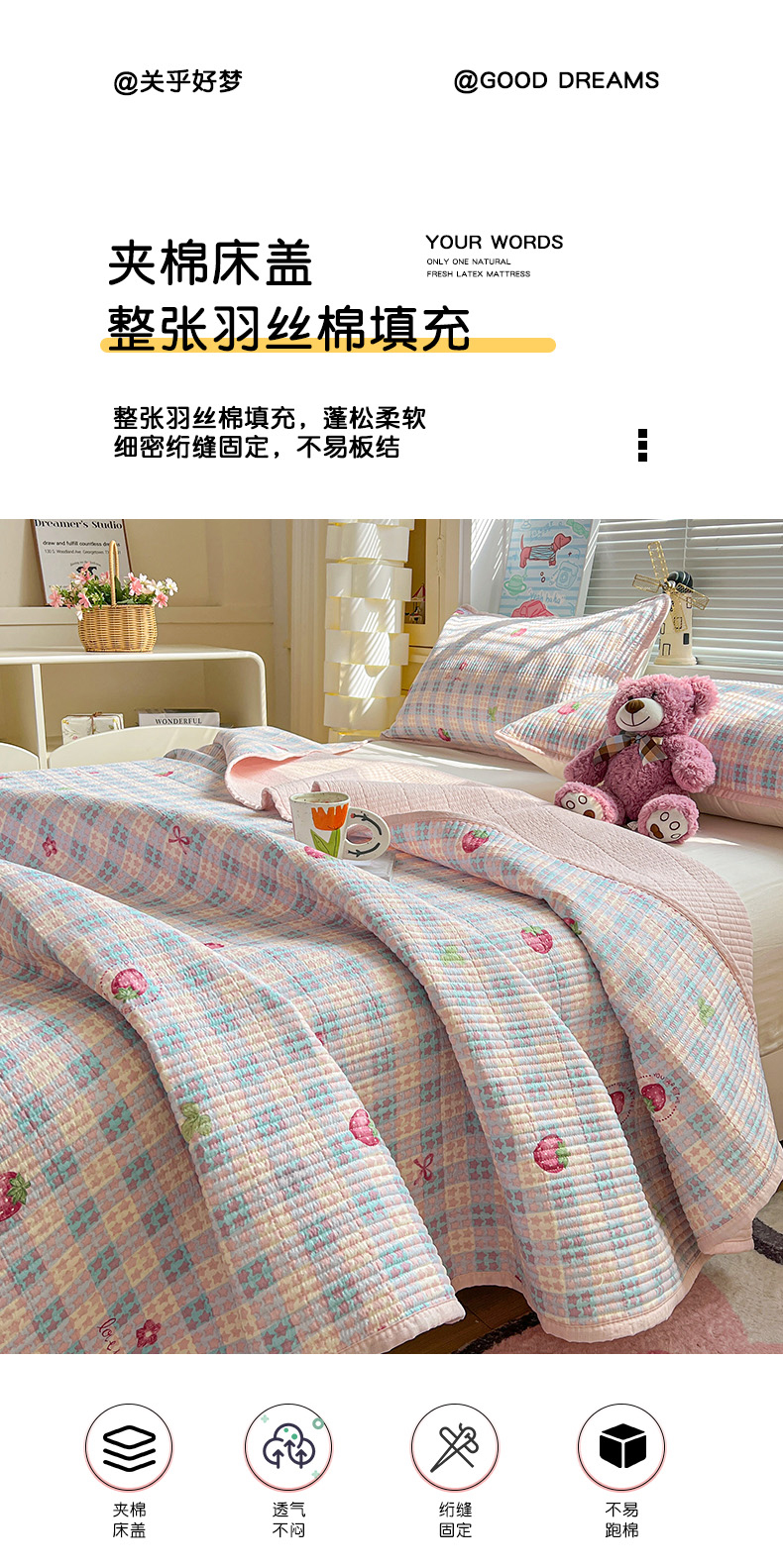 • 91家纺网 家纺一手货源 找家纺 优选 2025新款木棉双层纱ins少女心可爱加厚豆豆冬被四件套床盖三件套暖梦小红书推荐 格子草莓