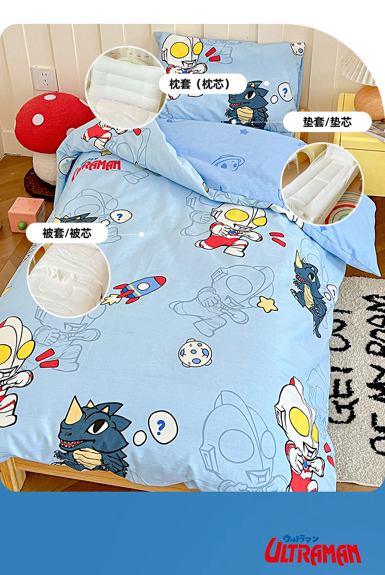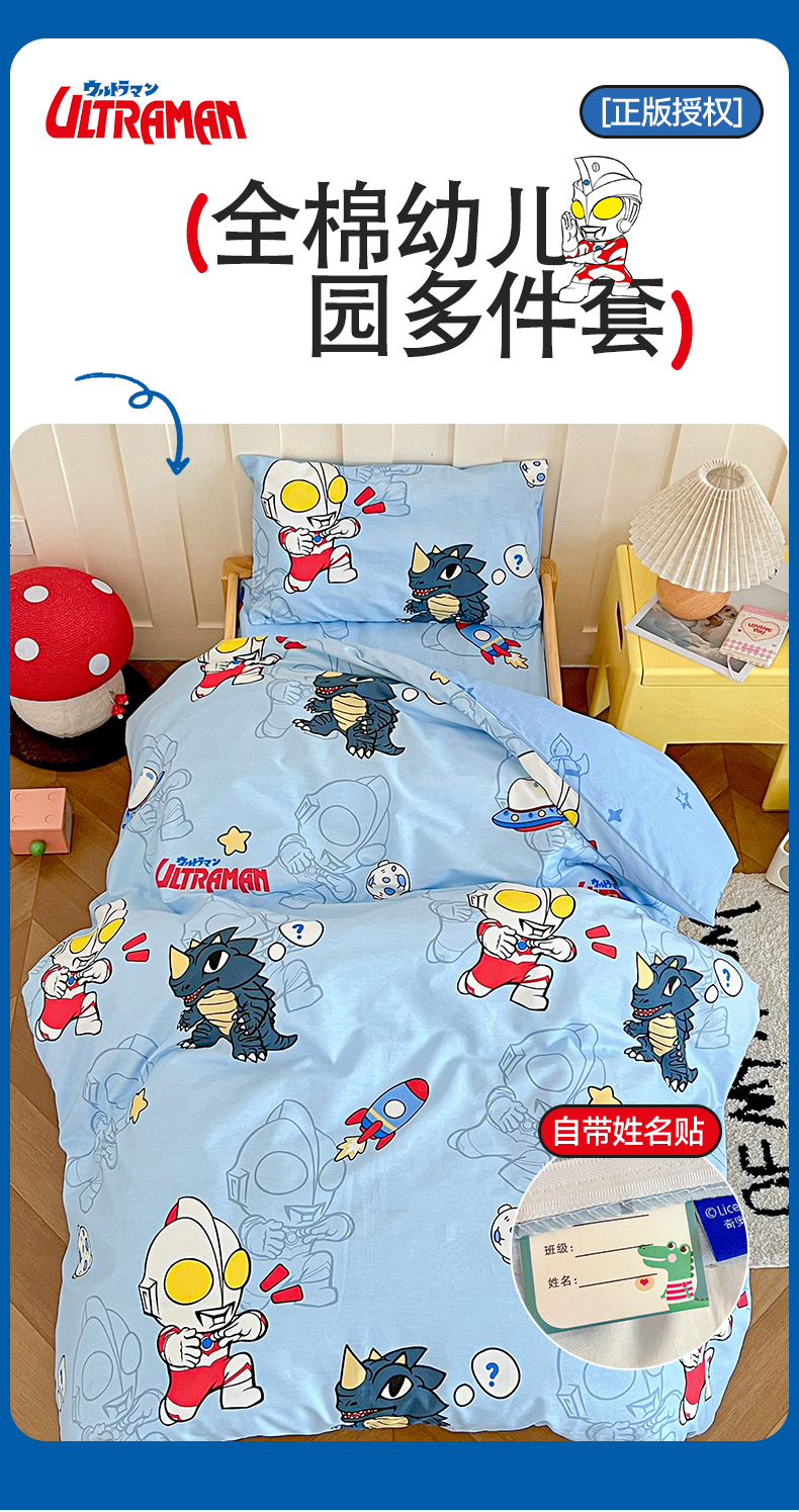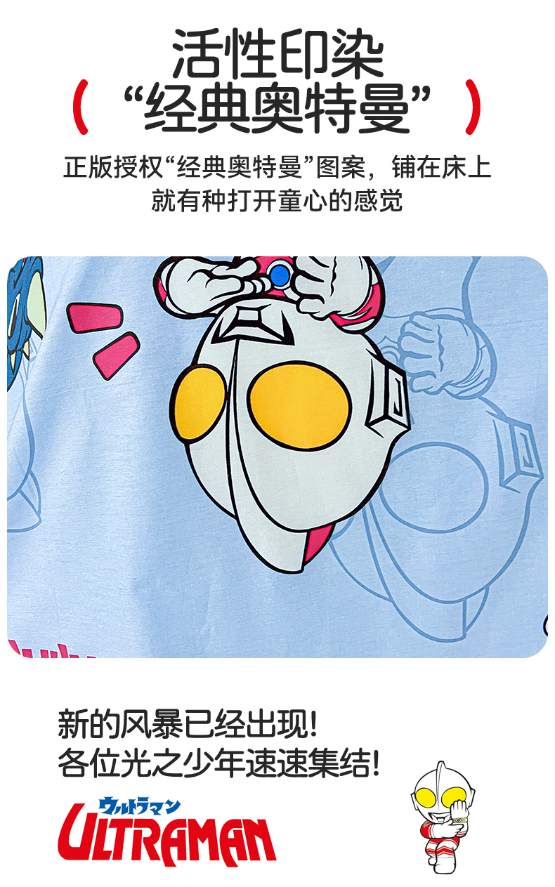 当前位置: 91家纺网 > 商品网购 > 床品套件 > 三件套 > 名兮家居 2025新款全棉小版经典奥特曼-三丽鸥幼儿园儿童套件【含防伪标】 奥特勇士