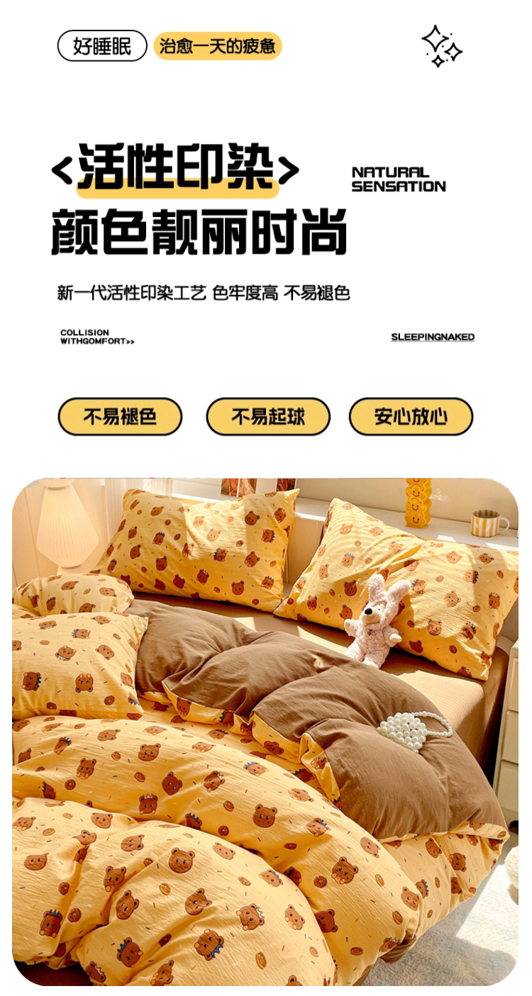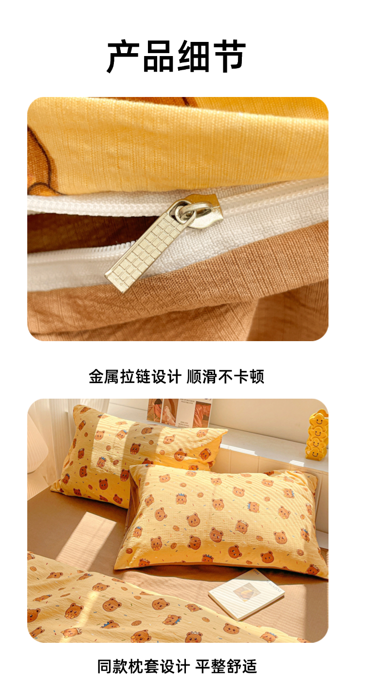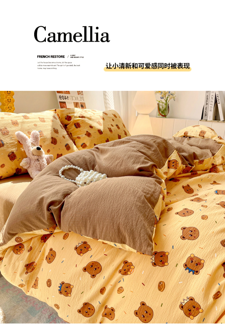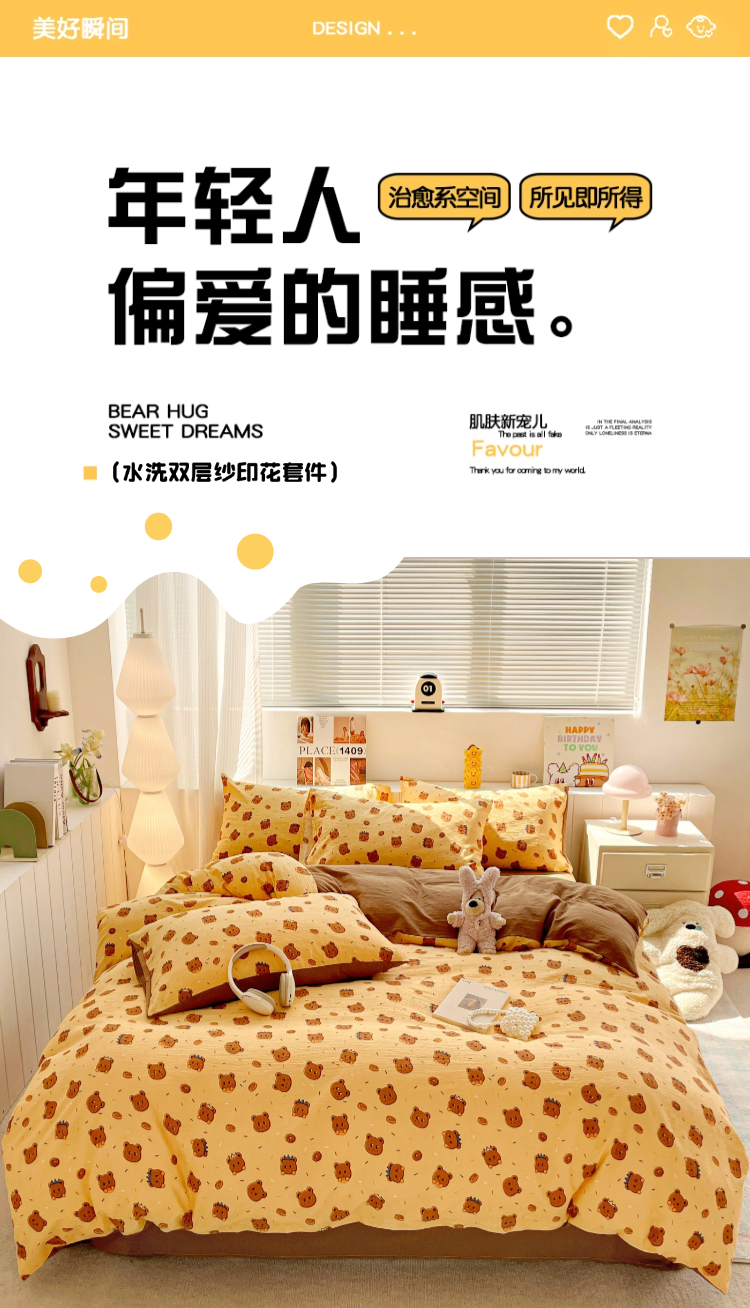 当前位置: 91家纺网 > 商品网购 > 床品套件 > 四件套 > 化纤普通四件套 > 维娜斯家纺 2025新款印花双层纱四件套亲肤柔软适合裸睡 小熊梦梦