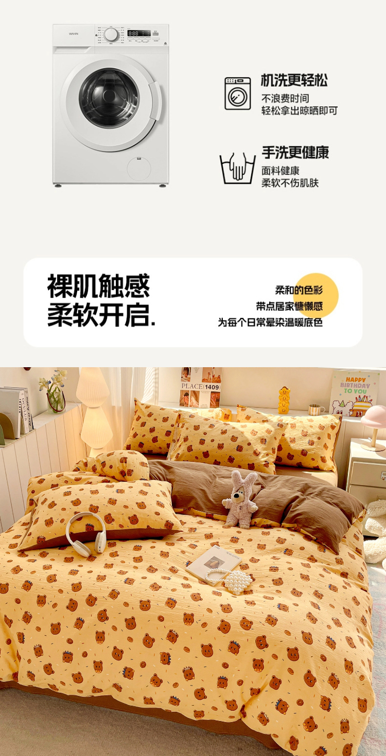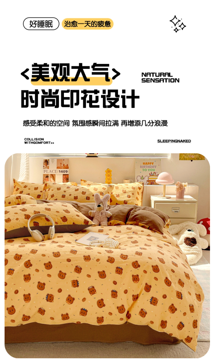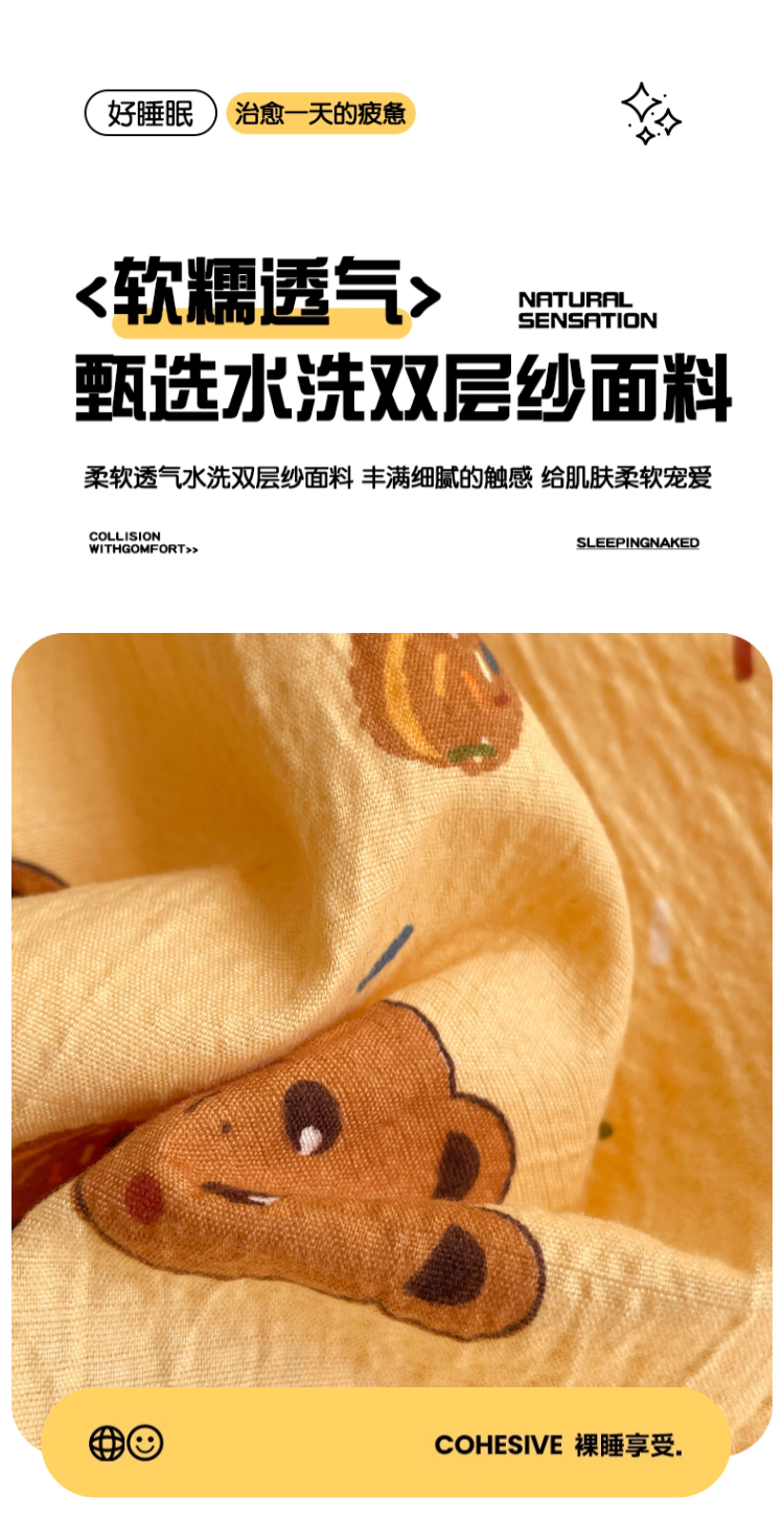 当前位置: 91家纺网 > 商品网购 > 床品套件 > 四件套 > 化纤普通四件套 > 维娜斯家纺 2025新款印花双层纱四件套亲肤柔软适合裸睡 小熊梦梦