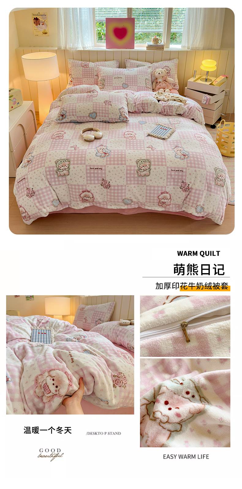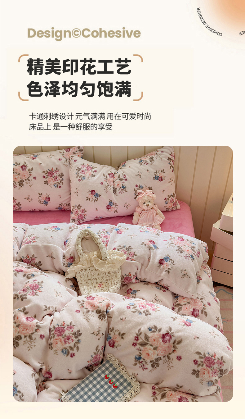 (总)丽美人家纺 2025新款小版印花牛奶绒四件套,拼布蝴蝶兔,山茶花语-粉,水墨花蝴蝶,甜品腊肠狗,甜心猫咪-蓝,英伦小狗,油画小萌物,春风沐歌,春日女孩,复古山茶,格子小狗,花边小兔,可爱小猫,玫瑰女孩,萌熊日记,奶萌小猫