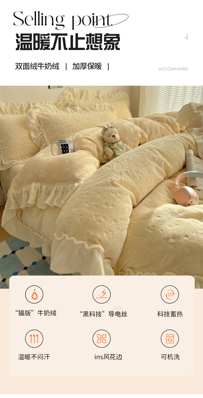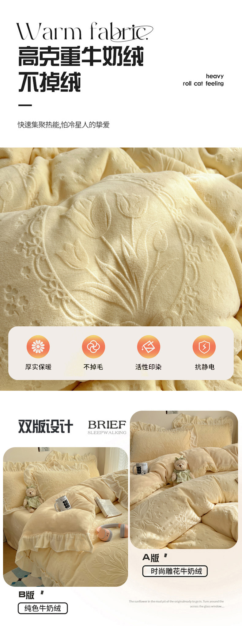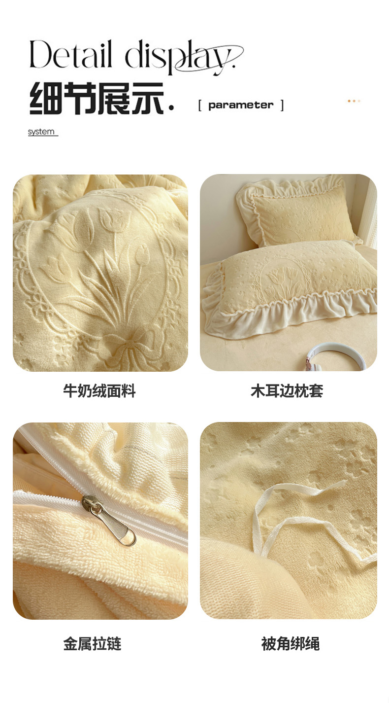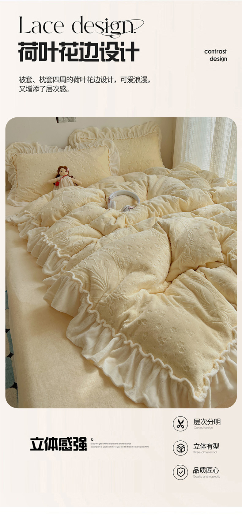 当前位置: 91家纺网 > 商品网购 > 床品套件 > 四件套 > 牛奶绒四件套 > 丽涵家纺 2025新款雕花牛奶绒公主风花边四件套郁香漫境 郁香漫境-奶油