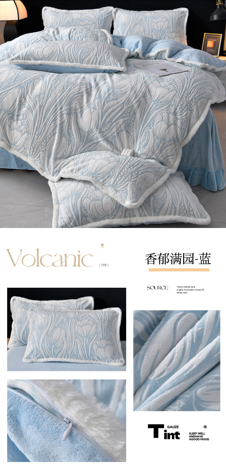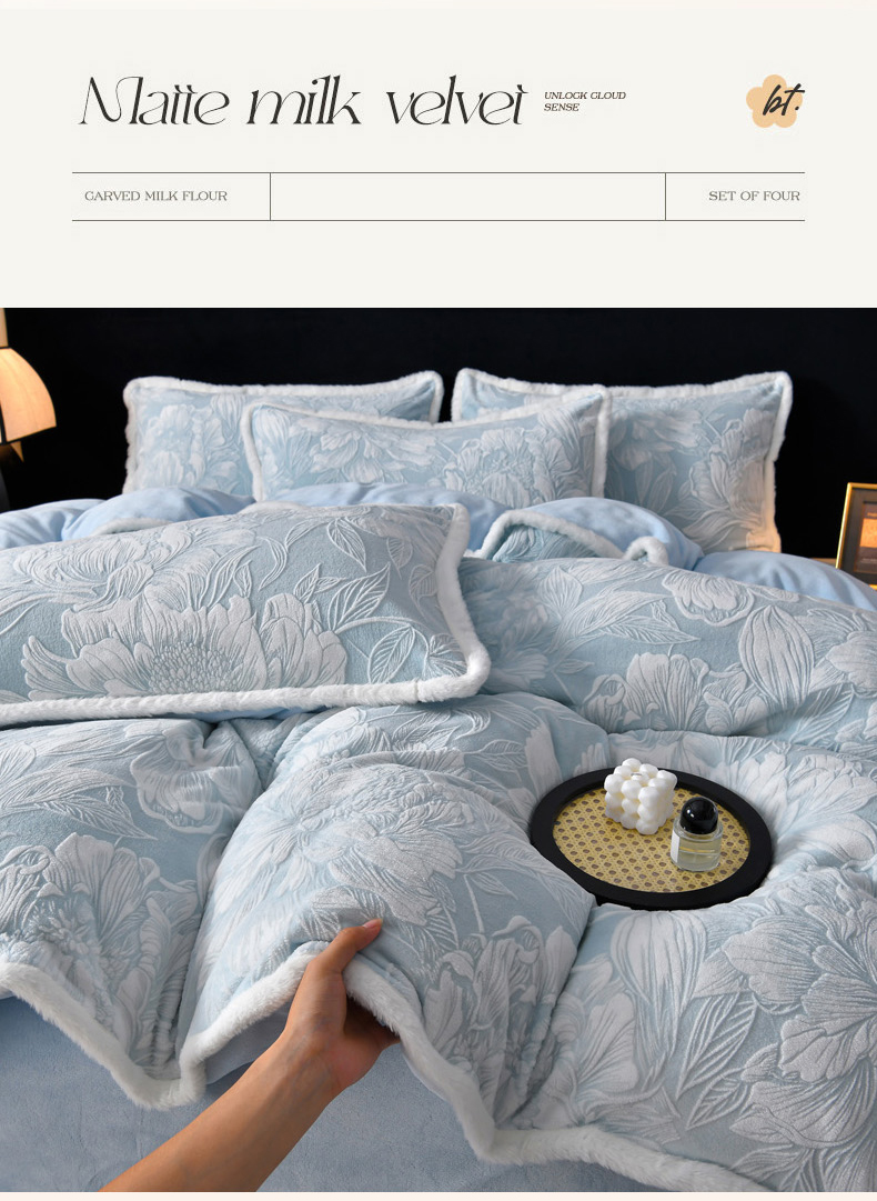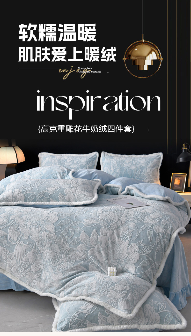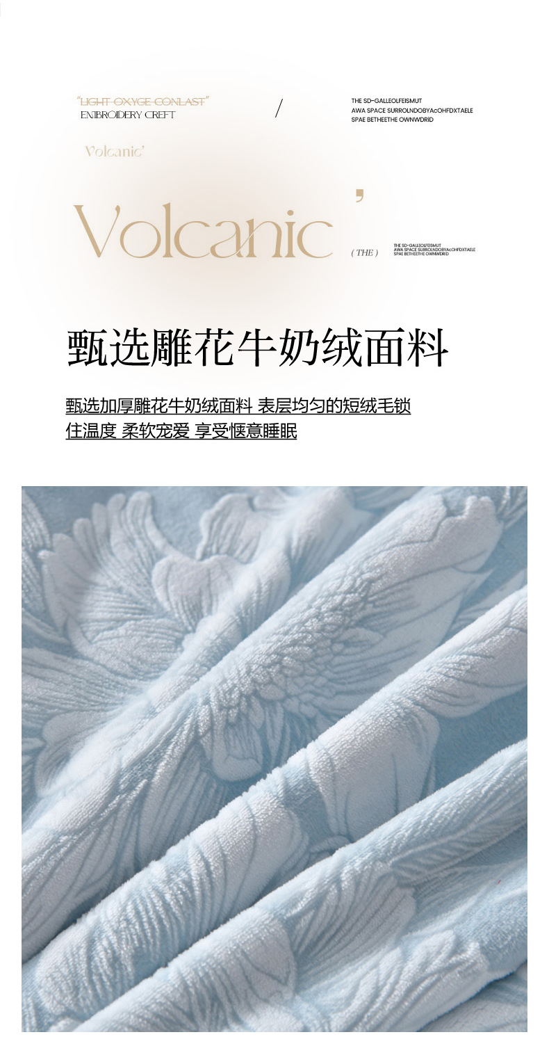 商品名称:(总)斯尔顿 2025新款高克重标准8.5斤雕花牛奶绒四件套兔毛绒包边法莱绒珊瑚绒