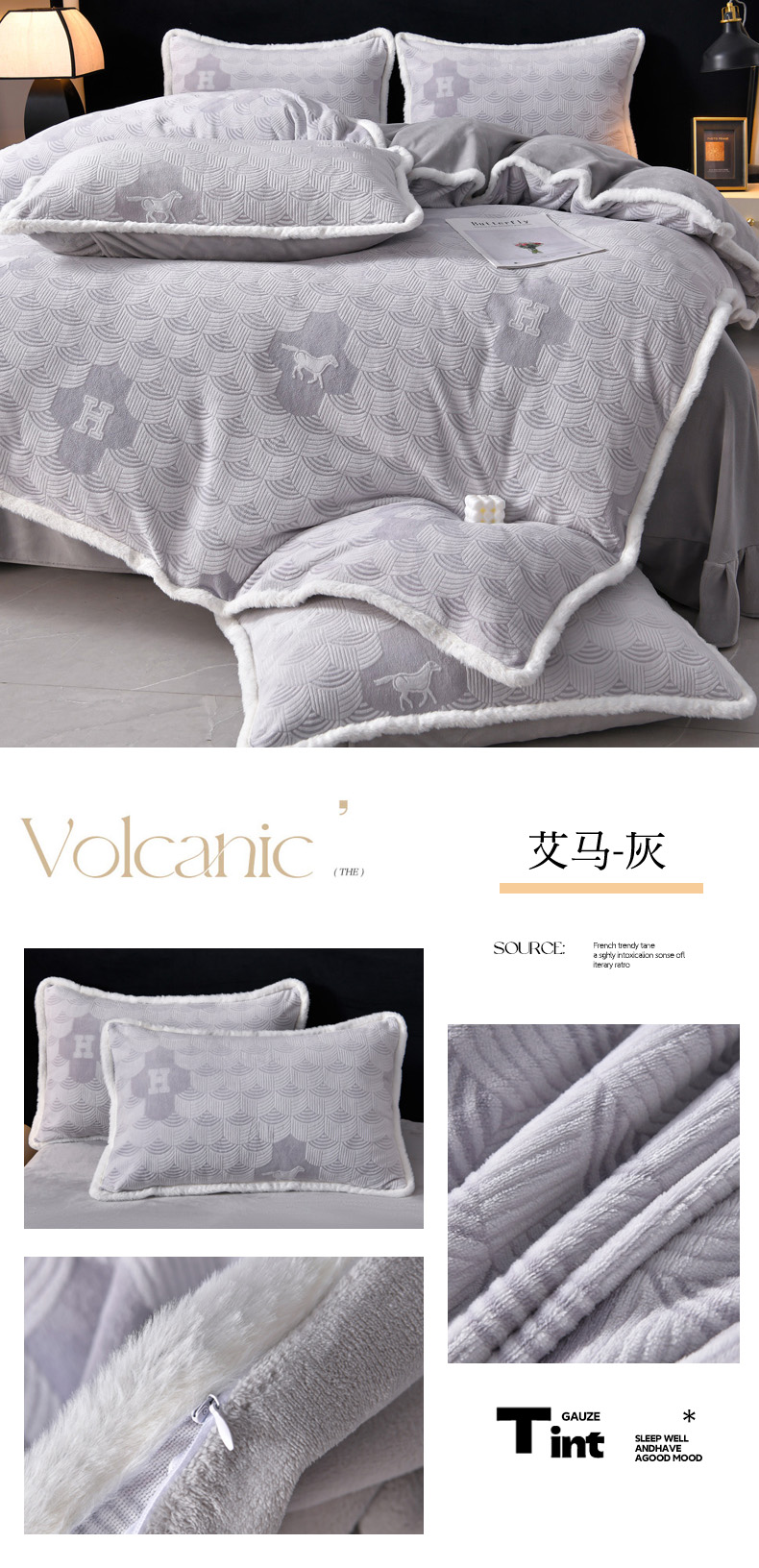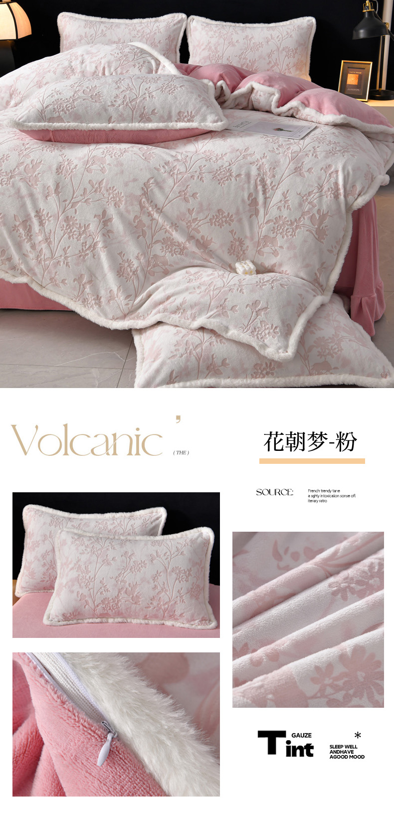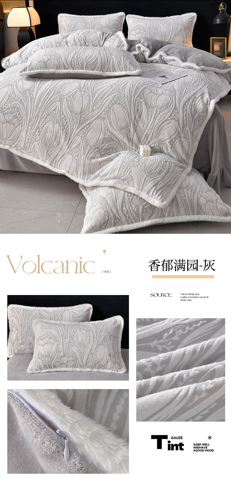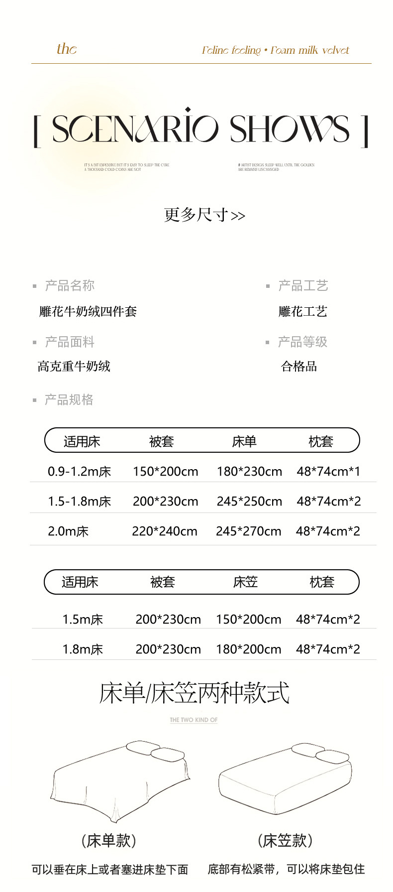 商品名称:(总)斯尔顿 2025新款高克重标准8.5斤雕花牛奶绒四件套兔毛绒包边法莱绒珊瑚绒