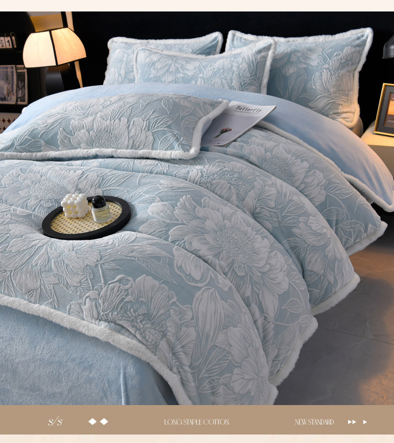 (总)斯尔顿 2025新款高克重标准8.5斤雕花牛奶绒四件套兔毛绒包边法莱绒珊瑚绒
