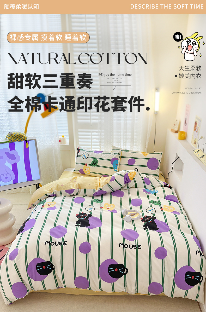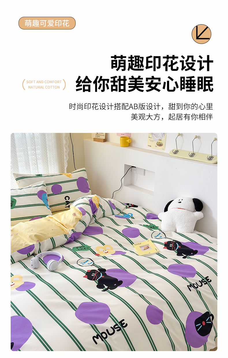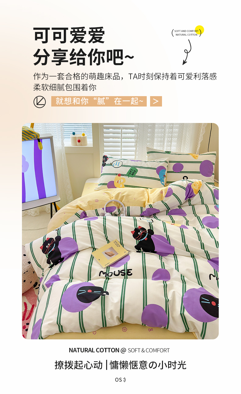 当前位置: 91家纺网 > 商品网购 > 床品套件 > 四件套 > 全棉普通四件套 > 小叮当家纺仓储工厂店 2025新款13372碎花系列全棉纯棉印花四件套 猫和老鼠