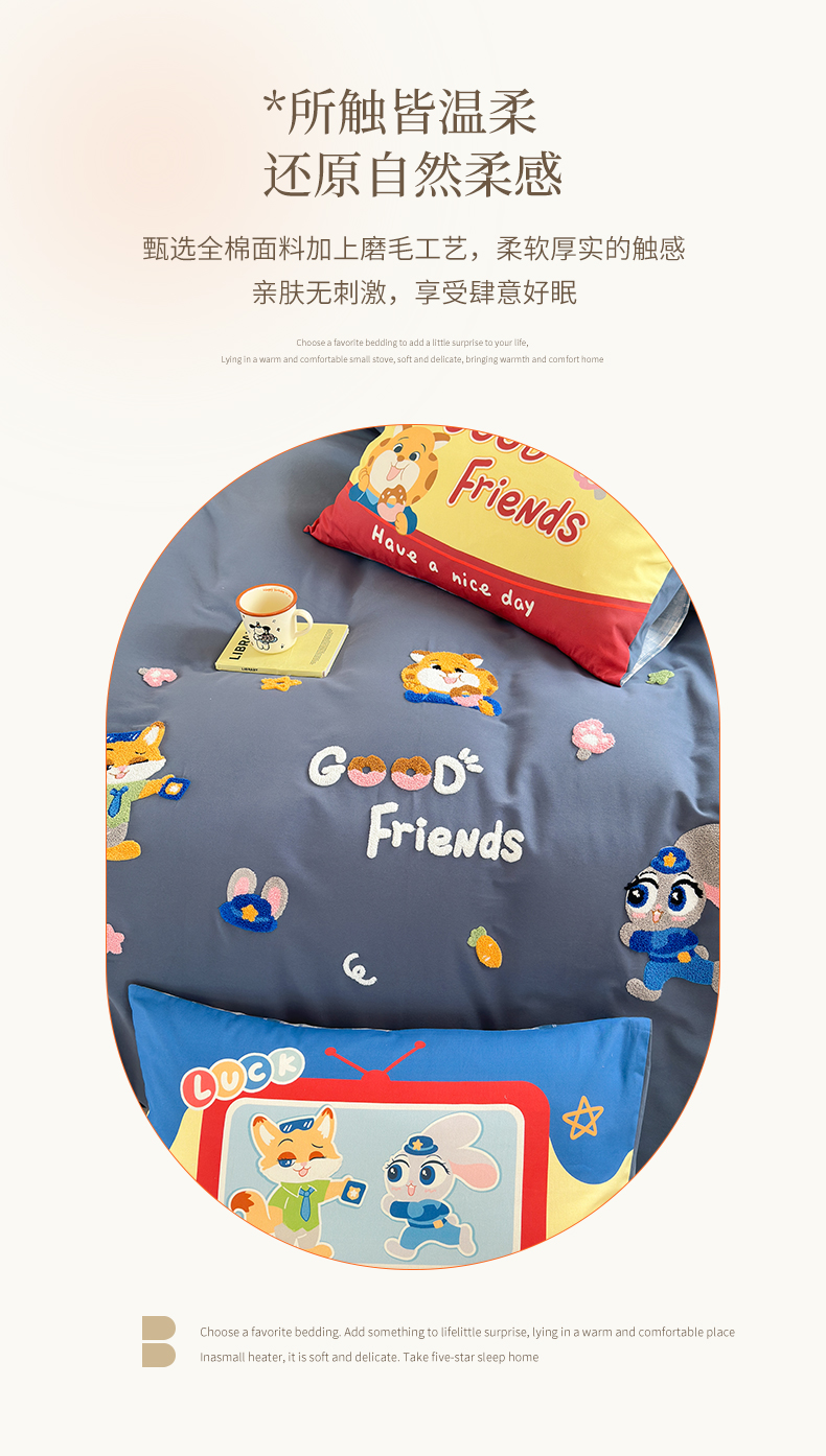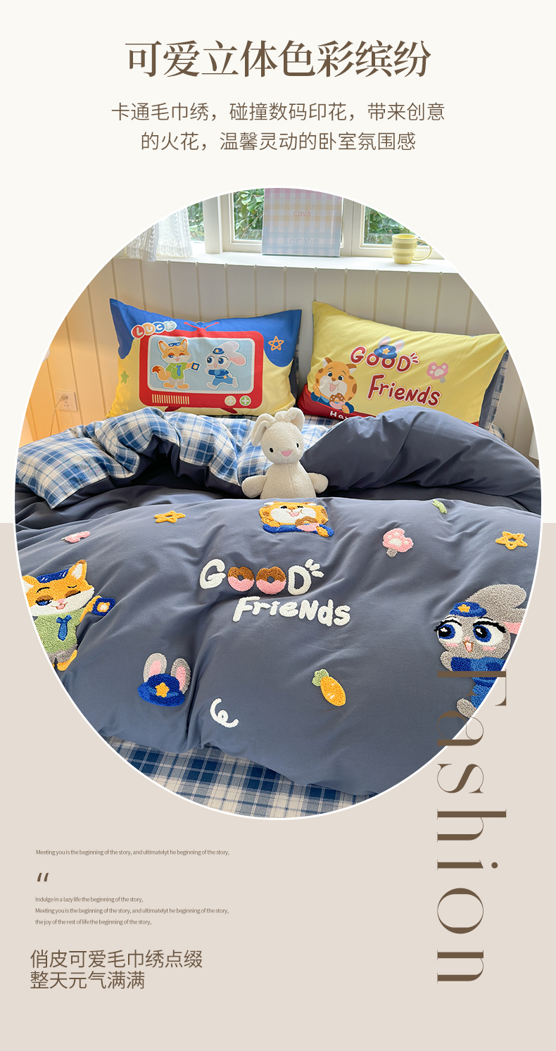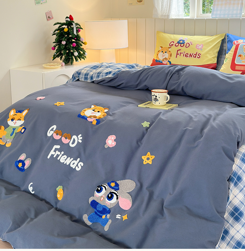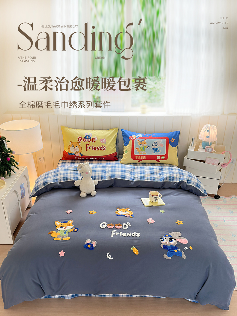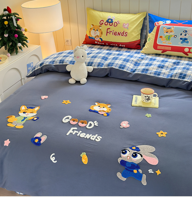当前位置: 91家纺网 > 商品网购 > 床品套件 > 四件套 > 全棉普通四件套 > 小叮当家纺仓储工厂店 2025新款数码印花全棉纯棉磨毛毛巾绣四件套 动物乌托邦