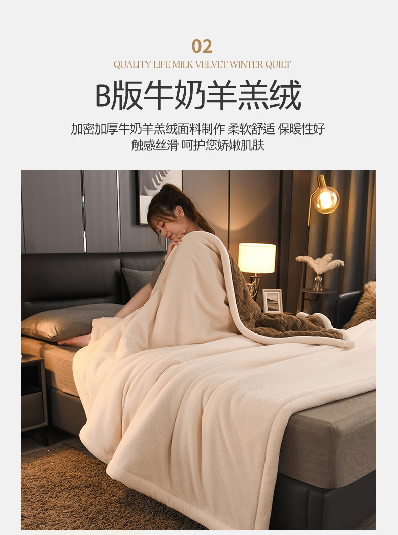 商品名称:(总)印季家纺 2025秋冬新款三层夹棉加厚-塔肤绒毛毯毯子多功能盖毯
