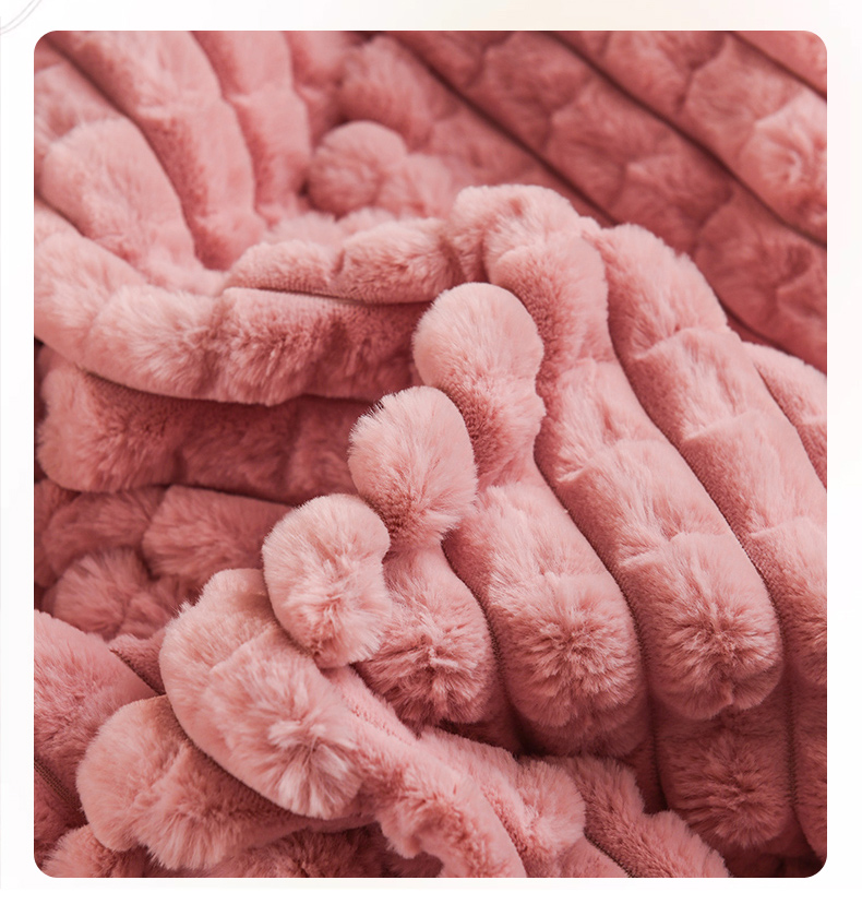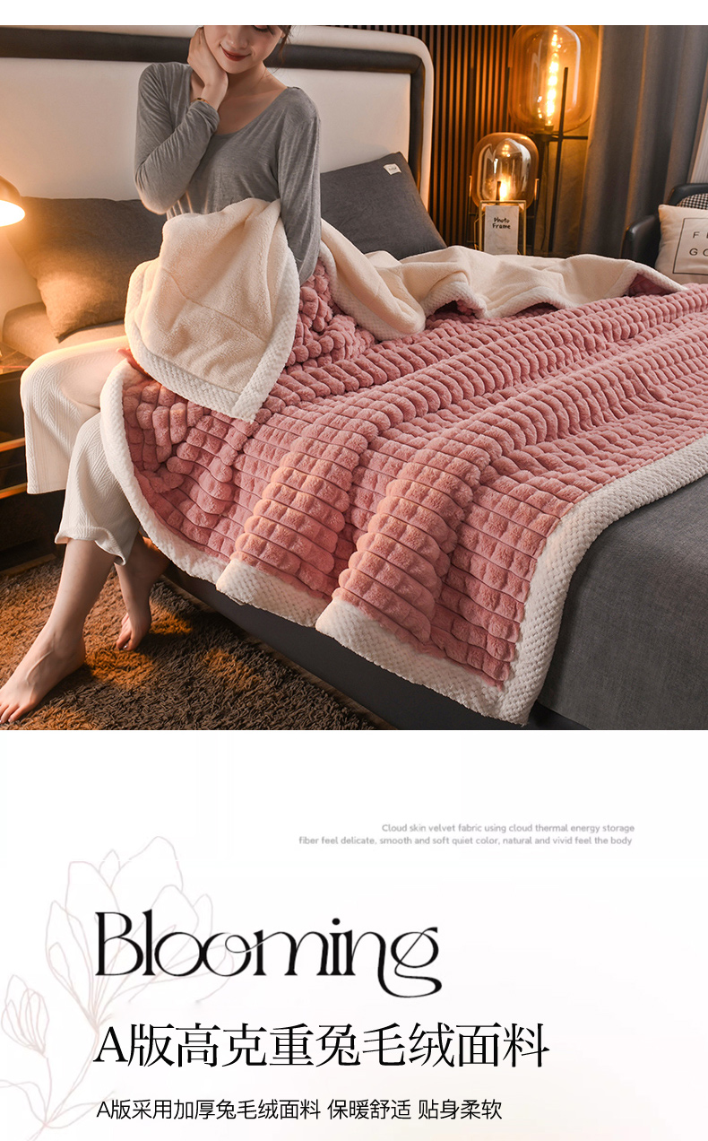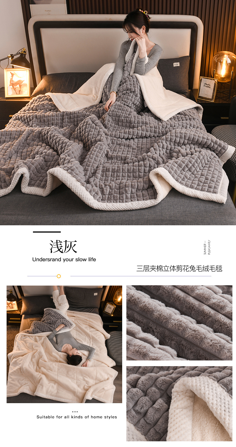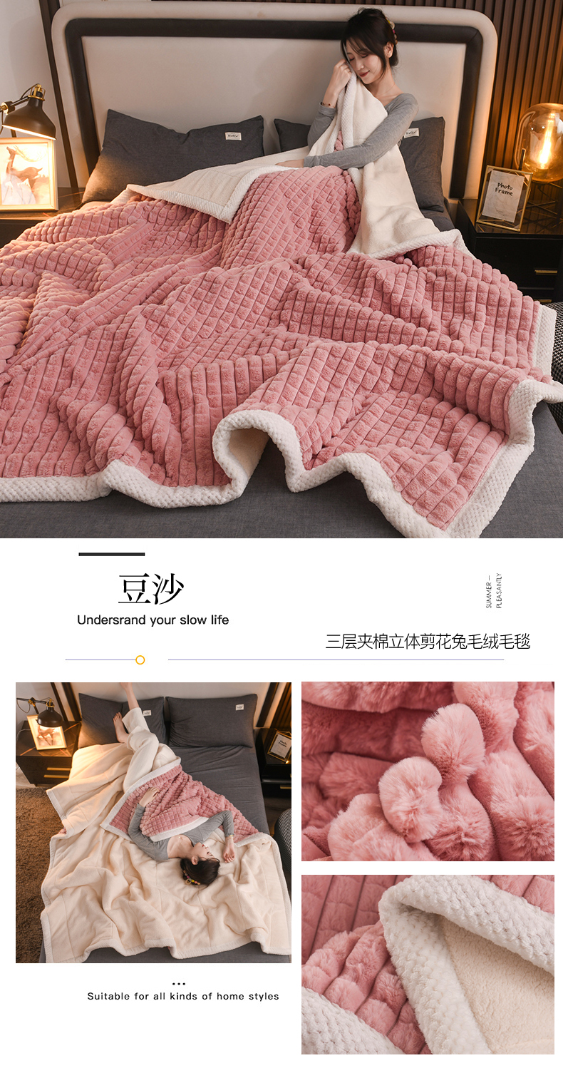 印季家纺 2025新款三层夹棉立体剪花兔毛绒毛毯毯子多功能盖毯-暗场景 豆沙