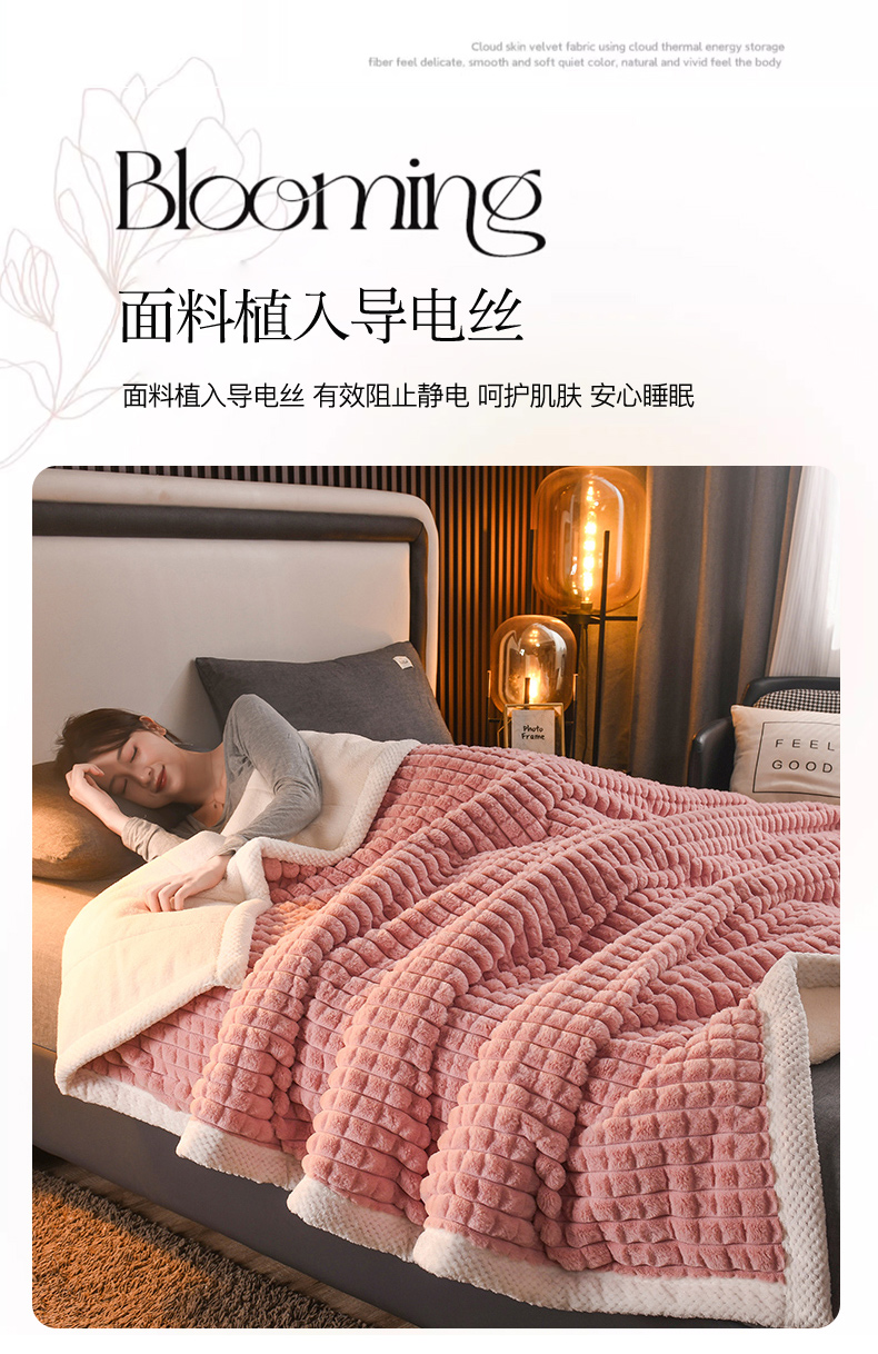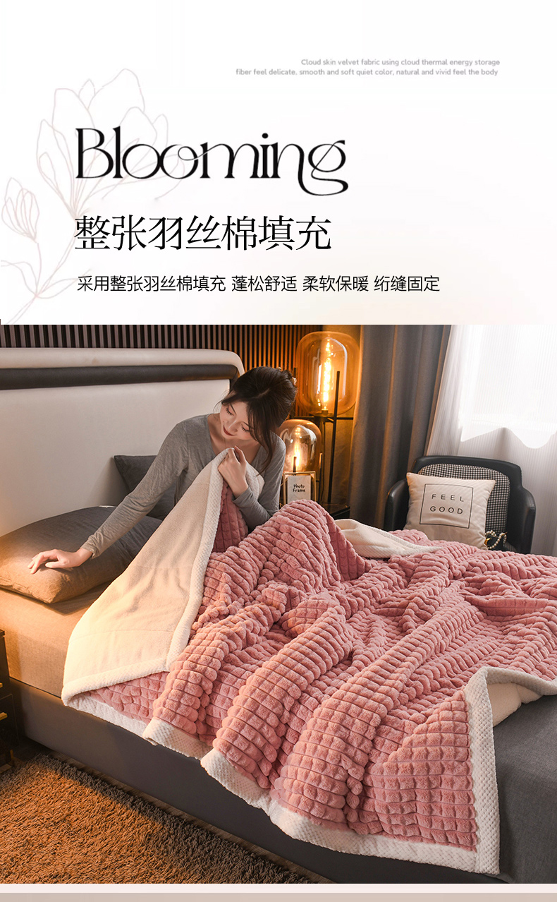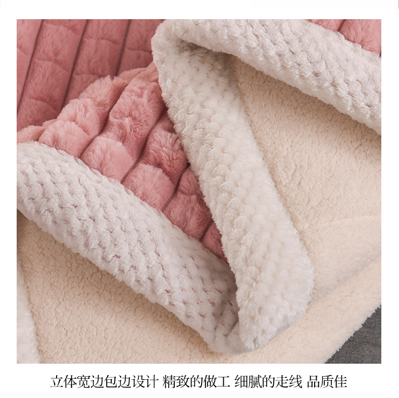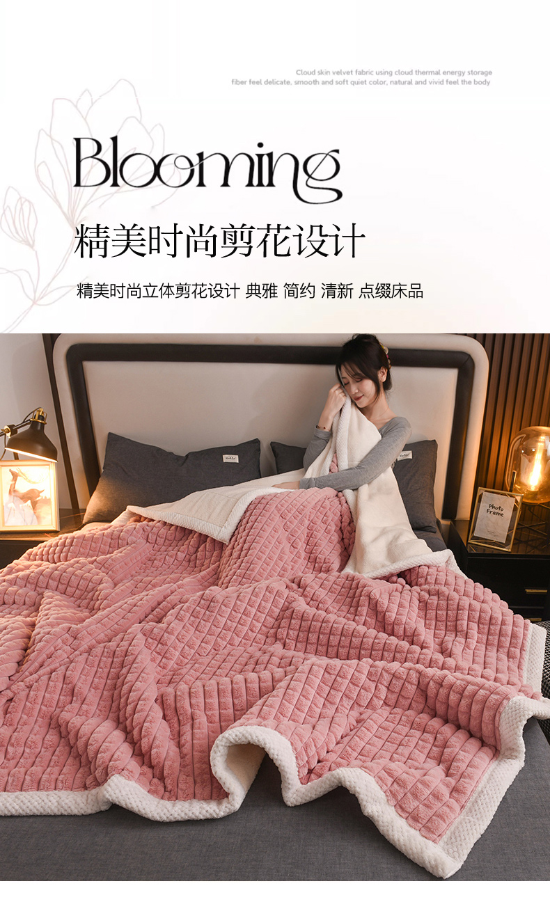 印季家纺 2025新款三层夹棉立体剪花兔毛绒毛毯毯子多功能盖毯-暗场景 豆沙