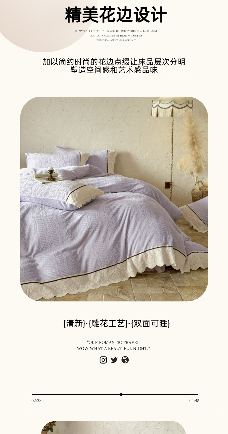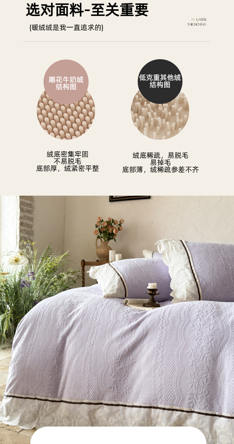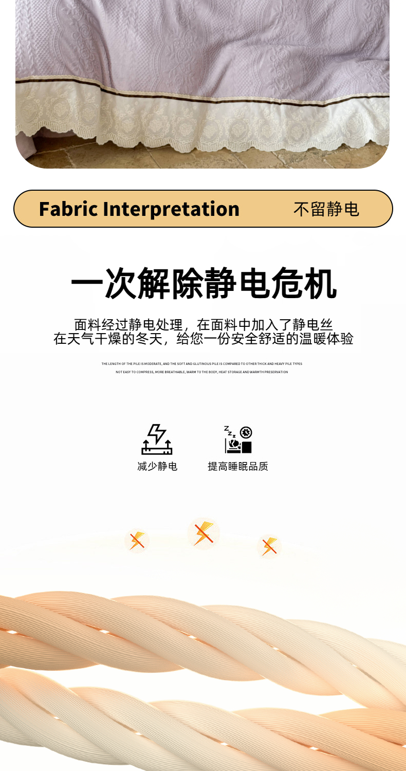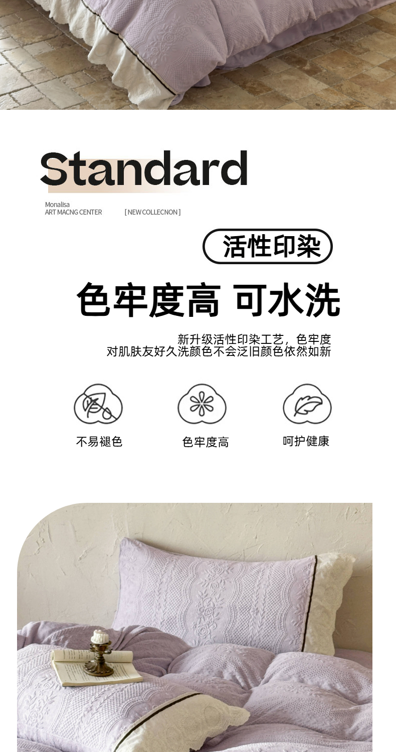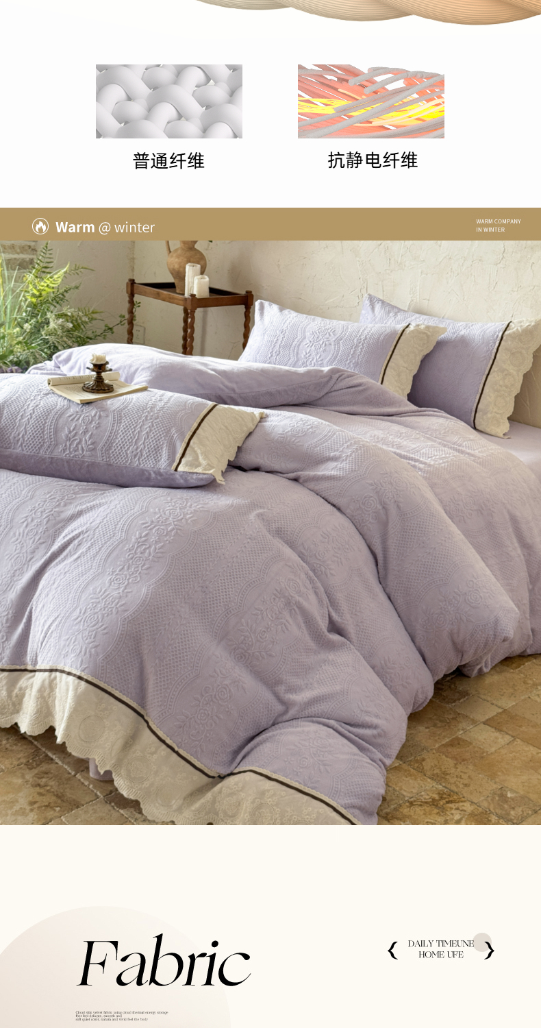商品名称:纯优家纺 2025新款秋冬轻法式花边款雕花牛奶绒四件套-绮梦 绮梦-芋泥紫