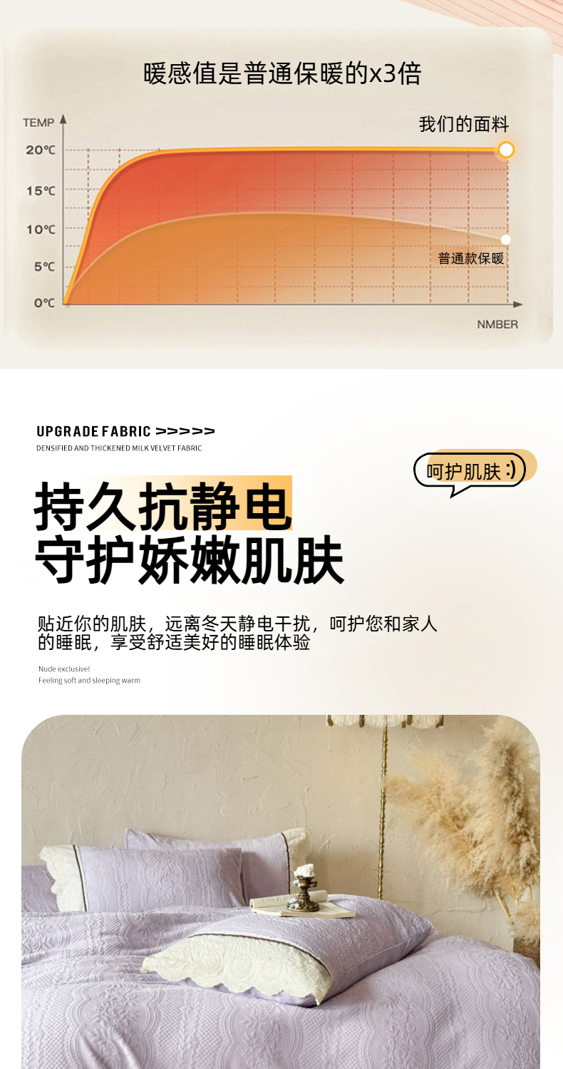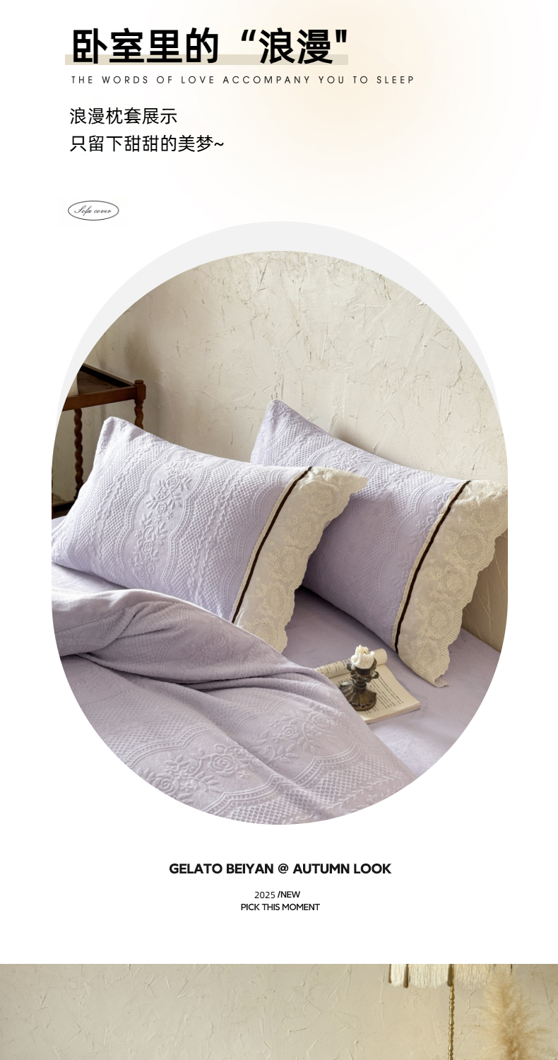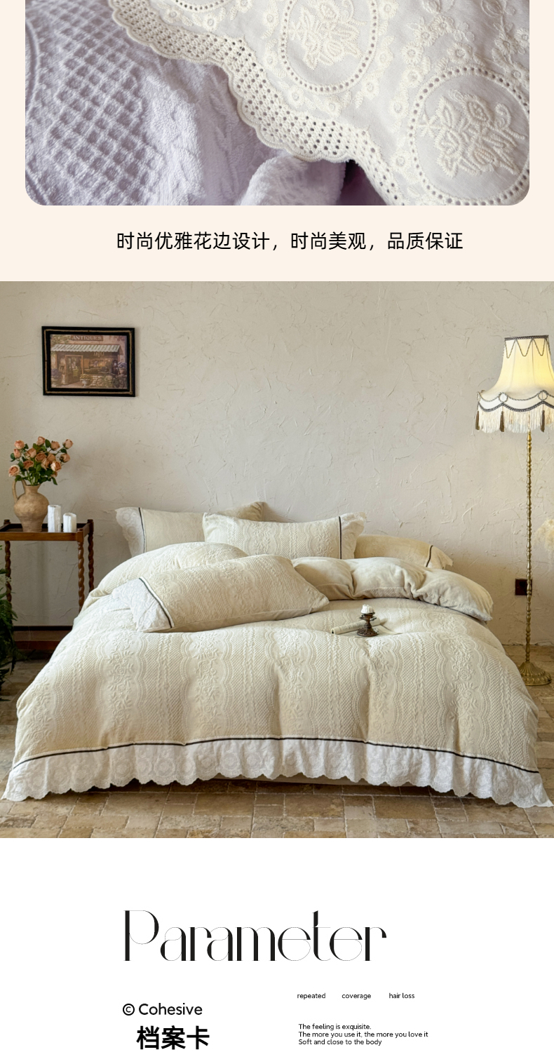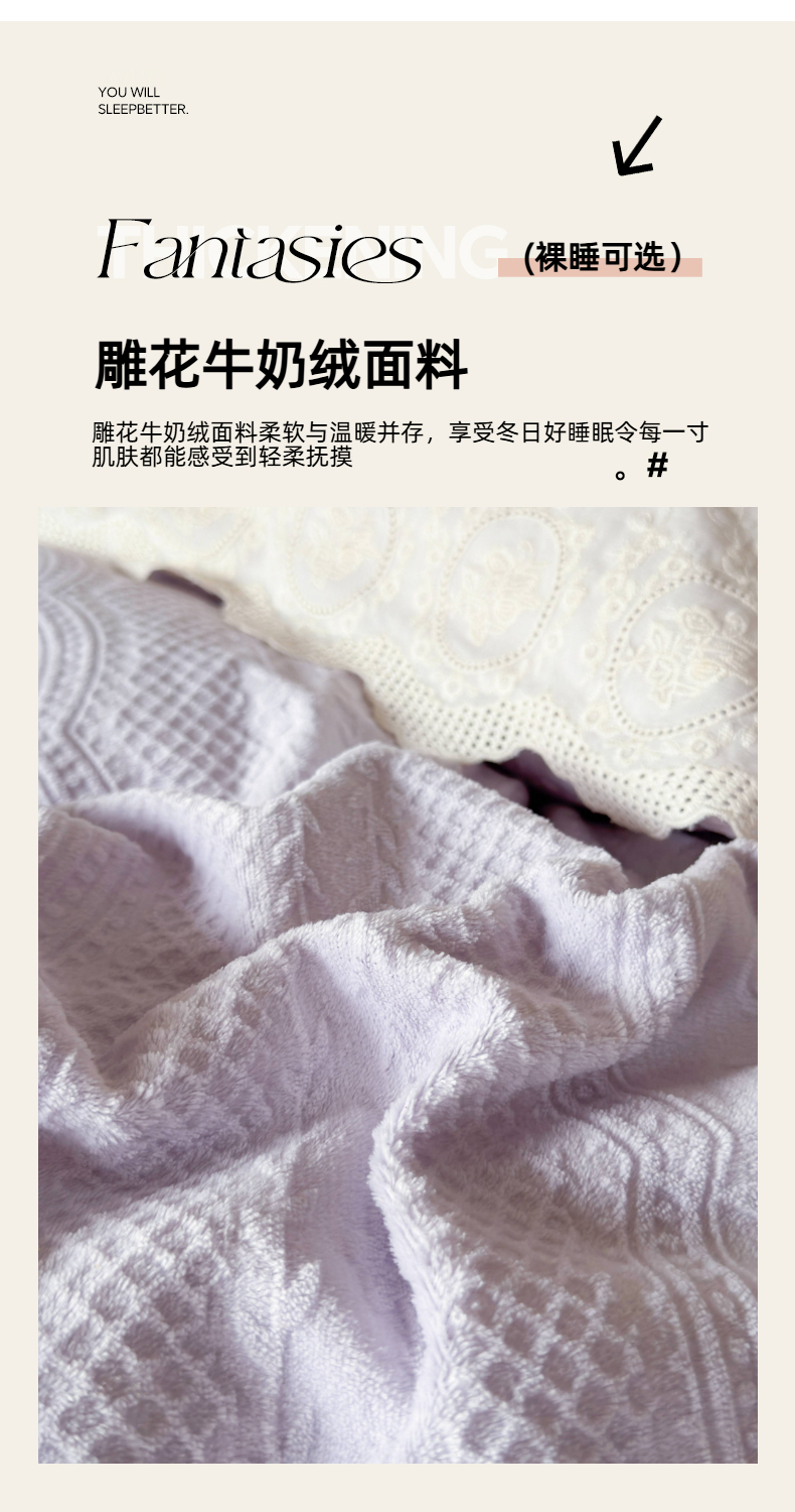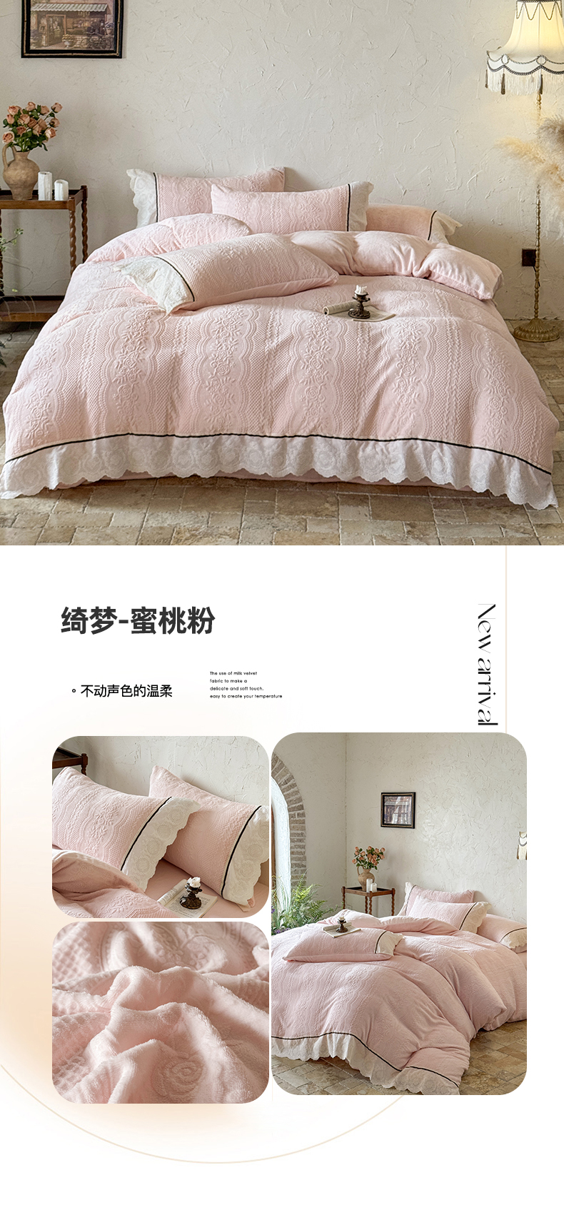 (总)纯优家纺 2025新款秋冬轻法式花边款雕花牛奶绒四件套-绮梦,绮梦-蜜桃粉,绮梦-米黄,绮梦-芋泥紫