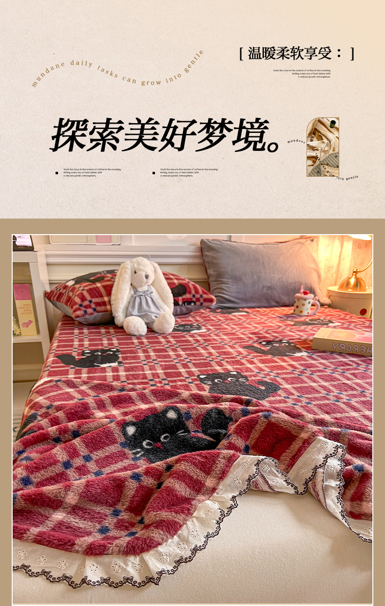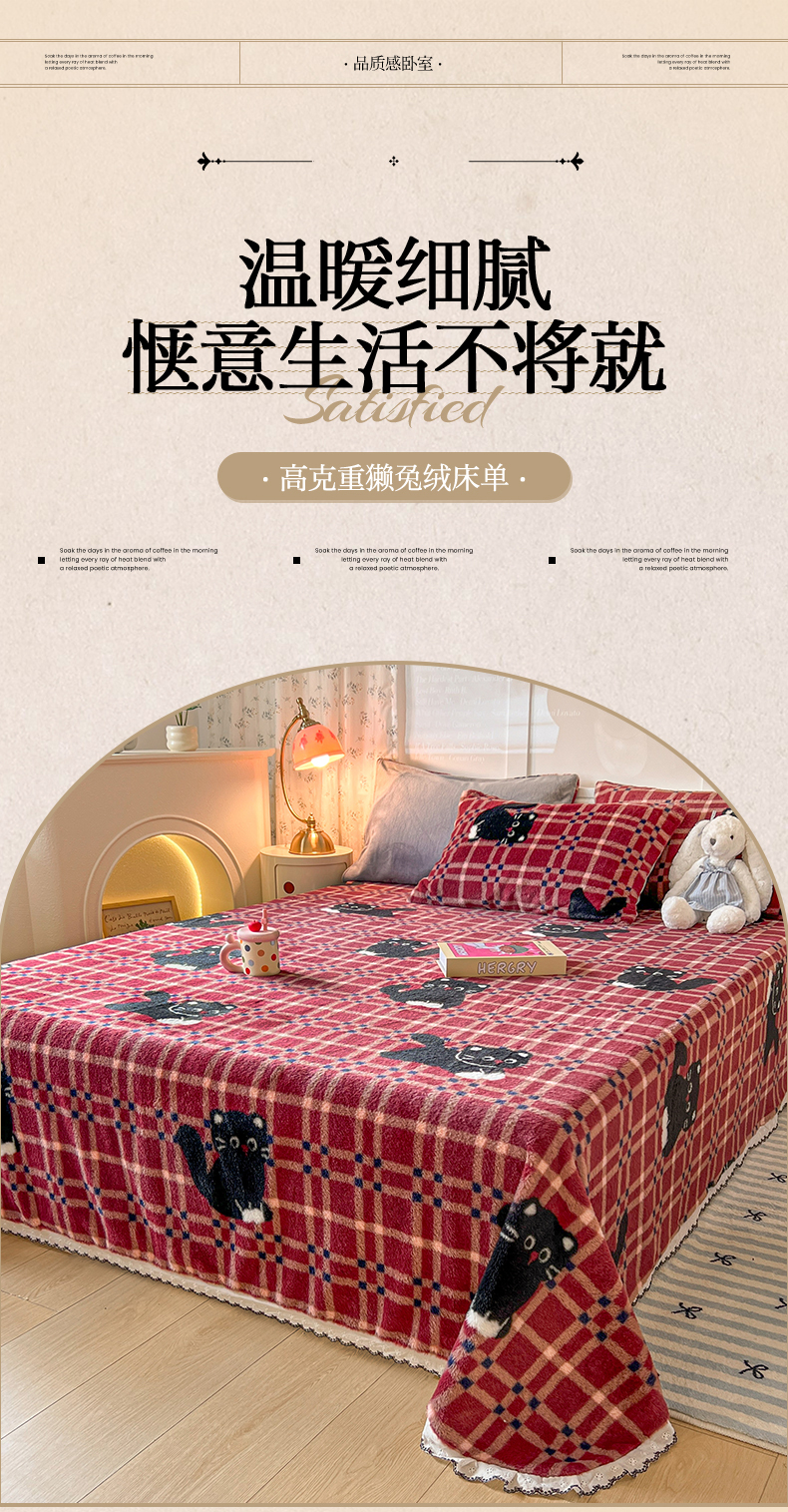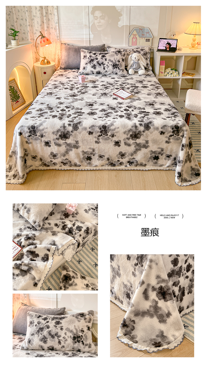 • 91家纺网 家纺一手货源 找家纺 妖妖家纺 2025新款高克重兔毛花边印花单床单 床单单件 淘气猫
