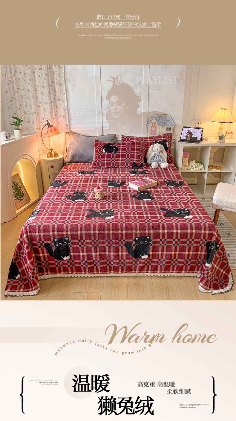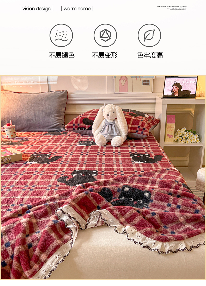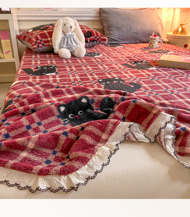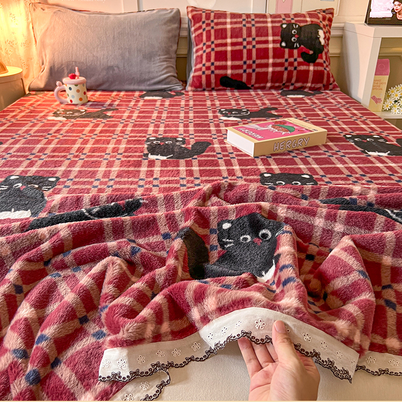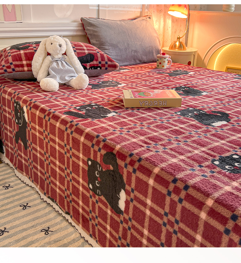 妖妖家纺 2025新款高克重兔毛花边印花单床单 床单单件 淘气猫