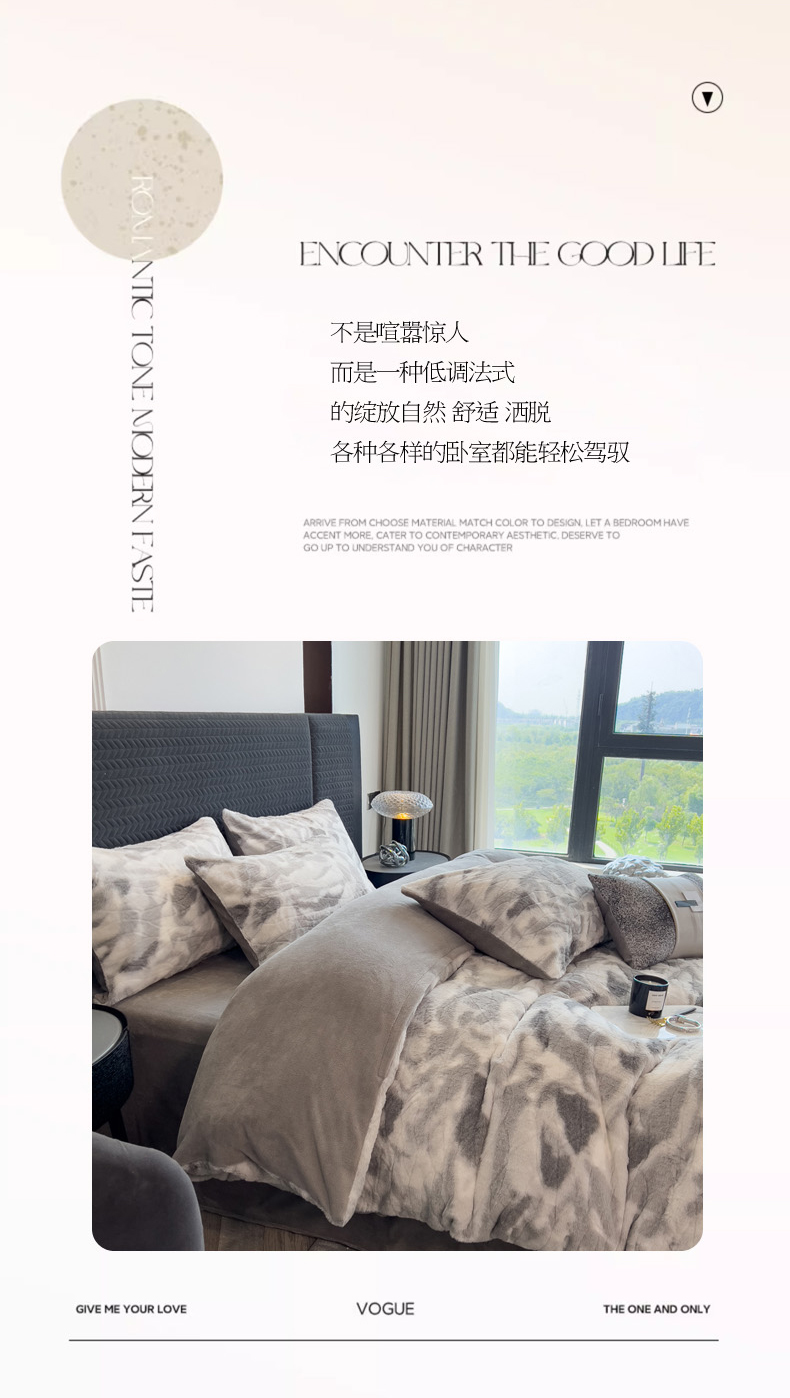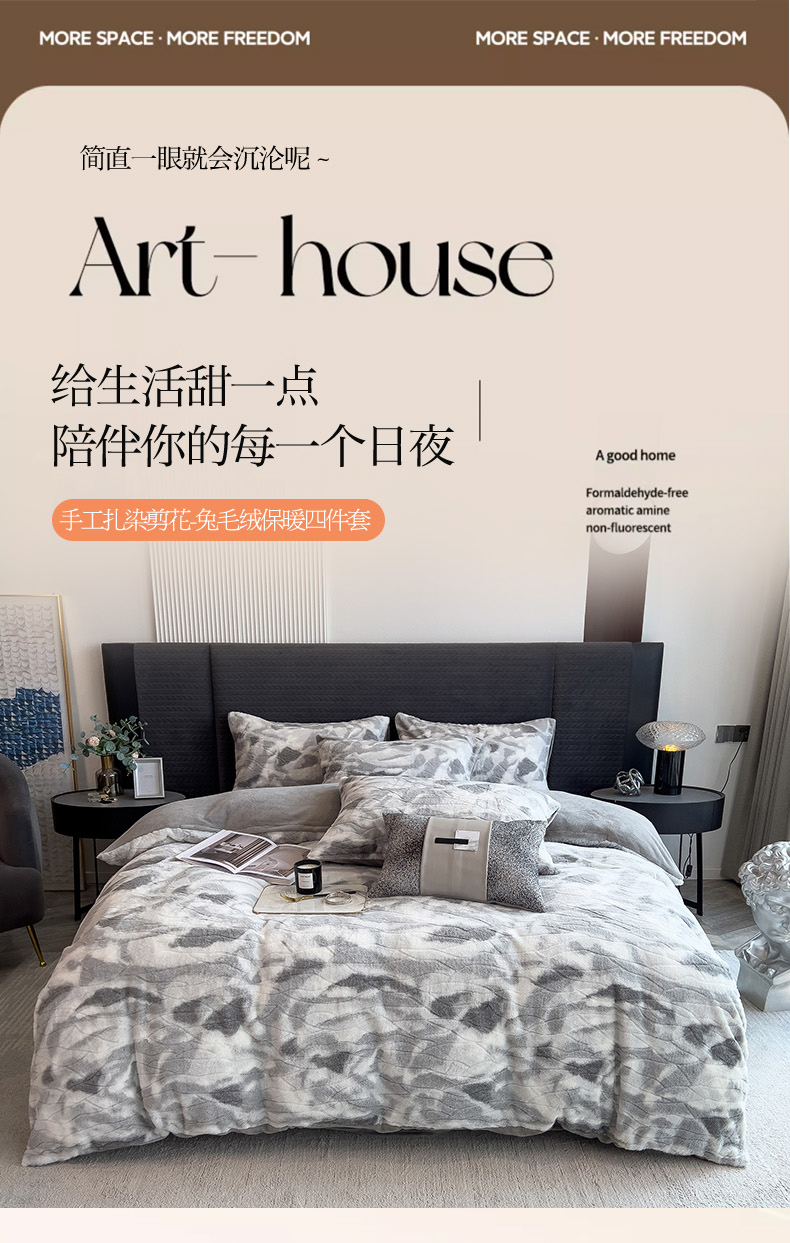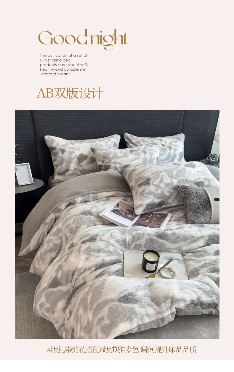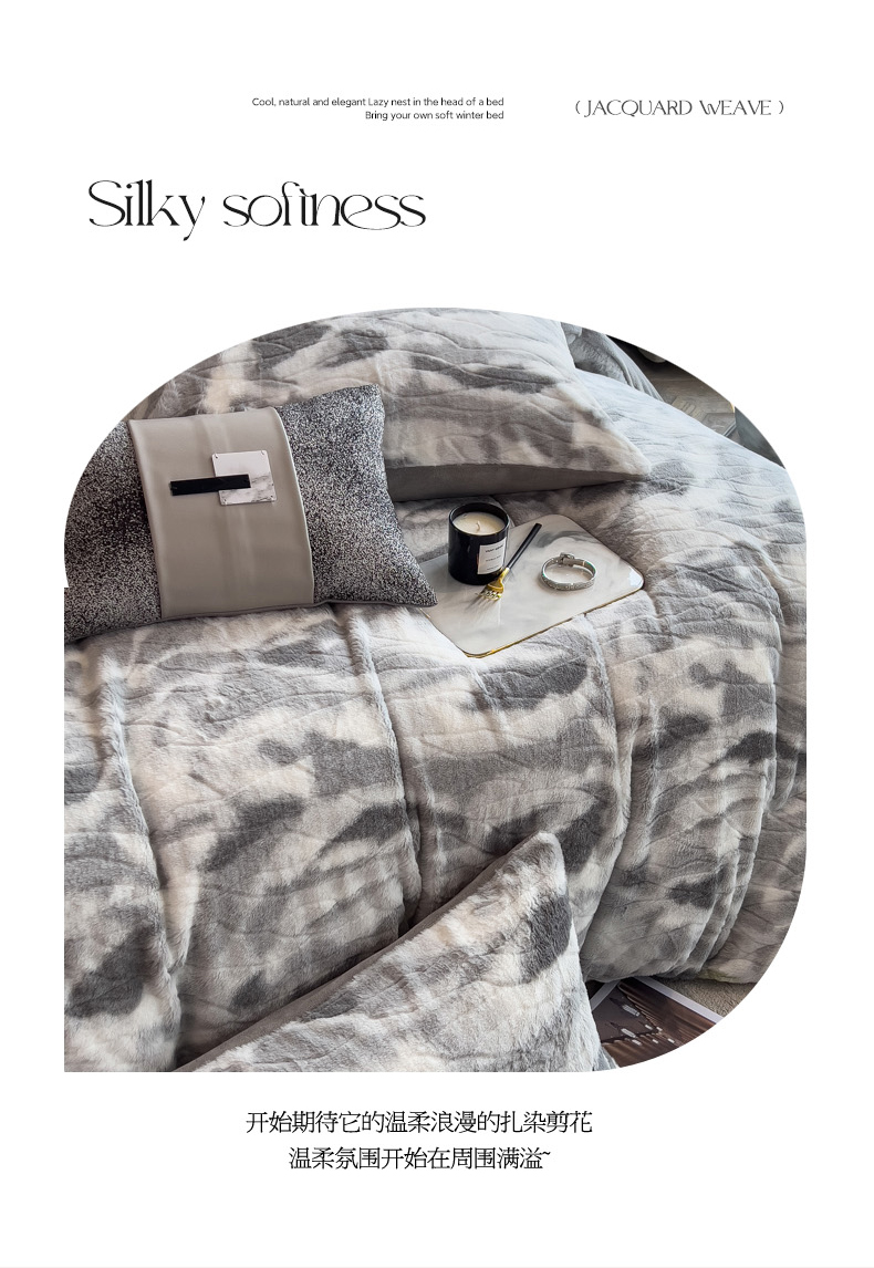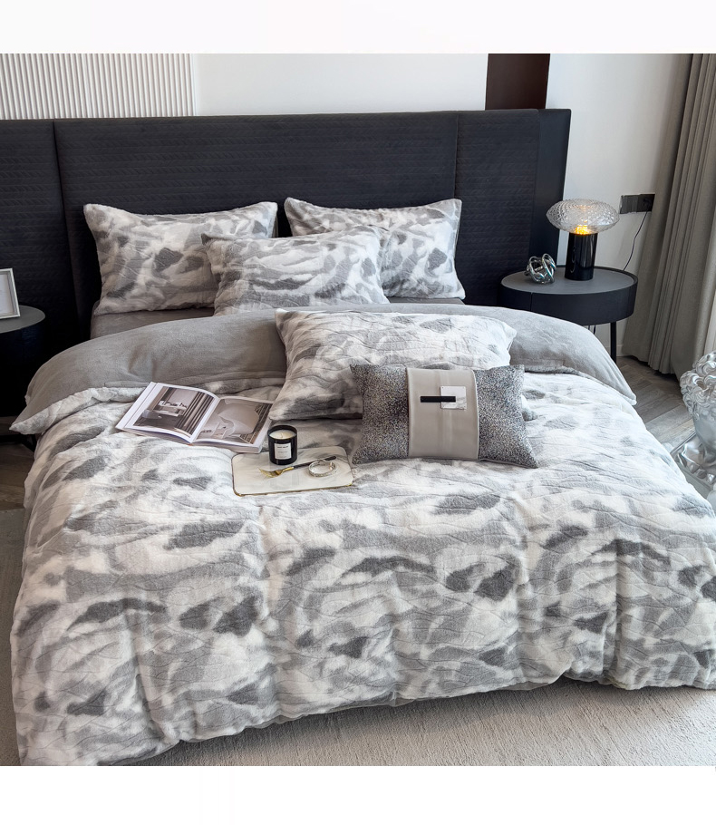 当前位置: 91家纺网 > 商品网购 > 床品套件 > 四件套 > 兔毛绒四件套 > 印季家纺 2025新款手工扎染剪花兔毛绒四件套 剪花-灰色