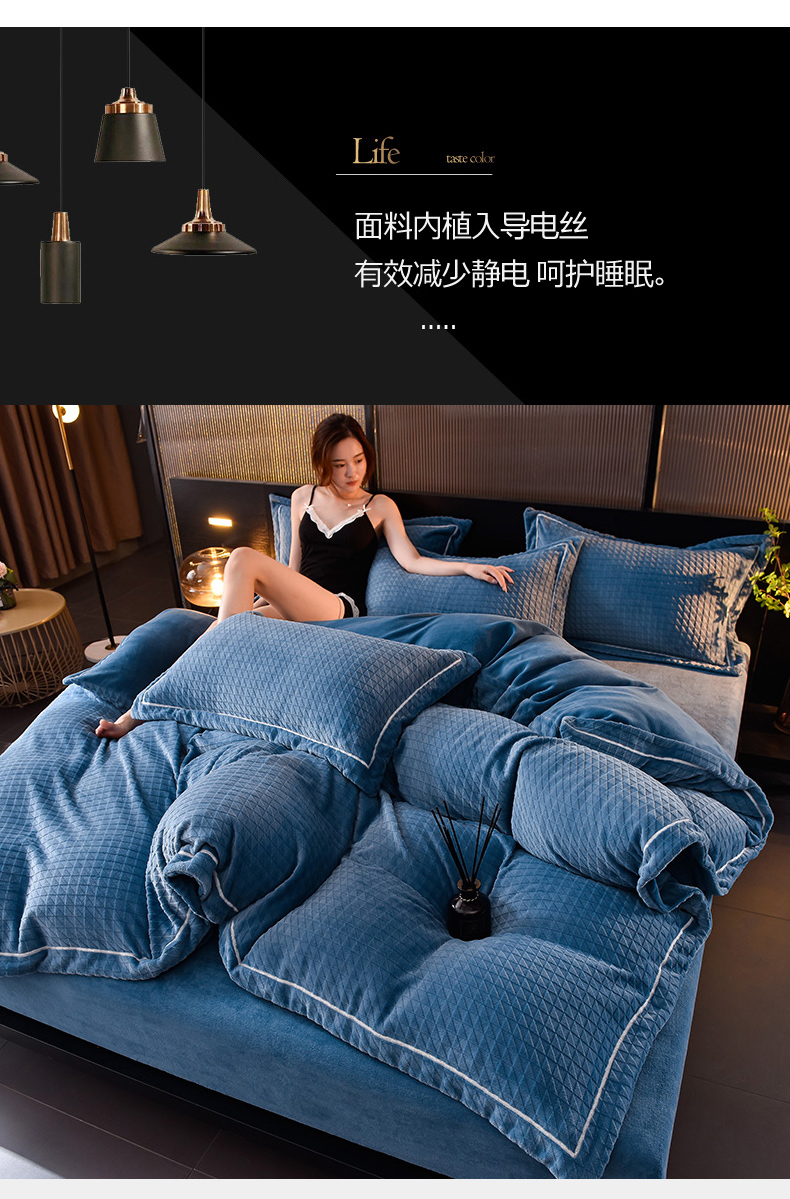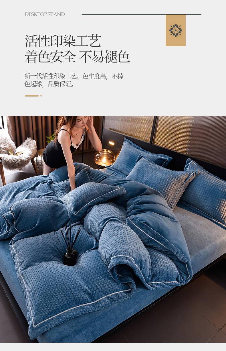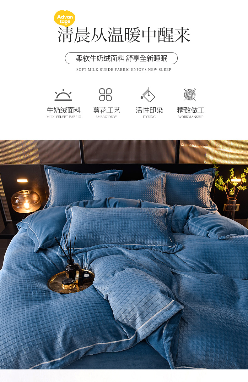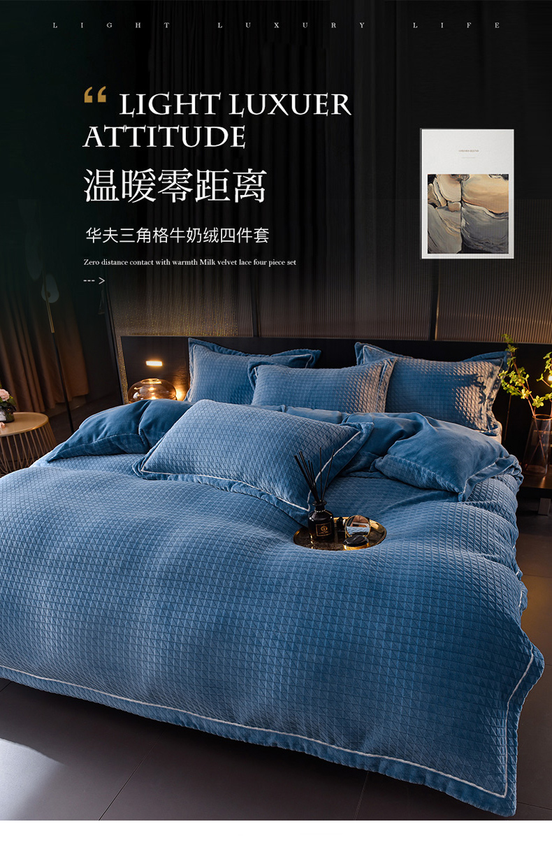 当前位置: 91家纺网 > 商品网购 > 床品套件 > 四件套 > 牛奶绒四件套 > 印季家纺 2025新款华夫格三角格牛奶绒四件套 蓝灰