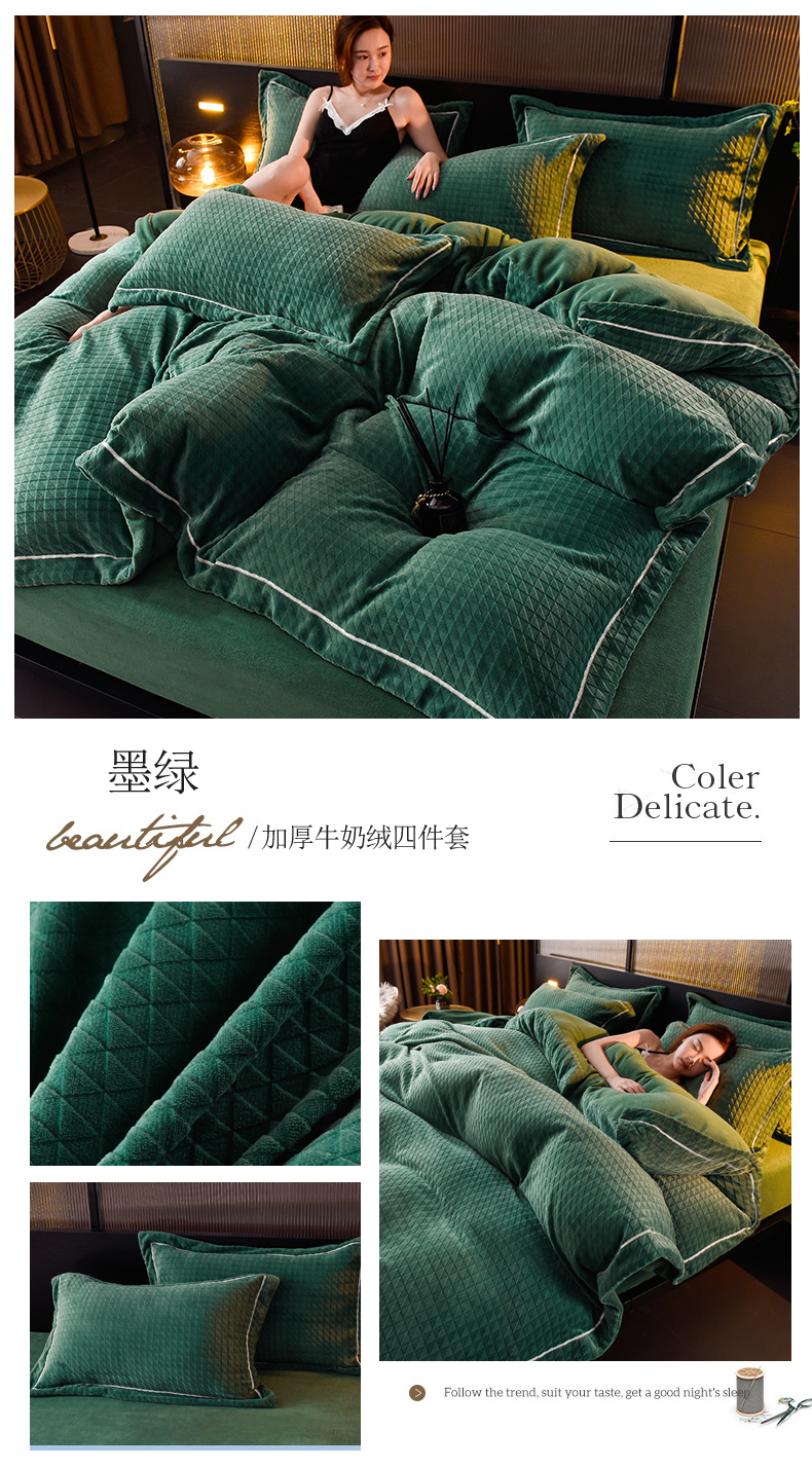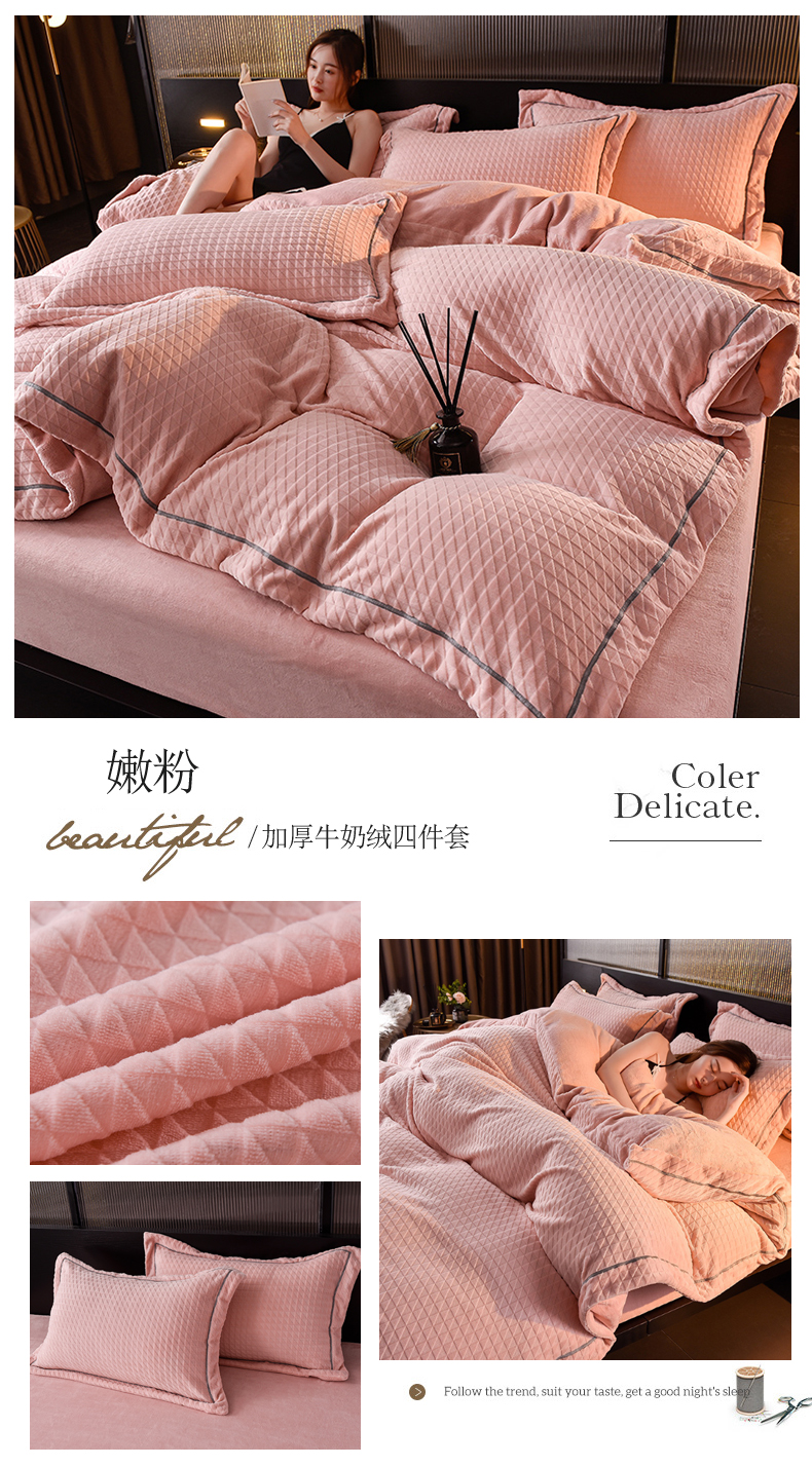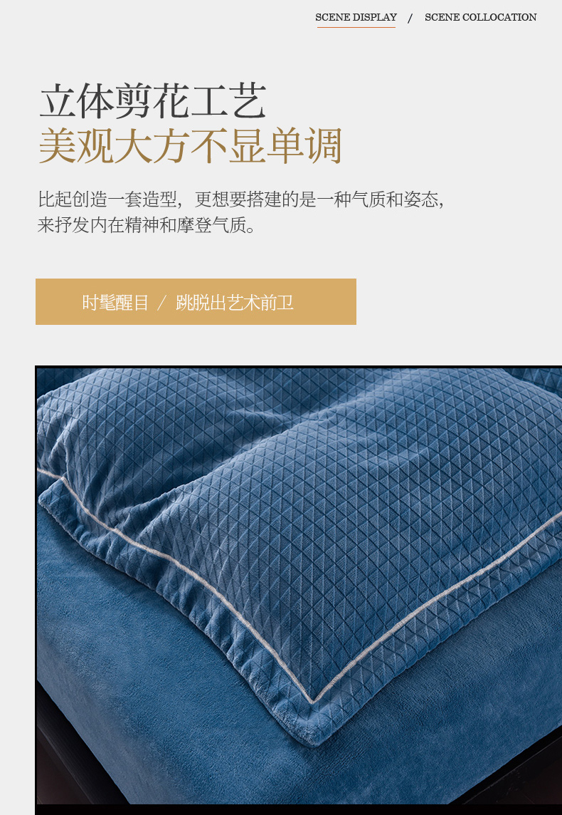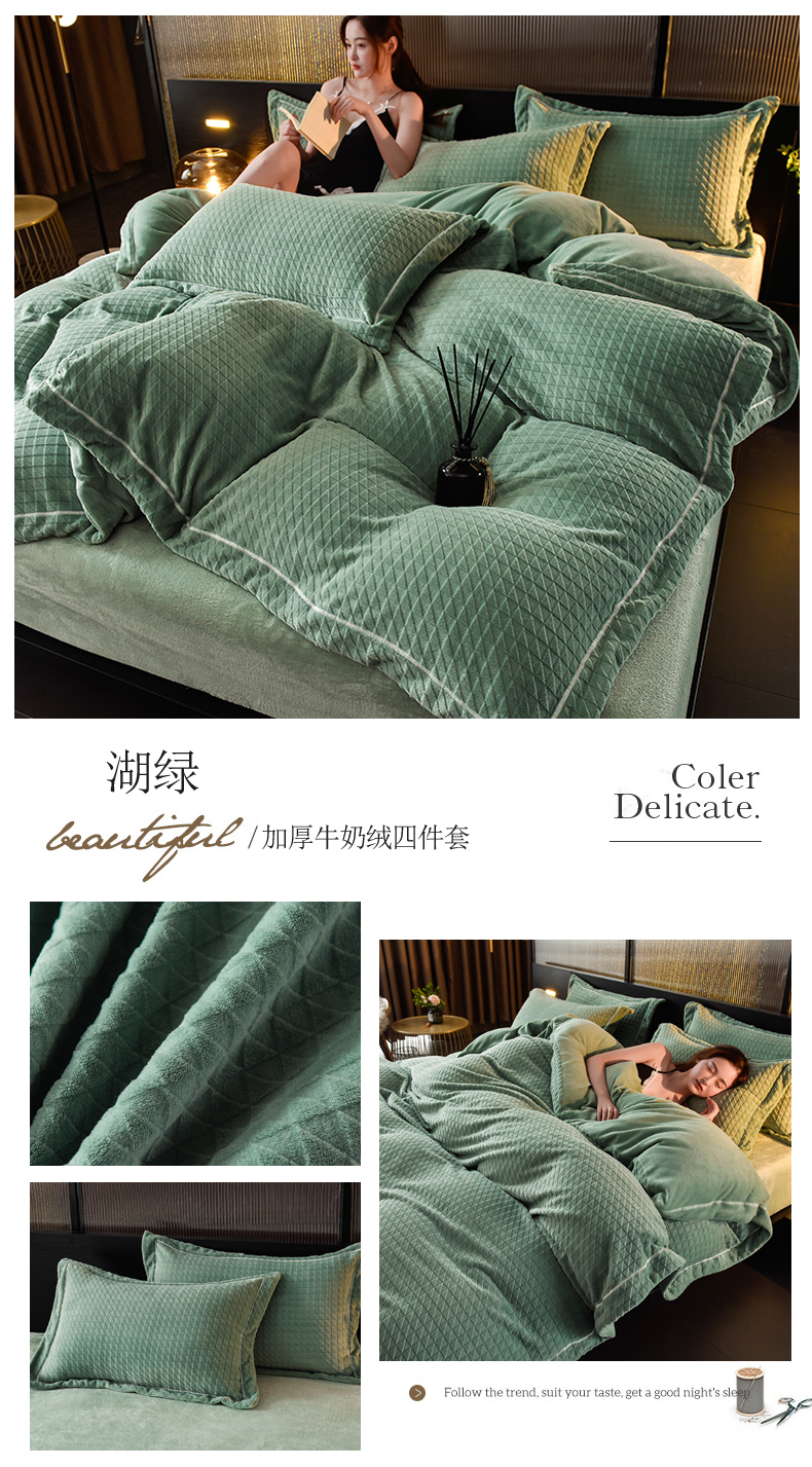 当前位置: 91家纺网 > 商品网购 > 床品套件 > 四件套 > 牛奶绒四件套 > 印季家纺 2025新款华夫格三角格牛奶绒四件套 蓝灰