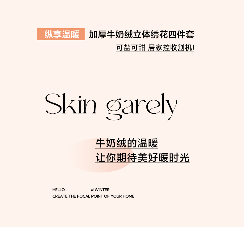 商品名称:唐人居 2025新款加厚牛奶绒立体绣花四件套-花漾 花漾-豆沙