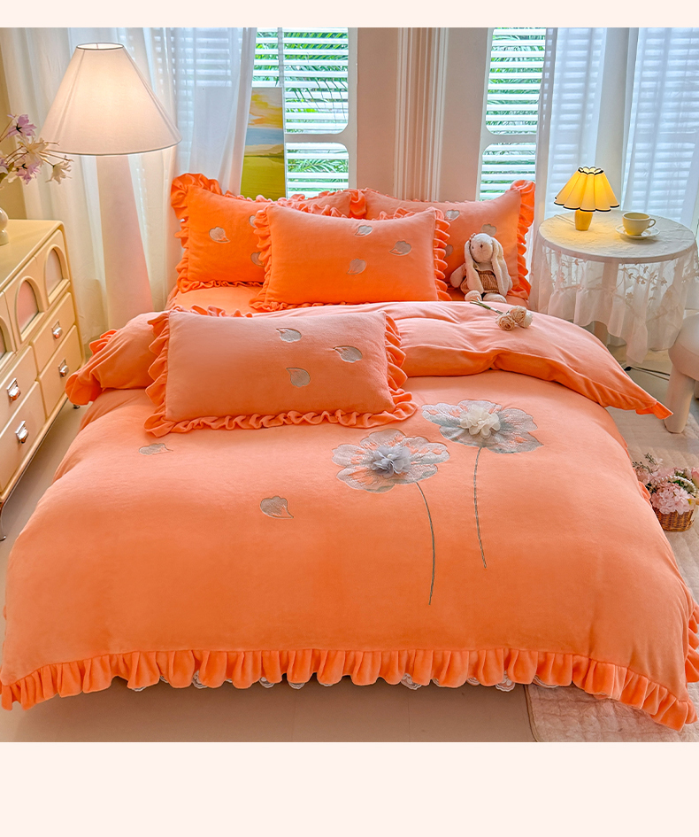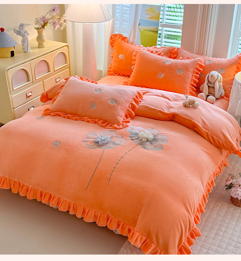 (总)唐人居 2025新款加厚牛奶绒立体绣花四件套-花漾,花漾-暖橘,花漾-草绿,花漾-豆沙,花漾-粉色,花漾-浅蓝,花漾-浅紫