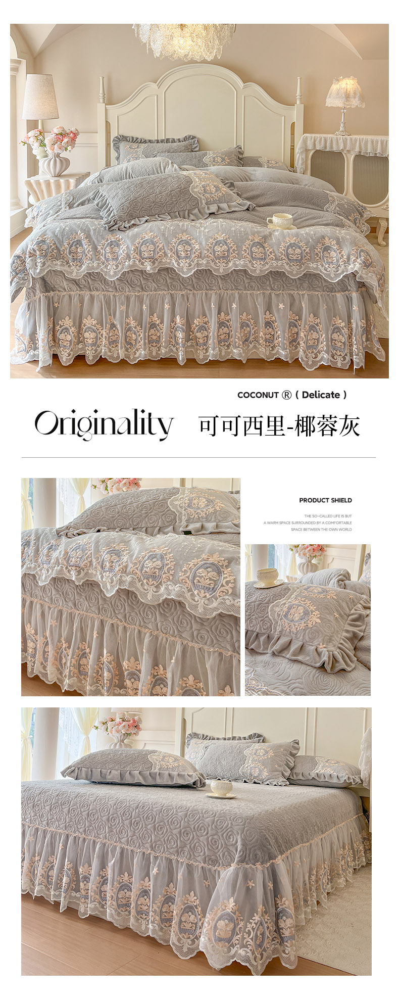 (总)恋尚 2025新款柔软牛奶绒保暖蕾丝床裙四件套-玫瑰故事(控价305),玫瑰故事-蜜桃粉,玫瑰故事-奶茶色,玫瑰故事-椰蓉灰,玫瑰故事-香芋紫,玫瑰故事-清新粉,玫瑰故事-香草绿