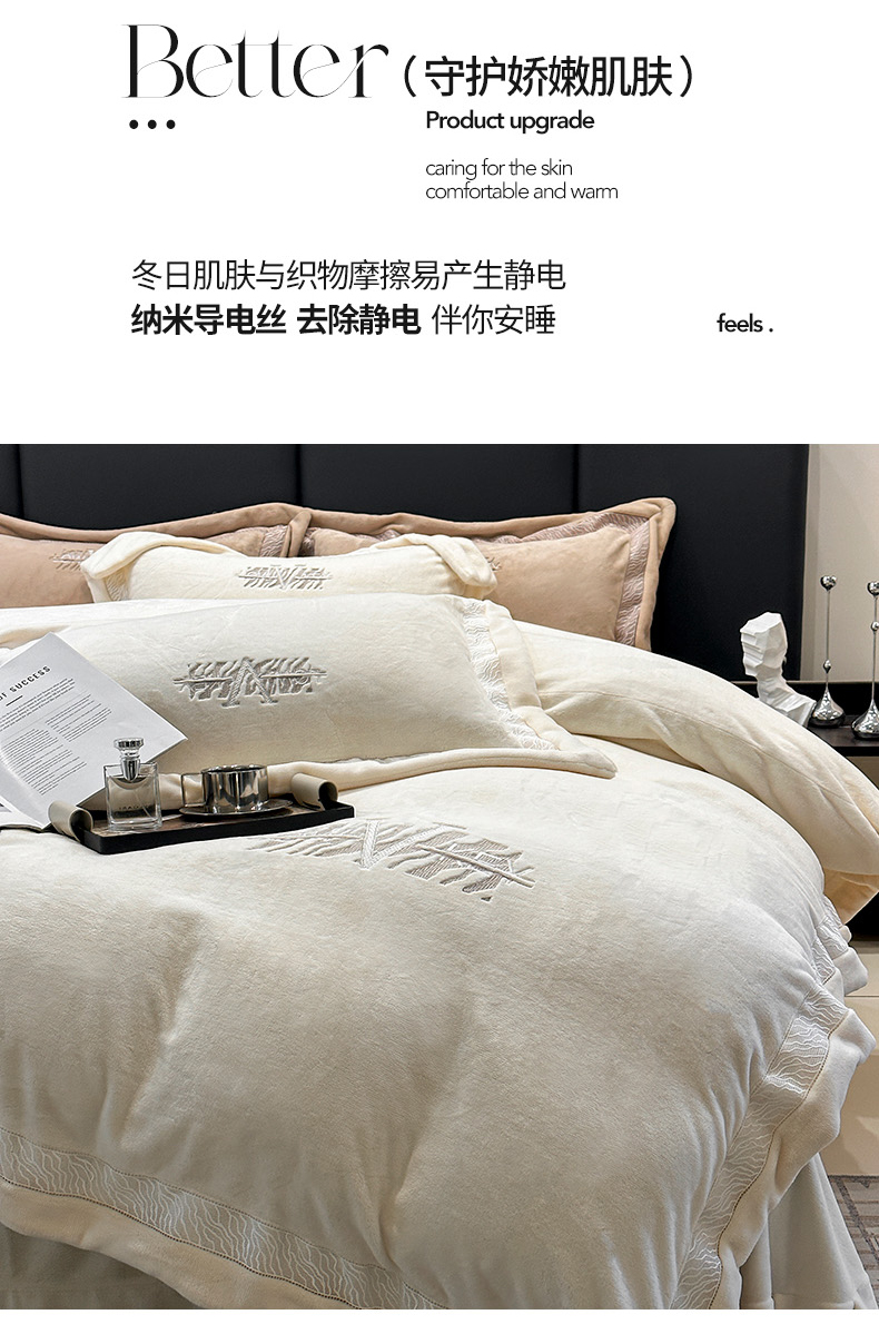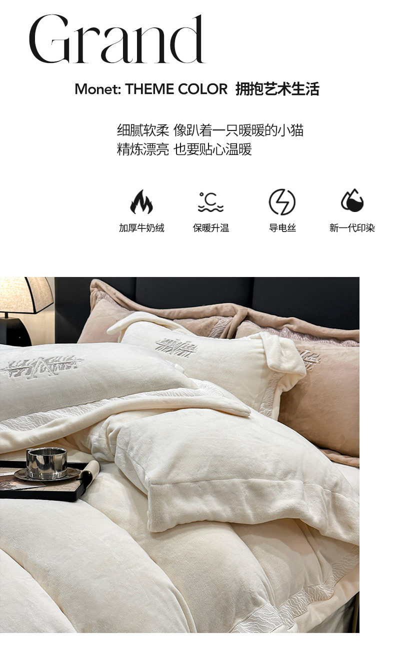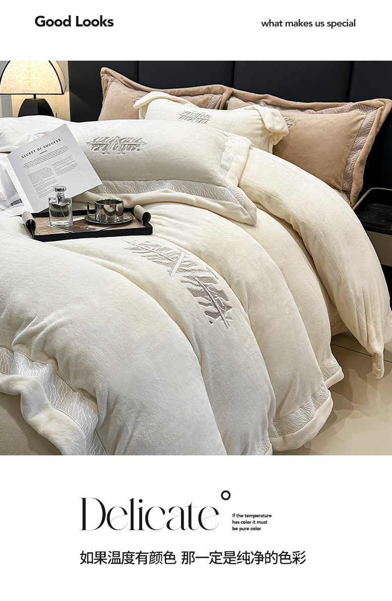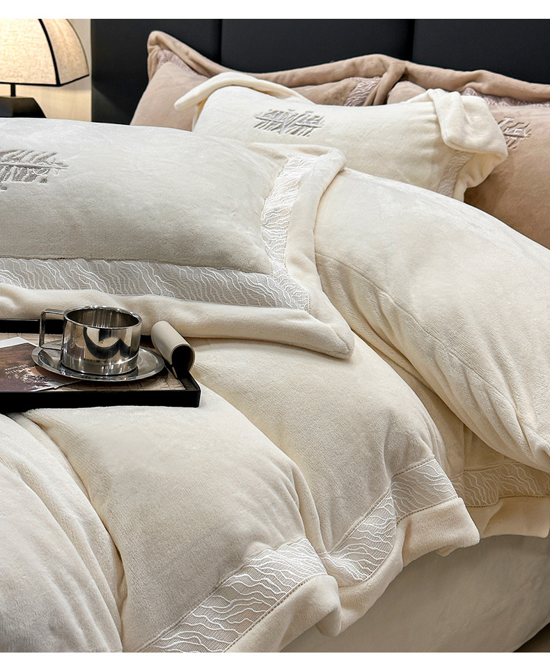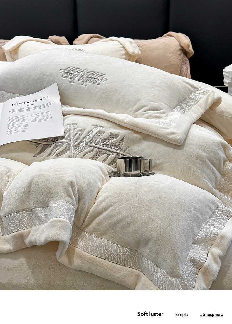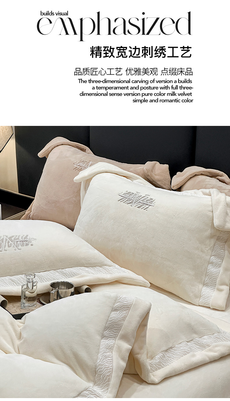 商品名称:眠博士 2025新款A类230g全消光牛奶绒绣花四件套-威登 威登-奶白